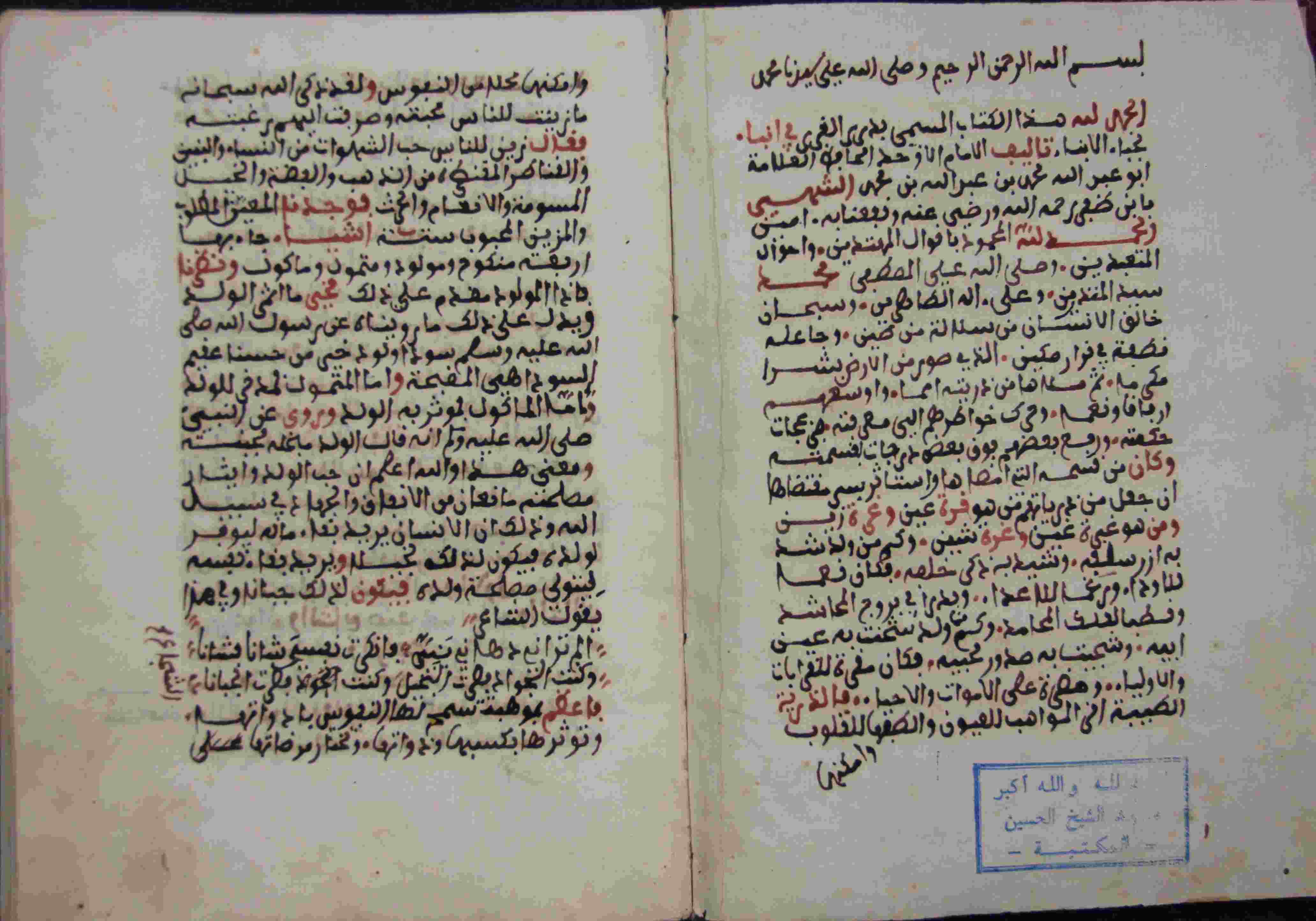 | Description: | أوله : " الحمد لله المحمود بأقوال المهتدين وأحوال المتعبدين وصلى الله على المصطفى محمد سيد المنذرين وعلى آله الطاهرين..."/آخره : " وبعد فقد أتيت إلى ما عمدت له في كتابي هذا راغبا إلى الله سبحانه في صلاح العمر ونجاح العمل فله المنة والحول وله المنة والطول وهو حسبي ونعم الوكيل "، نوع الخط مغربي، التجليد عادي، حالة المخطوط جيدة، عليه تعليقات في الهامش، بداية المخطوط في الورقة الثالثة، نهاية المخطوط في الورقة 77، المخطوط مرقمن، رقم المخطوط 697 م، مصدر المخطوط : زاوية الشيخ الحسين سيدي خليفة (ميلة). |