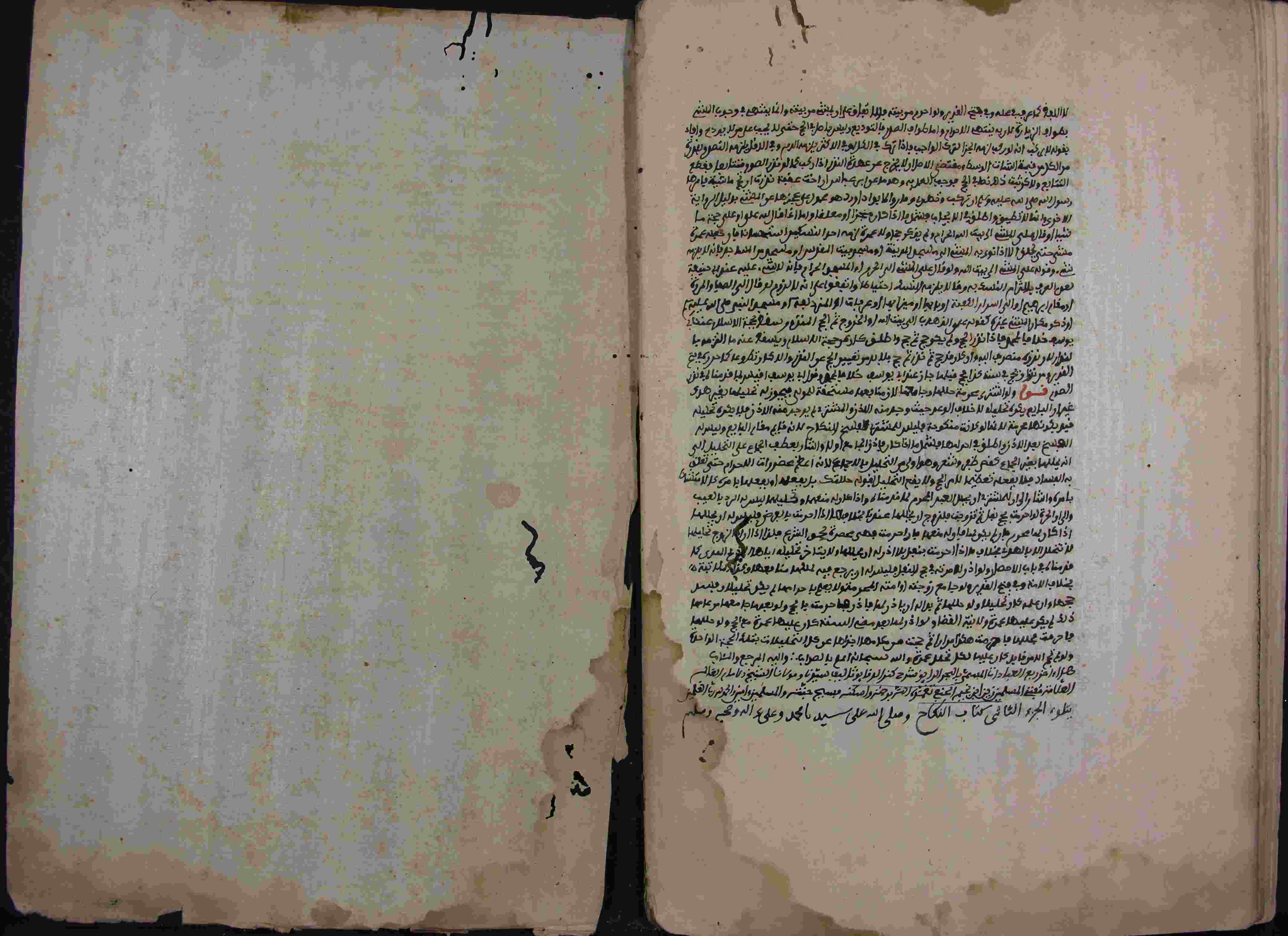 | Description: | أوله : " الحمد لله الذي دبر للأنام وقدر الاحكام بتقديره الخفي وهدا عباده إلى الرشاد، وأنطقهم بألسنة حداد وجعل مصالح معايشهم بالعقول..."/آخره : " والله سبحانه أعلم بالصواب وإليه المرجع والمآب، هذا آخر ربع العبادات المسمى بالبحر الرائق شرح كنز الرقائق...يتلوه الجزء الثاني كتاب النكاح وصلى الله على سيدنا محمد وعلى آله وصحبه وسلم "، نوع الخط مغربي، التجليد مزخرف، حالة المخطوط حسنة، اللوحة الأولى منسوخة مرتين، حبس السيد أحمد هذا الجزء على من فيه أهليه من نسله سنة 1259 هـ.، في اللوحة الأولى فهرس المواضيع (أدلة كتاب الطهارة - وآخره كتاب الهدي)، بداية المخطوط في الورقة الثانية، نهاية المخطوط في الورقة 239، المخطوط مرقمن، رقم المخطوط 280 م، مصدر المخطوط : مكتبة الشيخ نعيم النعيمي ؛ المراجع والمصادر : الأعلام خير الدين الزركلي (6/ 161). |