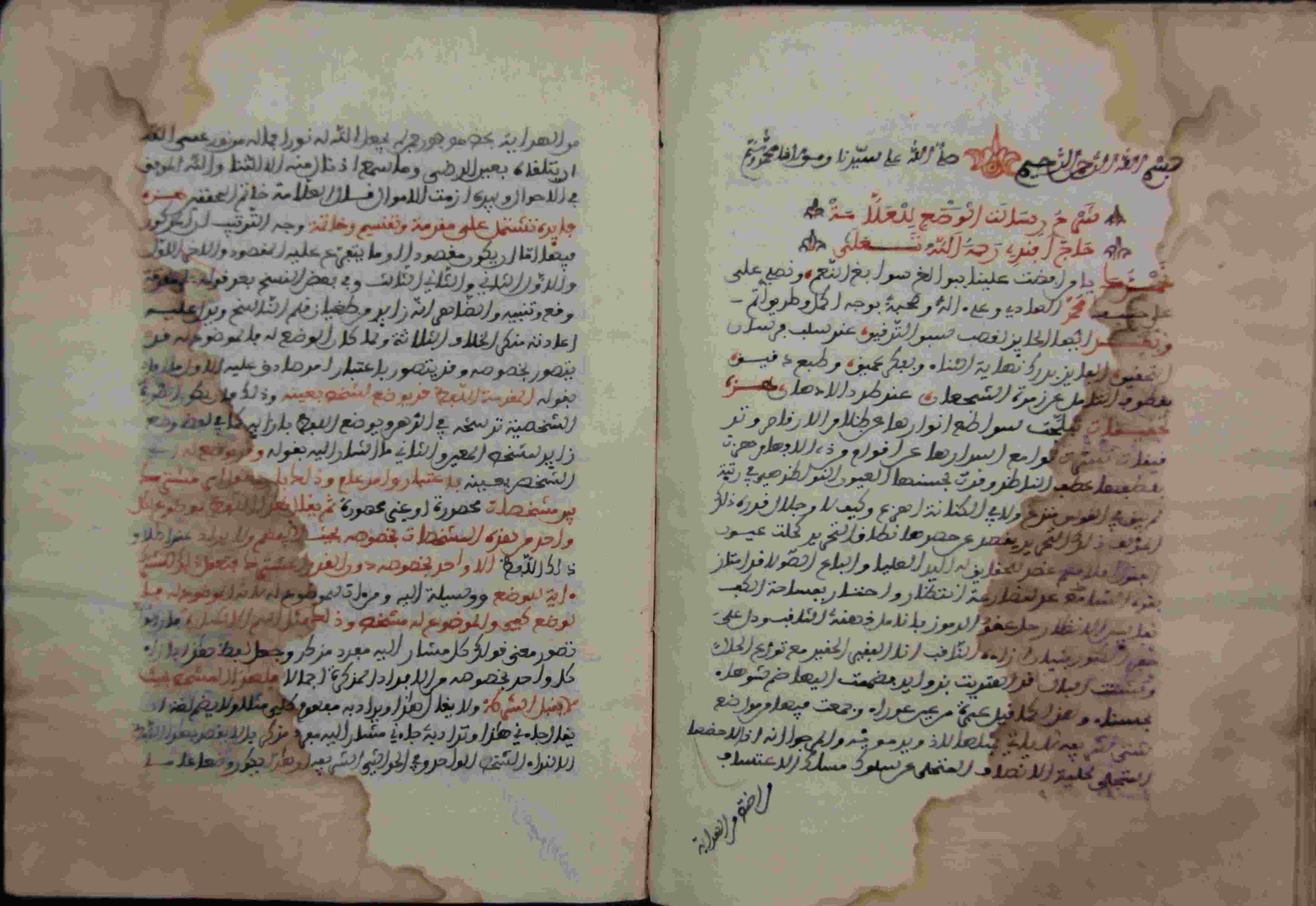 Description: أوله : " نحمد يامر رفضت علينا ببوالغ سوابغ النعم ونصبي على حبيبه محمد الهادي وعلى آله وصحبه بوجه.../آخره : " هذا آخر ما قصدنا شرحه وإيضاحه ولله الحمد والمنة وعلى نبيه محمد المصطفى "، نوع الخط مغربي، التجليد عادي، حالة المخطوط حسنة، عليه آثار الرطوبة، به تعليقات بالهامش، اتبع نظام التعقيبة في الترتيب، عدد الأوراق الخاصة به 11 ورقة، بداية المخطوط في الورقة 316، نهاية المخطوط في الورقة 326، المخطوط مرقمن، رقم المخطوط 13.13 /17 م، مصدر المخطوط : مكتبة الشيخ نعيم النعيمي.