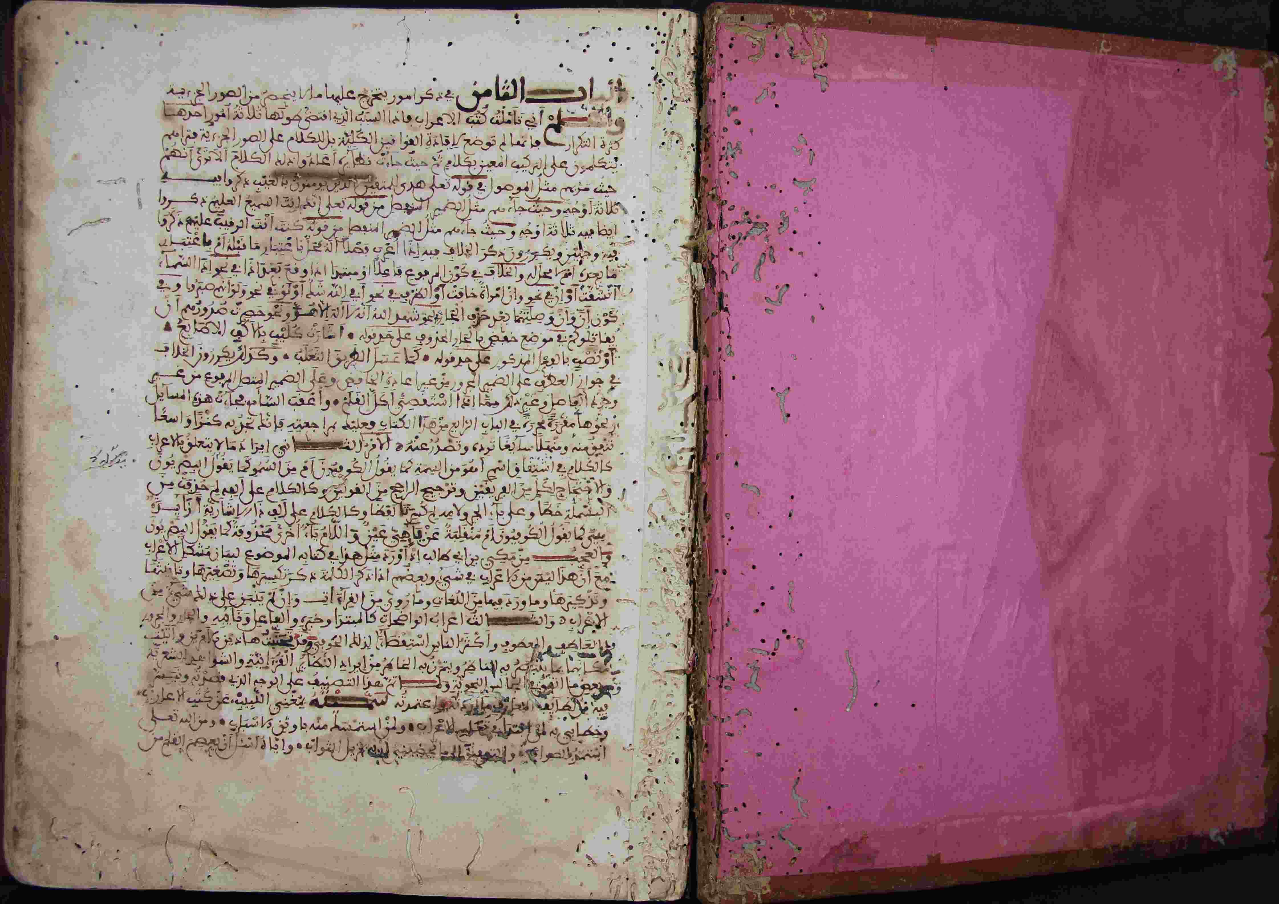 | Description: | أوله : " الباب الثامن في ذكر أمور يتخرج عليها مالا ينحصر من الصور الجزئية..."/آخره : " وأن يهدي أشرف صلواته وأزكى تحياته إلى أشرف العالمين وإمام العالمين العاملين ( ) الرحمة الكاشف يوم أكثر شفاعته العمة وعلى آله الهادين وأصحابه الذين شاء وآلنا قواعد الدين وأن يسلم تسليما كثيرا إلى يوم الدين "، تاريخ التأليف في ذي القعدة، هناك سقط في جزء من المقدمة، نسخة مقابلة وعليها حاشية الدماميني، عدد الأوراق الخاصة به 149 ورقة، نوع الخط مغربي، التجليد جيد، حالة المخطوط جيدة، بداية المخطوط في الورقة الأولى، نهاية المخطوط في الورقة 148، المخطوط مرقمن، رقم المخطوط 647 م، مصدر المخطوط : زاوية الشيخ الحسين سيدي خليفة (ميلة) ؛ المراجع والمصادر : معجم المؤلفين، الأعلام خير الدين الزركلي (13/ 138). |