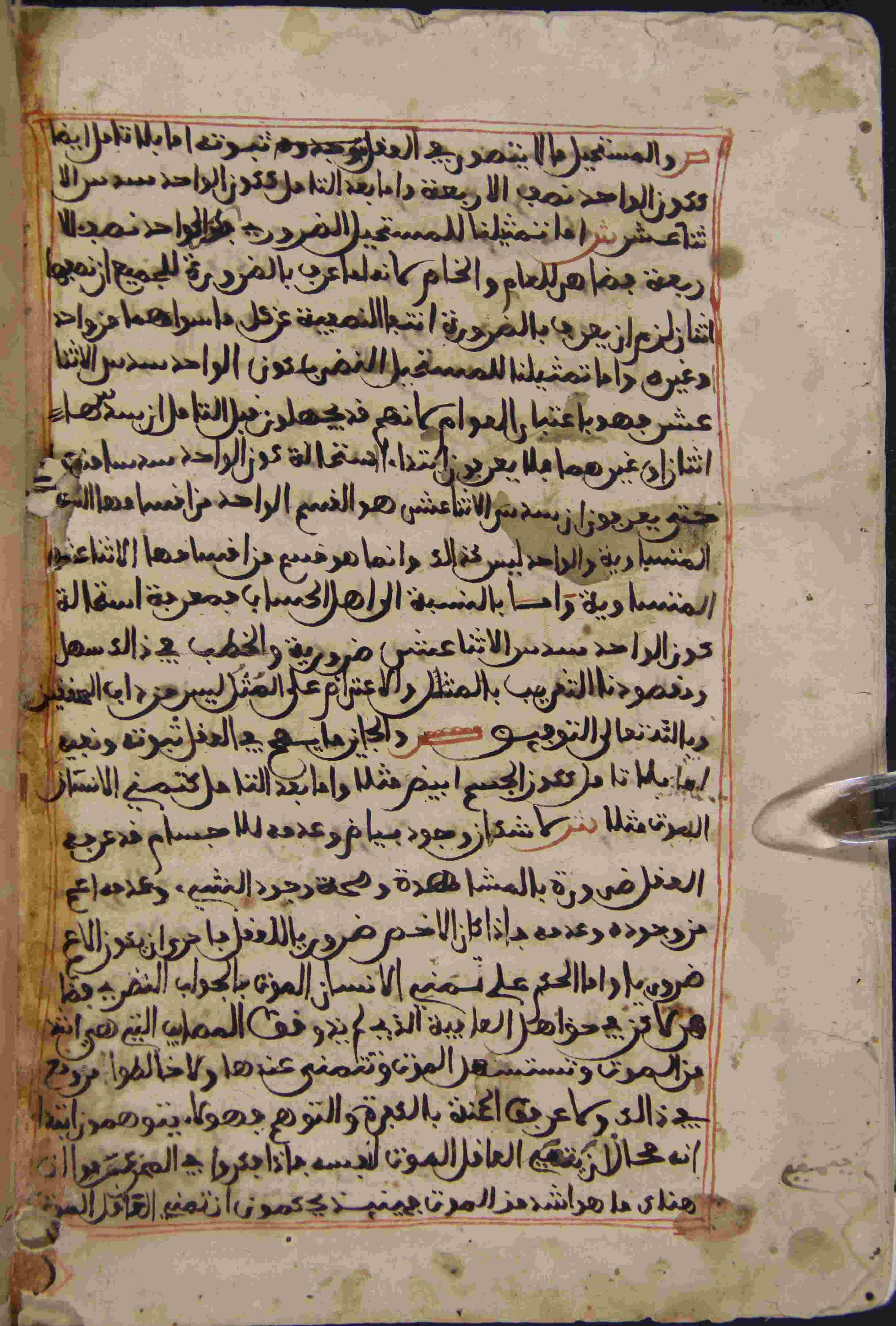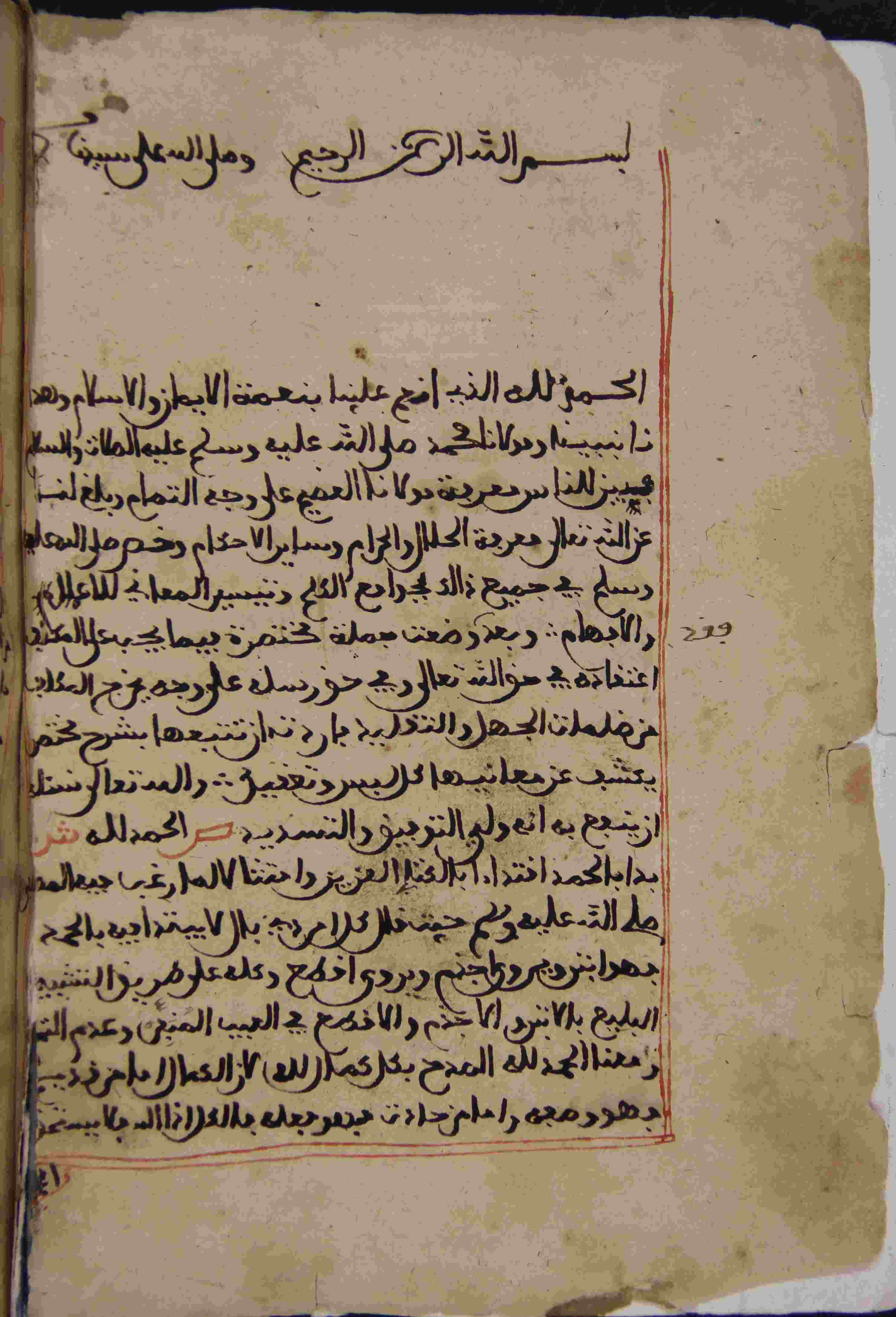 | Description: | أوله : " بسم الله الرحمان الرحيم وصلى الله على سيدنا محمد الحمد لله الذي أنعم علينا بنعمة الإيمان والإسلام..."/آخره : " ماهو أشد من الموت فحينئد يحكمون أن تمني العاقل الموت...مبتور الآخر "، نوع الخط مغربي، التجليد عادي، حالة المخطوط متوسطة، بداية المخطوط في الورقة الأولى، نهاية المخطوط في الورقة 11، المخطوط مرقمن، رقم المخطوط 616 م، مصدر المخطوط : مكتبة الشيخ محمد الطاهر التليلي القماري. |