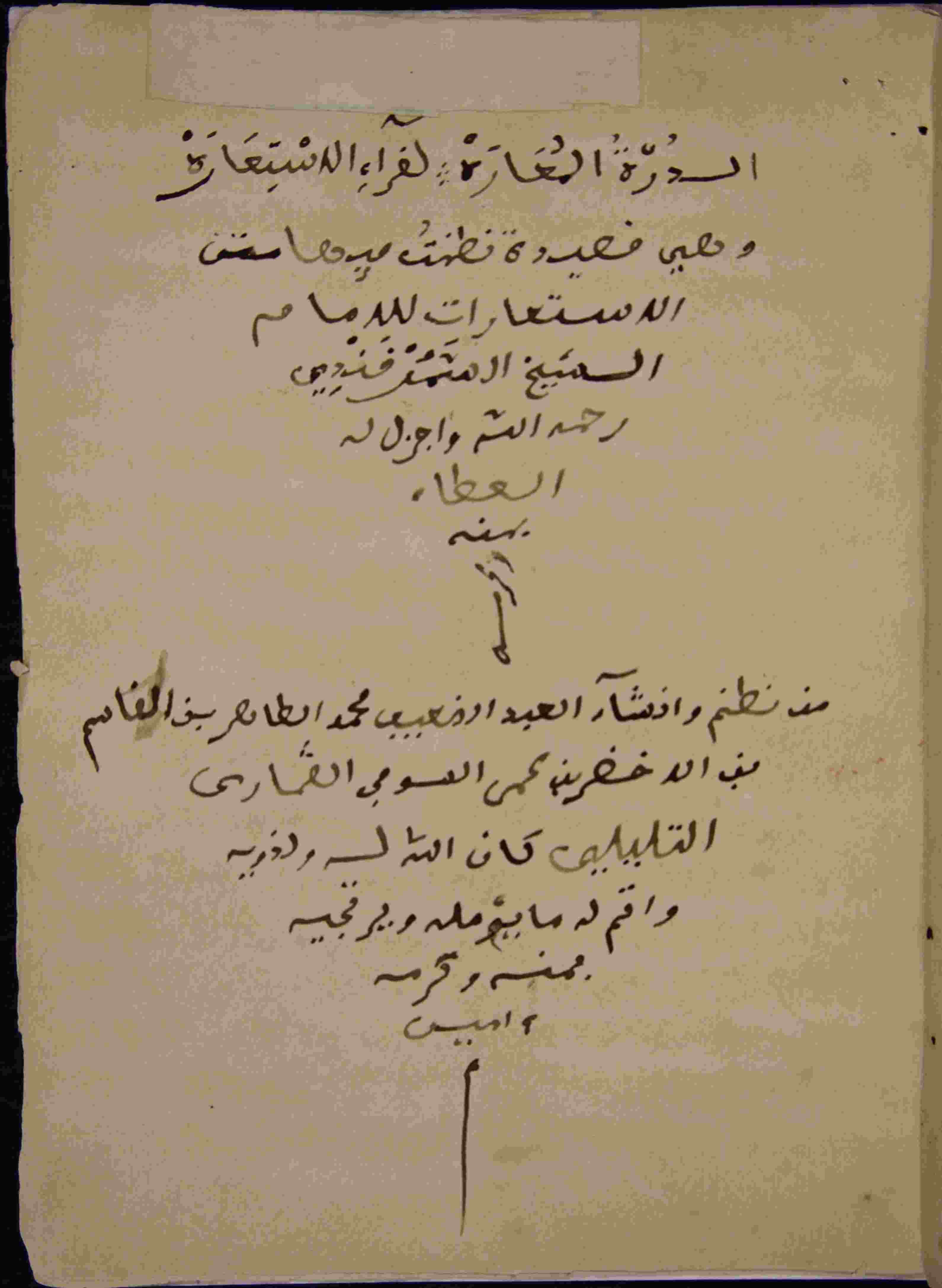http://dspace.univ-emir-constantine.edu.dz/jspui/handle/123456789/4398| Title: | الدرة المعارة لقراء الإستعارة |