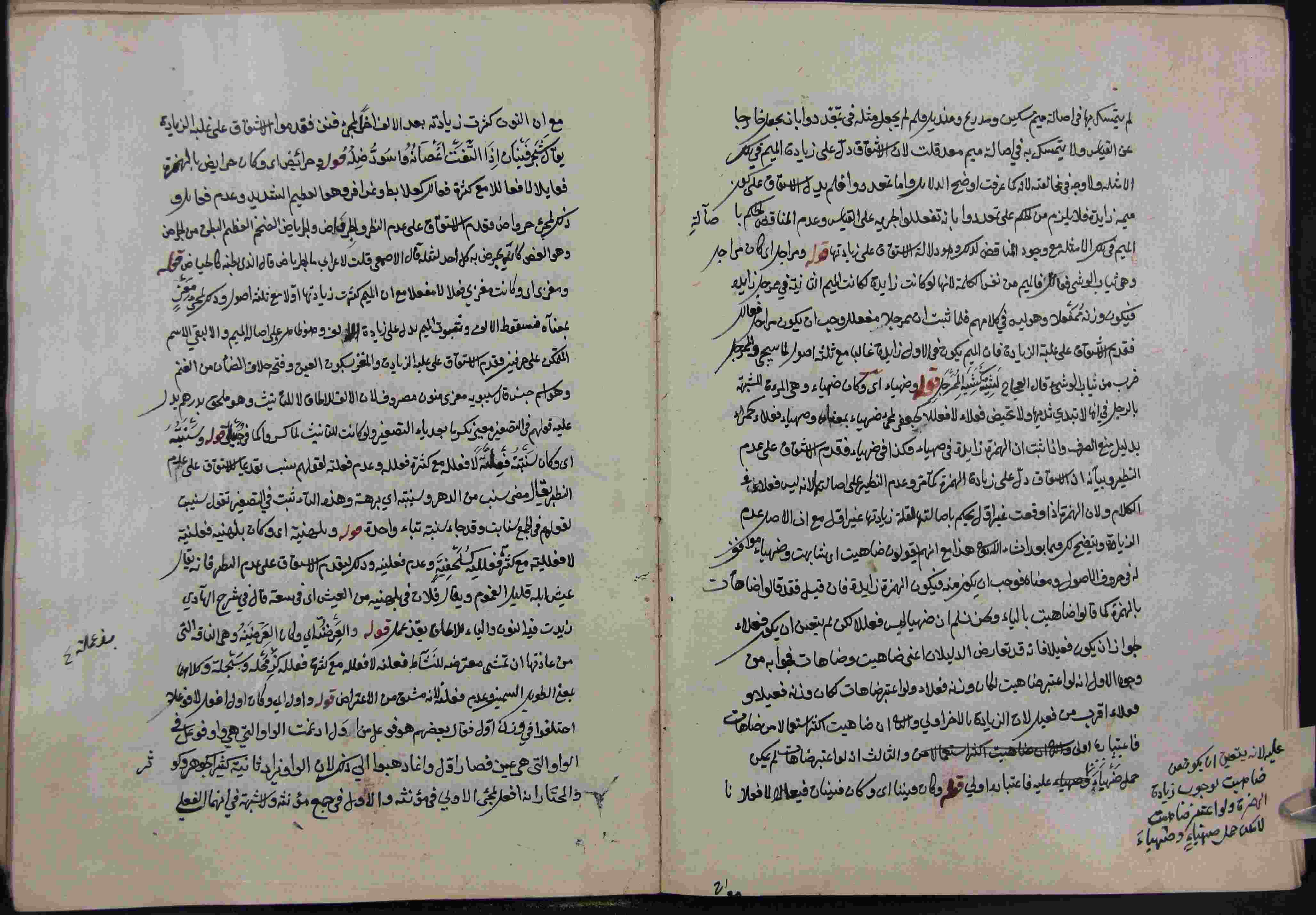 Description: أوله : " بسم الله الرحمن الرحيم نحمدك يا من بيده الخير....لما كان كتاب التصريف الذي صنفه المحقق..."/آخره : " وإلى لقولهم اليل وحتى حملا عليها لأنها بمعنى عم في الغاية والإنتهاء "، نوع الخط مشرقي، التجليد مزخرف، حالة المخطوط جيدة، تتبع الناسخ في أسلوب نسخه ترتيب التعقيبة، ثلاث كتب في مجلد واحد، آخره جداول لصيغ الإشتقاق و أوله كلام بالتركية، بداية المخطوط في الورقة 91، نهاية المخطوط في الورقة 218، المخطوط مرقمن، رقم المخطوط 2.3 / 539 م، مصدر المخطوط : مكتبة الشيخ نعيم النعيمي .
