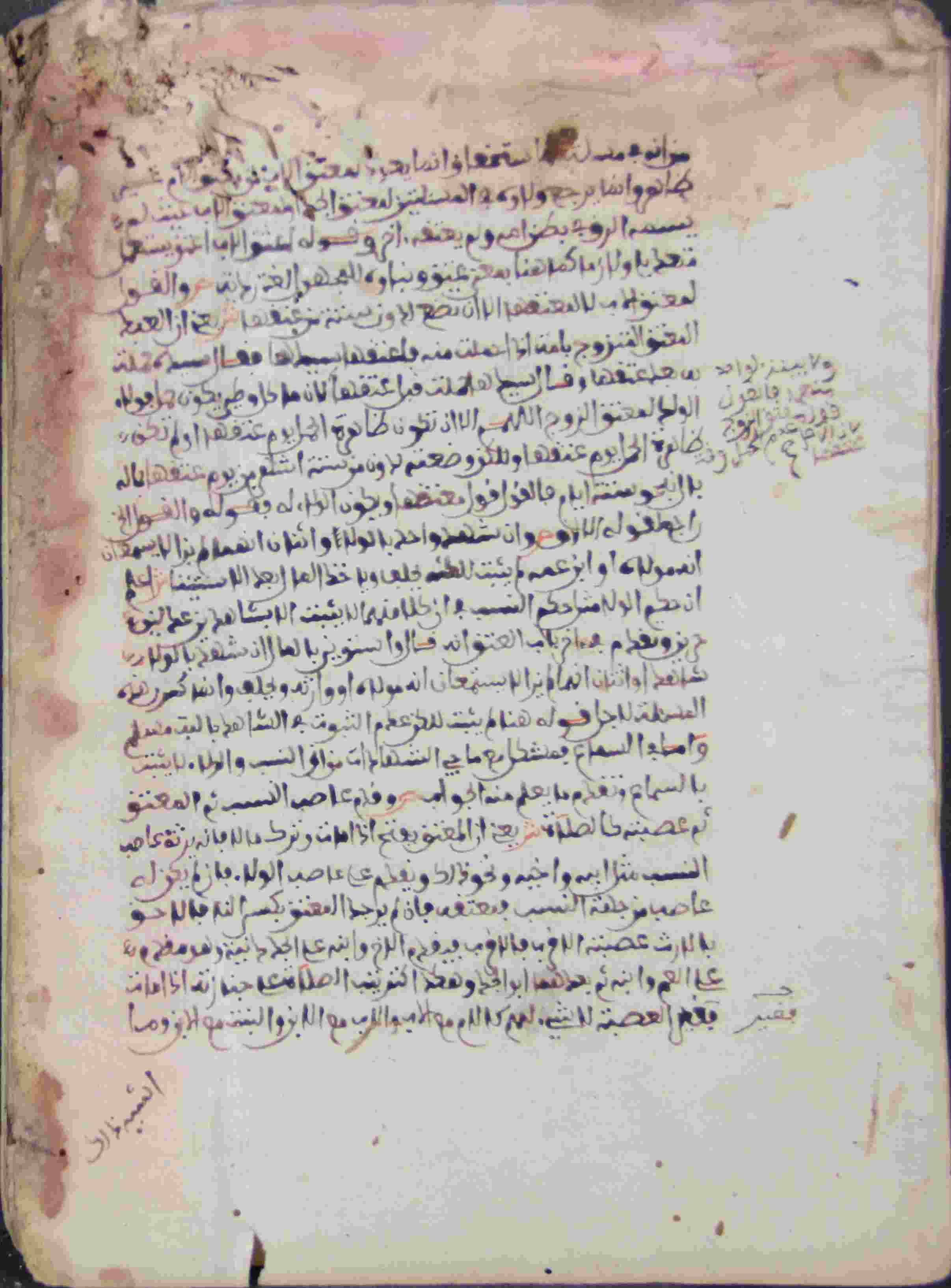 | Description: | أوله : " باع له ثوبا بدراهم معلومة على أن..."/آخره : " إذا مات فقير العصبة لا شيء لهم كالأم مع الأب والأب مع الإبن والبنت مع الإبن "، نوع الخط مغربي، التجليد مزخرف، حالة المخطوط حسنة، مبتور الأول والآخر، عليه آثار الرطوبة، بداية المخطوط في الورقة الأولى، نهاية المخطوط في الورقة 248، المخطوط مرقمن، رقم المخطوط 354 م، مصدر المخطوط : مكتبة الشيخ نعيم النعيمي ؛ المراجع والمصادر : الأعلام خير الدين الزركلي (14/ 108). |