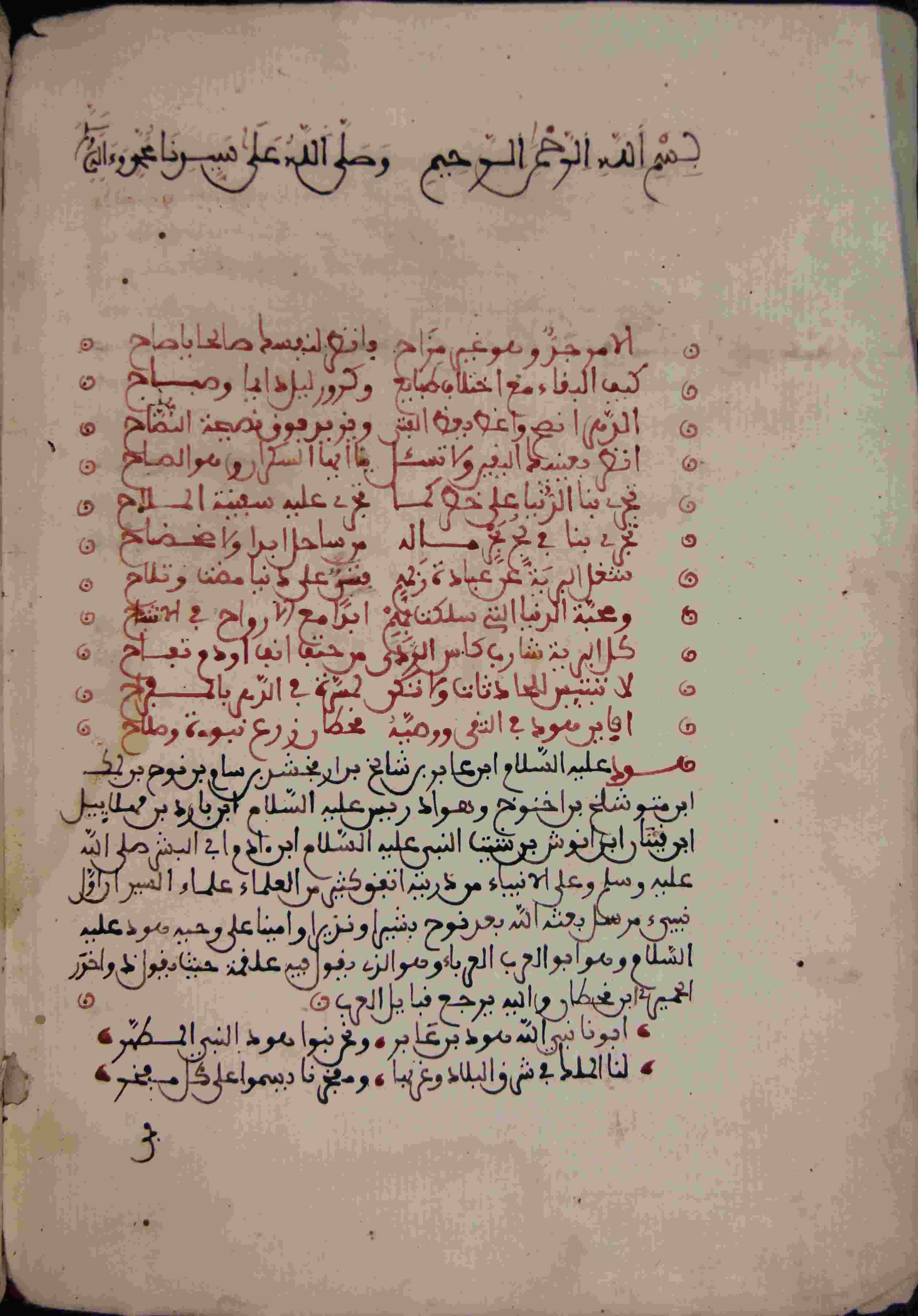 Description: أوله : " الأمر وهو غير مزاح فأنظر لنفسك صالحا يا صاح..."/آخره : " والدهر يمزج [ ] بنعيمه ويرا نبيه الغم بالأفراح "، نوع الخط مغربي، التجليد عادي، حالة المخطوط جيدة، هذه القصيدة شرحها الناظم نفسه وشرحها الشريبسي، بداية المخطوط في الورقة الثانية، نهاية المخطوط في الورقة 53، المخطوط مرقمن، رقم المخطوط 667 م، مصدر المخطوط : مكتبة الشيخ نعيم النعيمي ؛ المراجع والمصادر : الأعلام للزركلي (17/ 39).