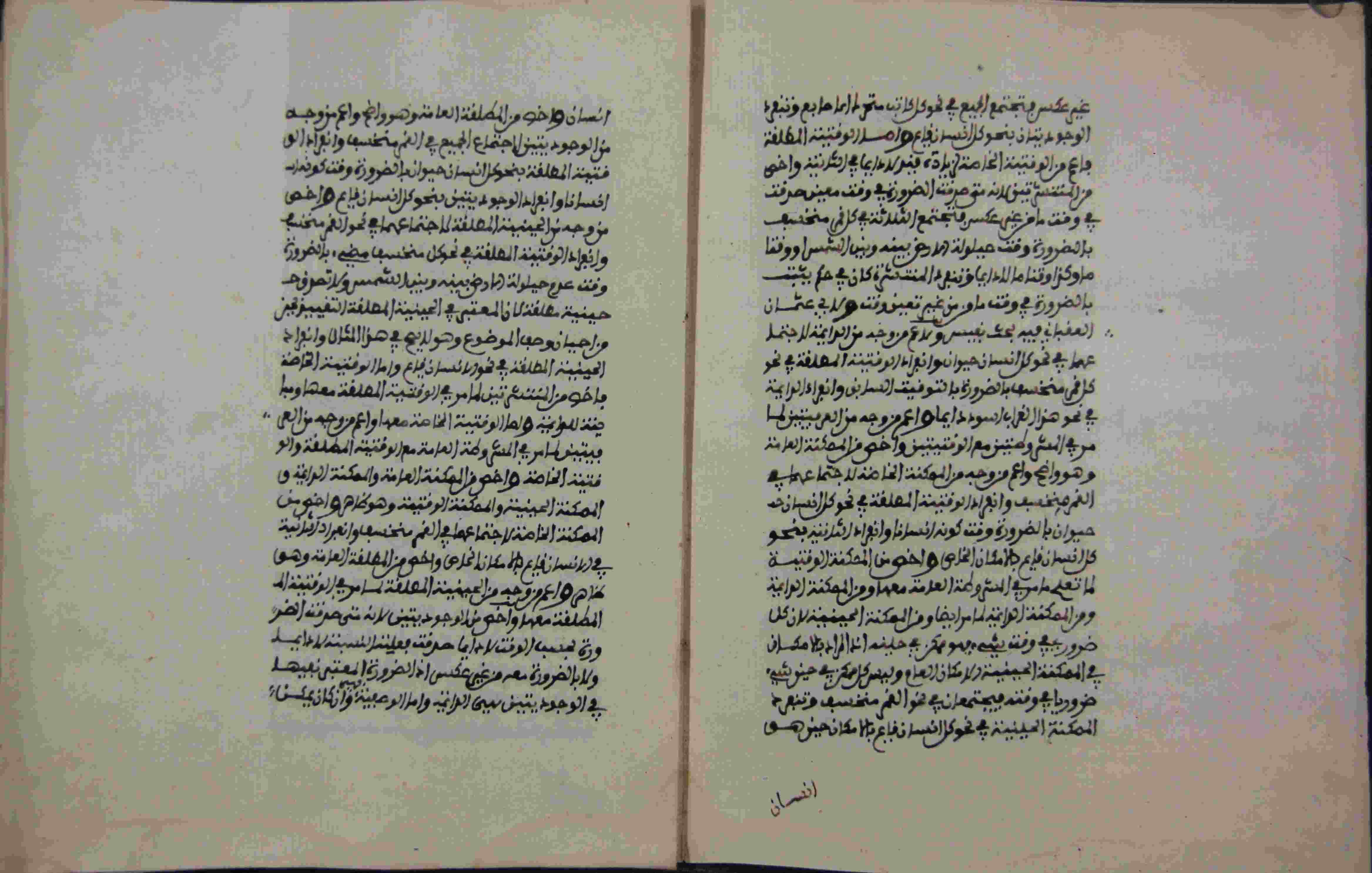 Description: أوله : " فهذه رسالة في بيان النسب بين الموجهات وبأمثاله واضحات وعبارات جليات..."/آخره : " انتهى قلت وعلى هذا يصح أن يقال أن كلا من الممكنة الدائمة والممكنة الحينية والممكنة الوقتية أخص من الممكنة العامة..."، نوع الخط مغربي، التجليد مزخرف، حالة المخطوط حسنة، عدد الأوراق الخاصة به 9 أوراق، به تعليقات بالهامش، عليه آثار الرطوبة، مجموع به ستة كتب في مجلد واحد، اعتمد على نظام التعقيبة في الترتيب، بداية المخطوط في الورقة 152، نهاية المخطوط في الورقة 160، المخطوط مرقمن، رقم المخطوط 5.6 /22 م، مصدر المخطوط : مكتبة الشيخ نعيم النعيمي ؛ المراجع والمصادر : الأعلام خير الدين الزركلي (6/ 113).
