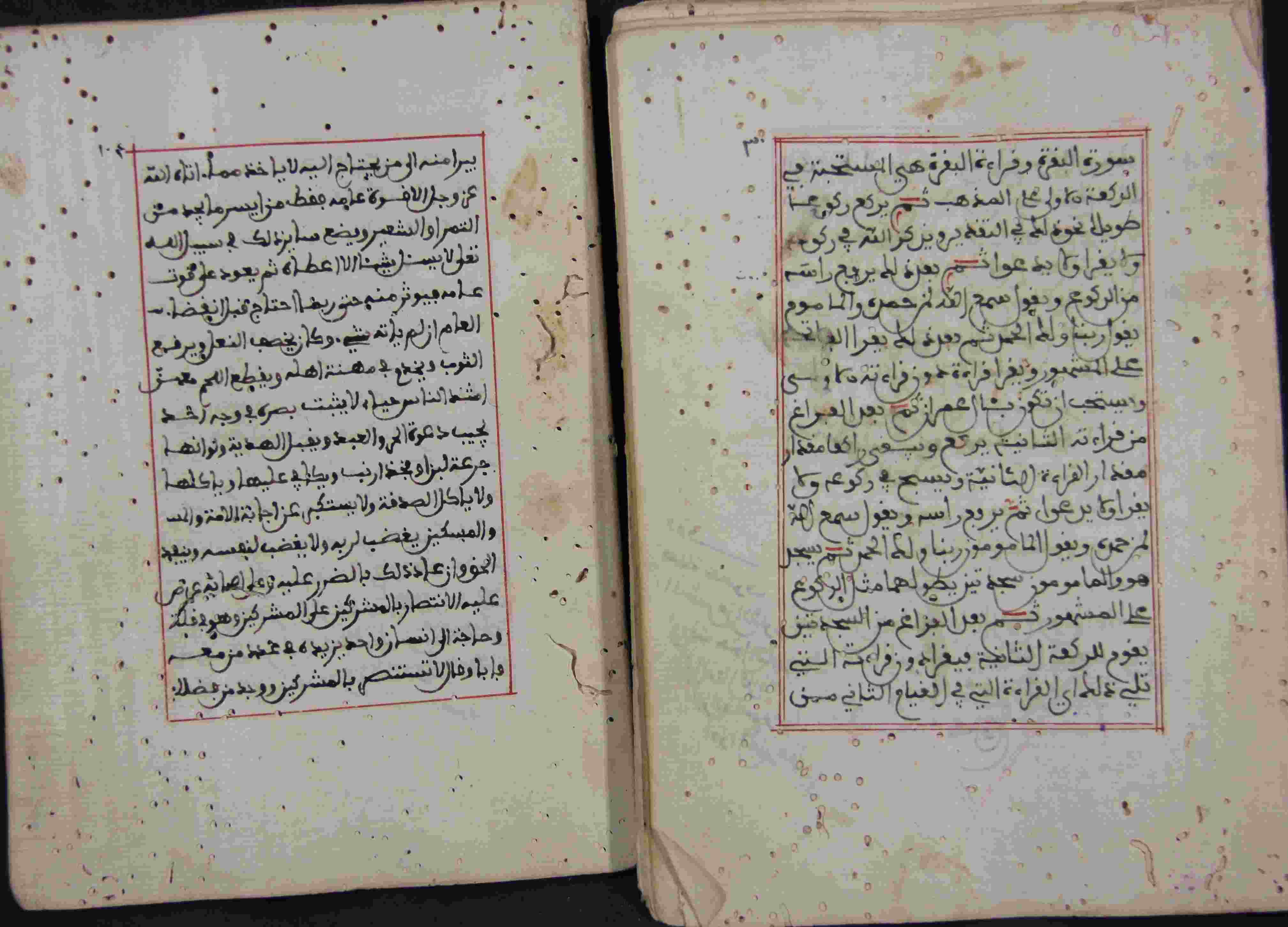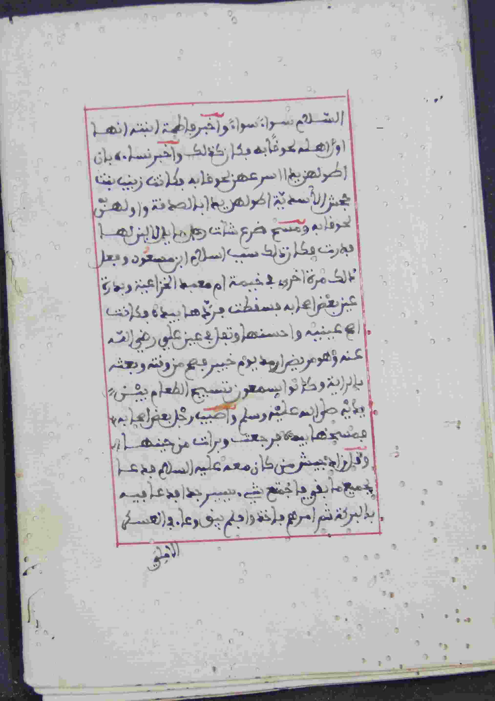 | Description: | أوله : " سورة البقرة وقراءة البقرة هي المستحبة في الركعة الأولى على المذهب ثم يركع ركوعا طويلا نحو ذلك في التقدير ويذكر الله في ركوعه..."/آخره : " وقل زاد جيش من كان معه عليه السلام فدعا لجميع ما بقو فاجتمع شيء يسير جدا فدعا فيه بالبركة ثم أمرهم فأخذوا فلم يفي بوعده "، نوع الخط مغربي، التجليد عادي، حالة المخطوط جيدة، عدد الأوراق الخاصة بالكتاب السادس عشرون ورقة، بداية المخطوط في الورقة 56، نهاية المخطوط في الورقة 76، المخطوط مرقمن، رقم المخطوط 6.6 /684 م، مصدر المخطوط : زاوية الشيخ الحسين سيدي خليفة (ميلة). |