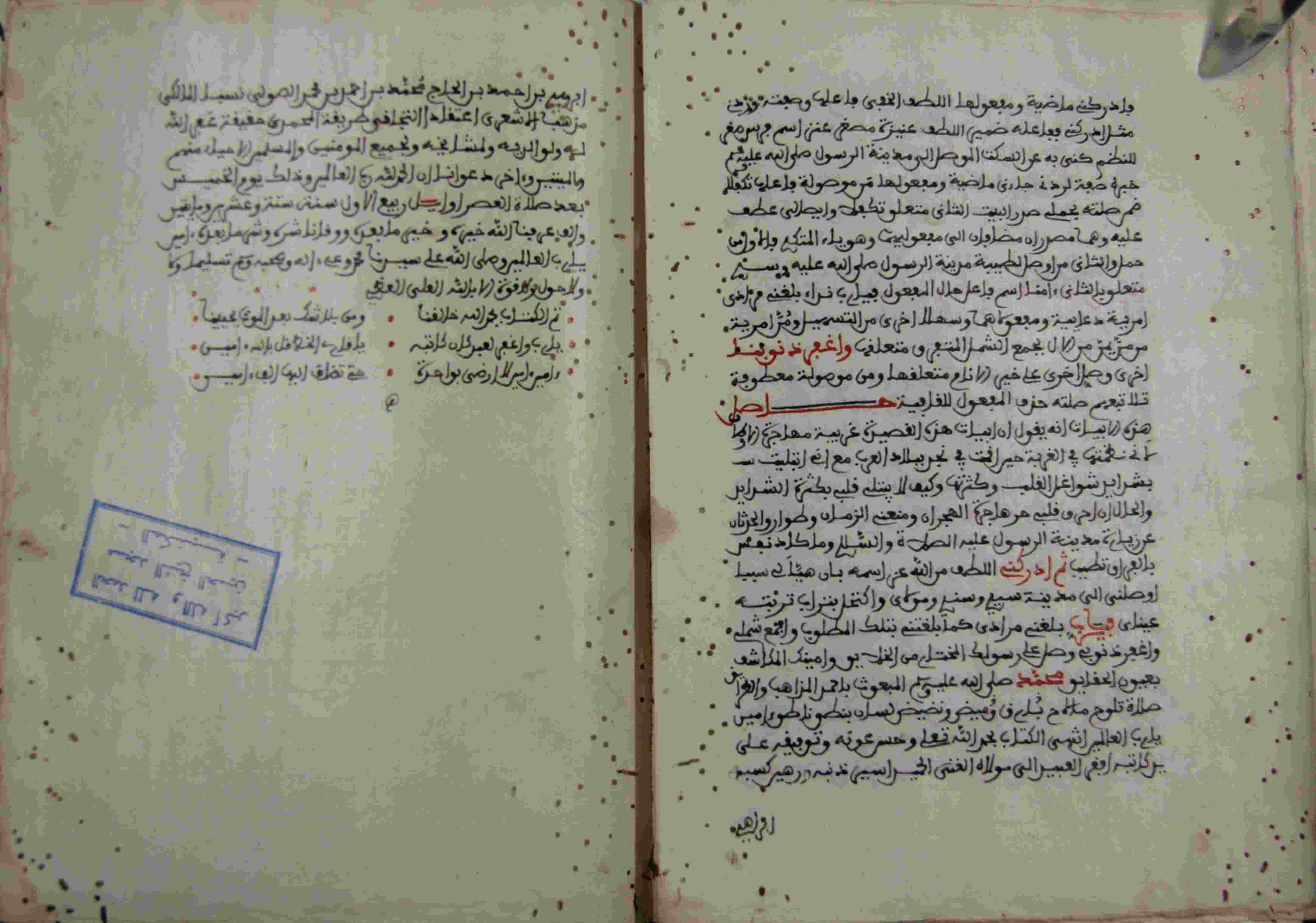 Description: أوله : " قل الحمد لله الذي وحده علا ... ومجده وأسأل عونه وتوسلا. القصيدة من ثاني بحر الطويل والقافية لامية مجردة..."/آخره : " حامل هذه الأبيات إنه يقول إن أبيات هذه القصيدة "، نوع الخط مغربي، التجليد عادي، حالة المخطوط جيدة، عليه تملك محمد الناصري، عليه تعليقات في الحواشي، سنة التأليف أوائل ربيع الأول 1226هـ.، بداية المخطوط في الورقة الثانية، نهاية المخطوط في الورقة 137، المخطوط مرقمن، رقم المخطوط 720 م، مصدر المخطوط : زاوية الشيخ الحسين سيدي خليفة (ميلة).