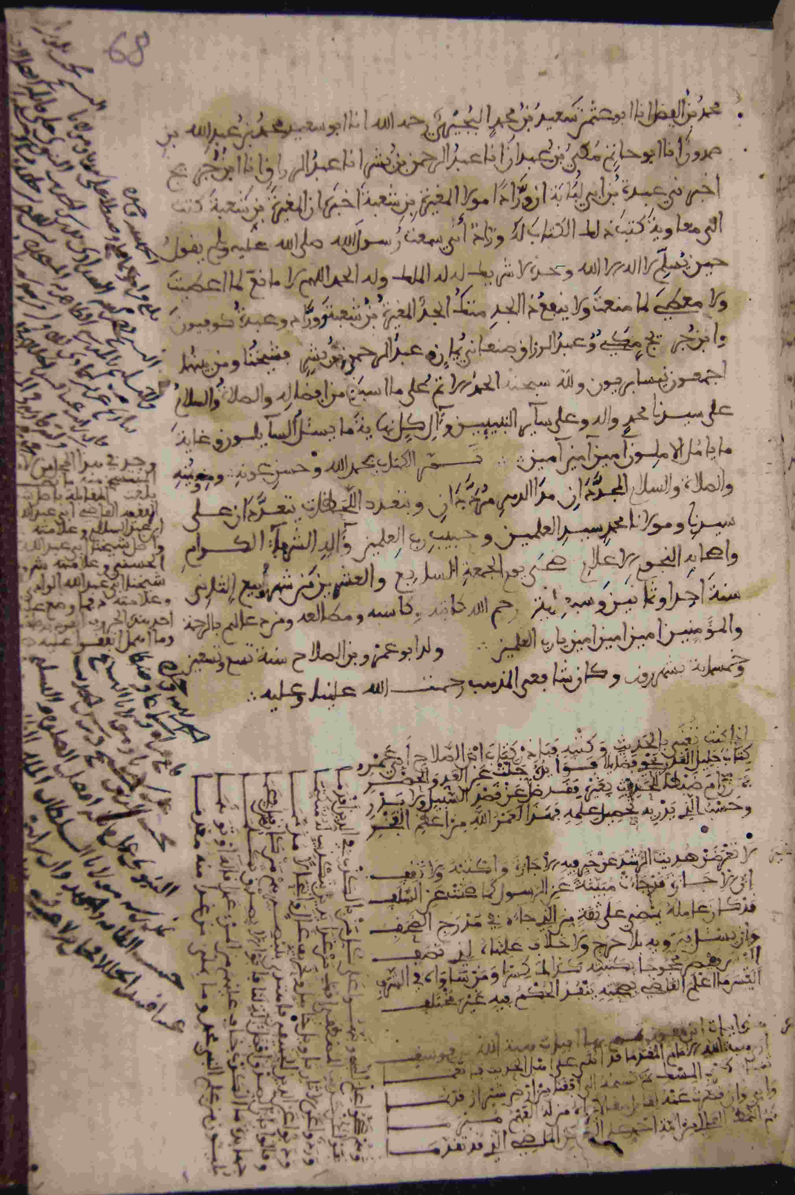 Description: أوله : " بعد البسملة والحمدلة هذا وأن علم الحديث من أفضل العلوم الفاضلة وأنفع الفنون النافعة يحبه ذكور الرجال وفحولتهم..."/آخره : "عبد الرحمان بن بشر فشيخنا ومن بينهما أجمعون نيسابوريون ولله سبحانه الحمد الأتم على ما أسبغه من أفضاله والصلاة والسلام على سيدنا محمد وآله وعلى سائر"، نوع الخط مغربي، التجليد مزخرف، حالة المخطوط حسنة، عليه تعليقات في الحواشي, في الورقة الأخيرة خطبة على عدد سور القرآن، بداية المخطوط في الورقة الثانية، نهاية المخطوط في الورقة 69، المخطوط مرقمن، رقم المخطوط 707 م، مصدر المخطوط : زاوية الشيخ الحسين سيدي خليفة (ميلة) .