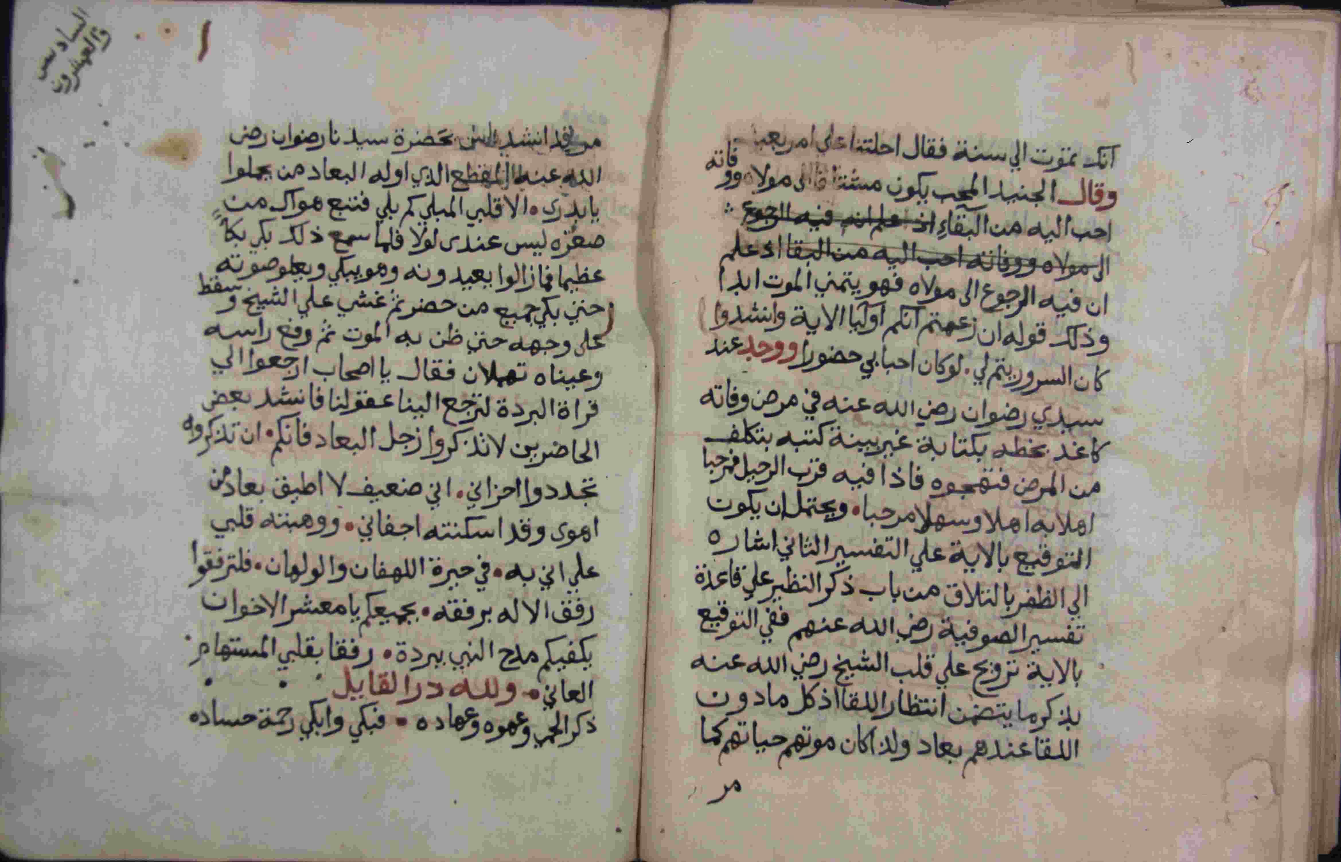 Description: أوله : " بسم الله الرحمن الرحيم الحمد لله الذي جعل مدد النبوة مستمرة السريان في الأمة وأبقي نورها دائم الإشراق..."/آخره : " مبتور الآخر ... "، نوع الخط مشرقي، التجليد منزوع الغلاف، حالة المخطوط متوسطة، 9 أوراق ملتصقة في نهاية المخطوط، تملكه محمد بن عبد الكريم الفكون، بداية المخطوط في الورقة الثانية، نهاية المخطوط في الورقة 252، المخطوط مرقمن، رقم المخطوط 977 م، مصدر المخطوط : مكتبة الشيوخ.