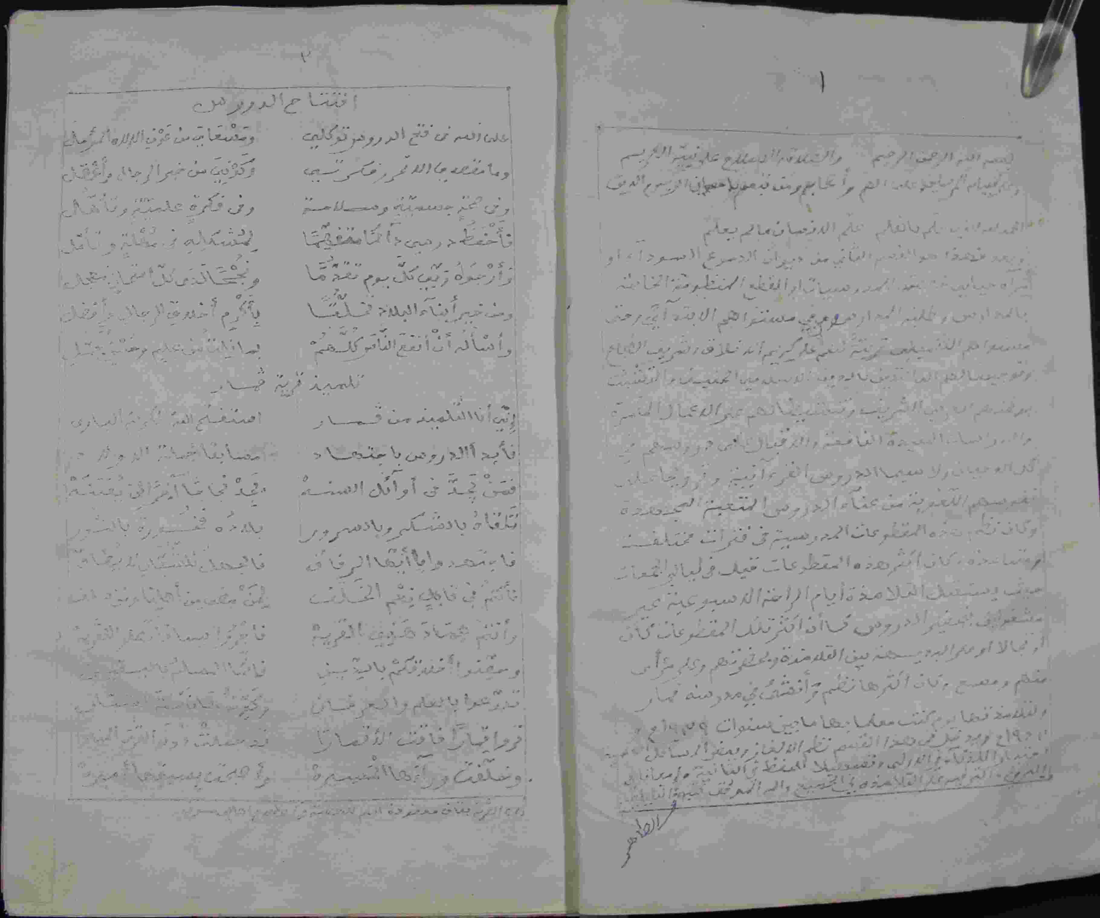 Description: أوله : " الحمد لله الذي علم بالقلم علم الإنسان ما لم يعلم وبعد فهذا هو القسم الثاني..."/آخره : " أربعة يذكرها القرآن * في معرض التحريم بإنسان "، نوع الخط مشرقي، التجليد عادي، حالة المخطوط متوسطة، هذا الكتاب صورة طبق الأصل للمخطوط، بداية المخطوط في الورقة الثانية، نهاية المخطوط في الورقة 26، المخطوط مرقمن، رقم المخطوط 614 م، مصدر المخطوط : مكتبة الشيخ محمد الطاهر التليلي القماري.
