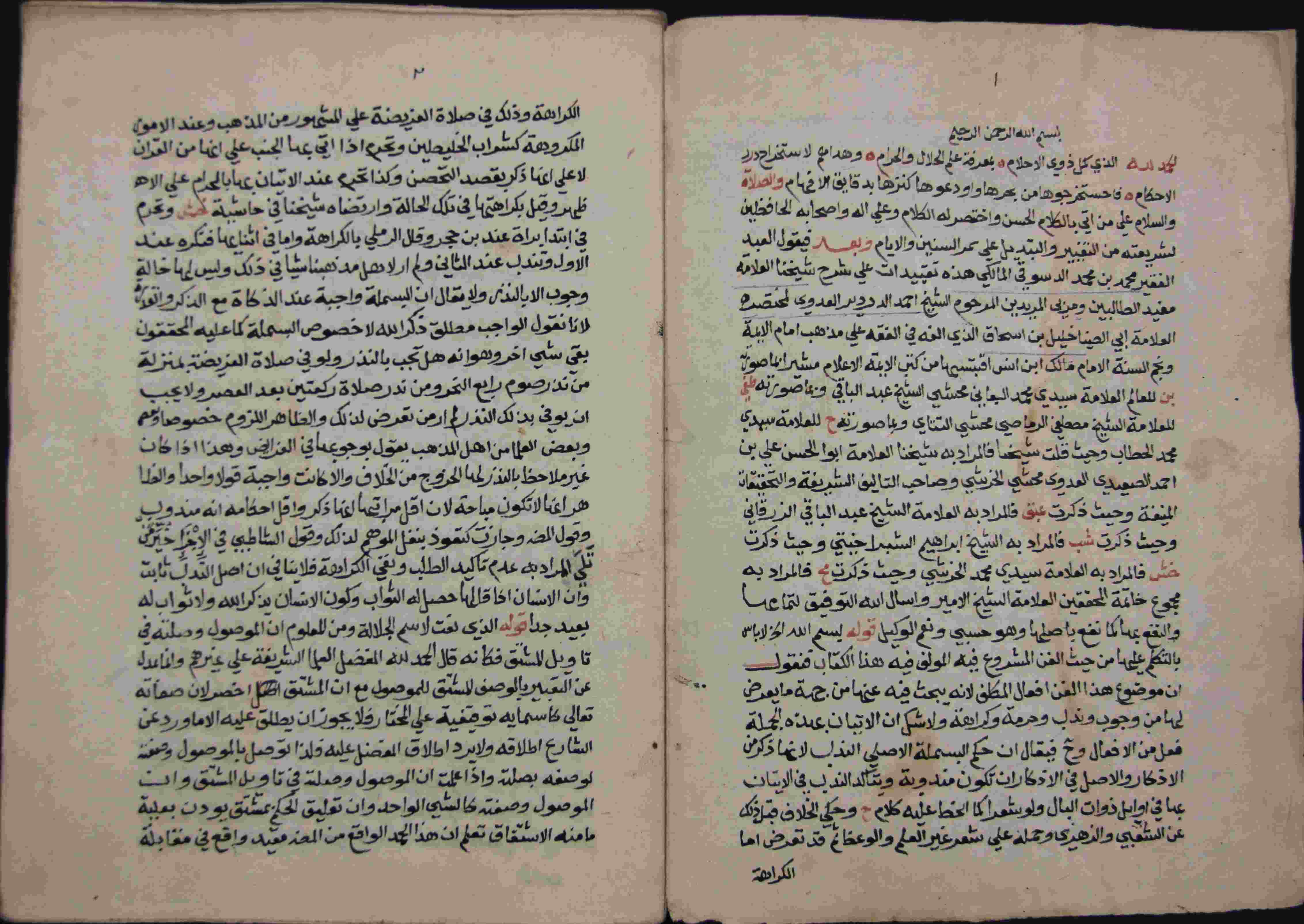Description: أوله : " بسم الله الرحمن الحيم الحمد لله الذي كمل ذوي الأحلام... هذه تقييدات على شرح شيخنا العلامة مفيد الطالبين..."/آخره : " الأنبياء كما أنهم لا يورثون لا يرثون...تم الجزء الأول من حاشية العلامة الشيخ محمد عرفة الدسوقي "، نوع الخط مشرقي، التجليد مزخرف، حالة المخطوط جيدة، بهامشه تعليقات، الاوراق مرقمة، في الورقة الثانية فهرسة الكتاب، بداية المخطوط في الورقة الرابعة، نهاية المخطوط في الورقة 568، المخطوط مرقمن ، رقم المخطوط 319 م، مصدر المخطوط : مكتبة الشيخ نعيم النعيمي .