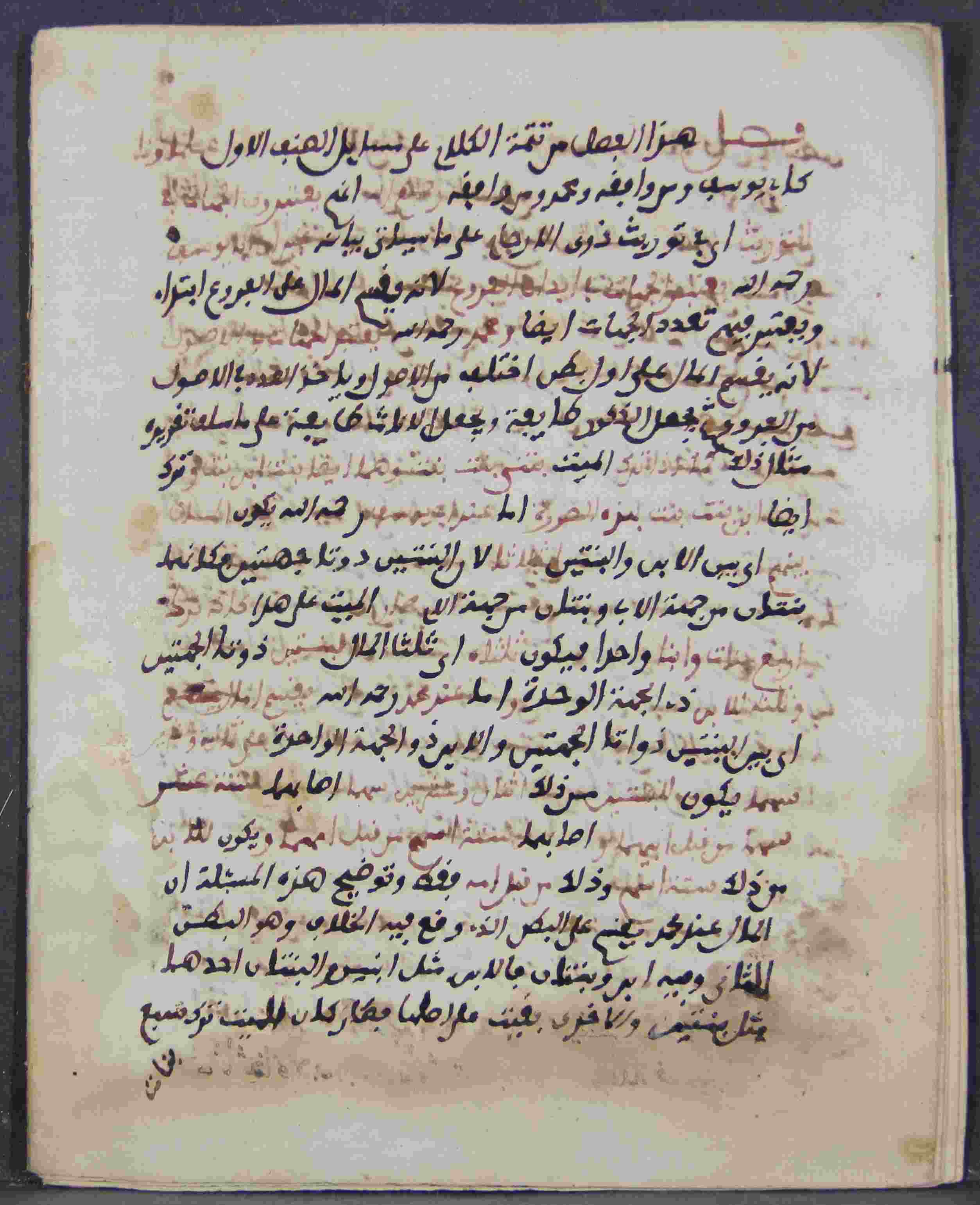 | Description: | أوله : " الحمد لله وكفى وسلام على عباده الذين اصطفى قال العالم الإمام..."/آخره: " وفيه ابن وبنتان فالإبن مثل ابنين البنتان أحدهما مثل بنتين والأخرى بقيت "، نوع الخط مغربي، التجليد غير مجلد، حالة المخطوط متوسطة، أثرت في أوراقه الرطوبة، به تعليقات بالهوامش، به ختم الملكية، مبتور الآخر، به أوراق إضافية في الآخر في شكل جداول وشرح تلك الجداول، الأوراق الخاصة به 52 ورقة، بداية المخطوط في الورقة 120، نهاية المخطوط في الورقة 171، المخطوط مرقمن، رقم المخطوط 7.7 /1033 م، مصدر المخطوط : مكتبة الشيخ نعيم النعيمي. |