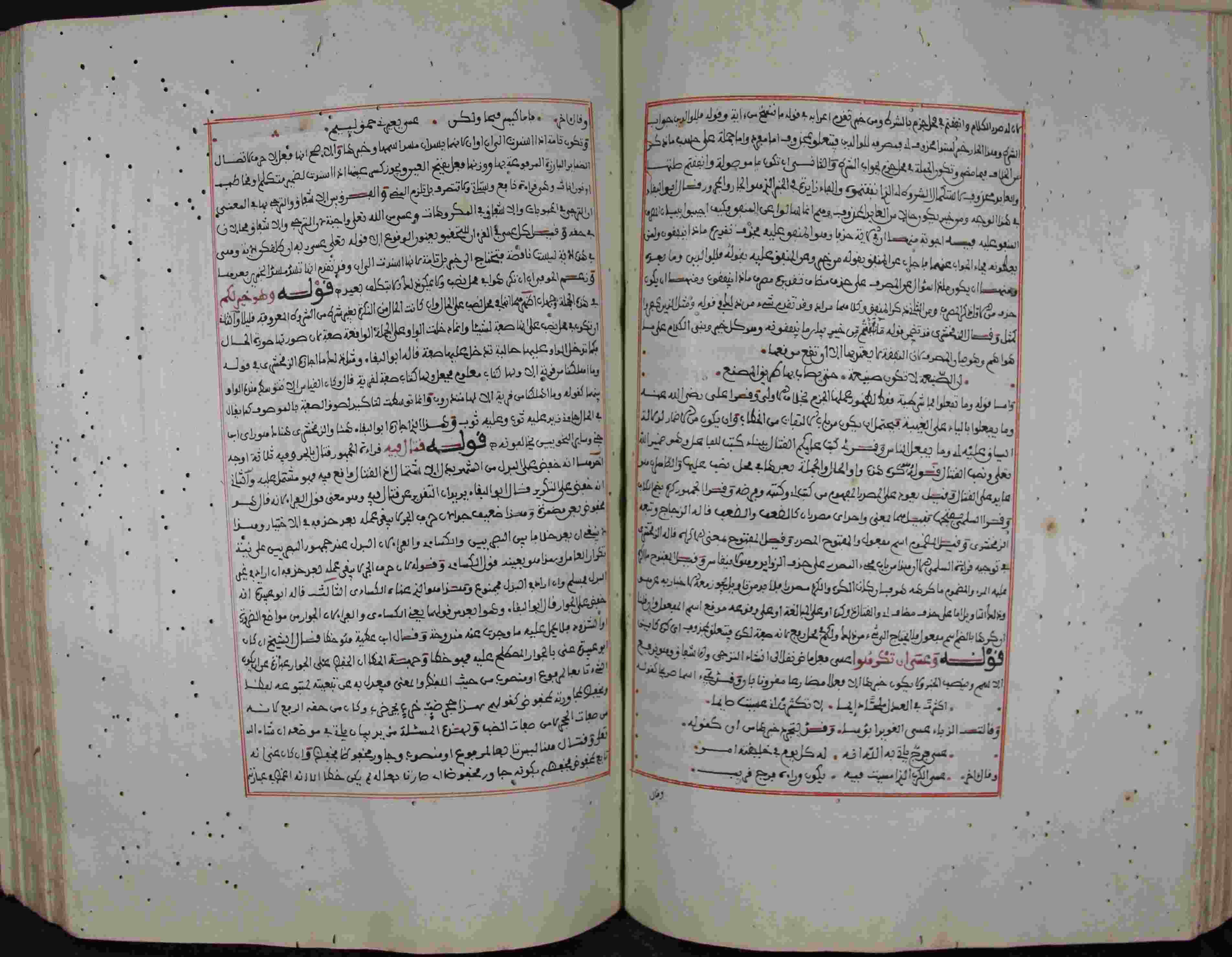 | Description: | أوله : " بسم الله الرحمان الرحيم صلى الله على سيدنا ومولانا محمد وعلى آله وصحبه وسلم الحمد لله الذي أنزل على عبده الكتاب..."،آخره : " بما تعلق به الظرف من الثبوت وبالإستقرار ومن هنا إلى آخر السورة تقدم نظائره انتهى بحمد الله تعالى وحسن عونه "، نوع الخط مشرقي، التجليد مزخرف، حالة المخطوط جيدة، به ثقوب كثيرة بسبب الأرضة، قابه بالمنقول ابن عبد الجليل مصطفى بن محمد بن شعبان، اعتمد على نظام التعقيبة في الترتيب، مكتوب في إطار ملون، بداية المخطوط في الورقة السادسة، نهاية المخطوط في الورقة 343، المخطوط مرقمن، رقم المخطوط 58 م، مصدر المخطوط : مكتبة الشيخ نعيم النعيمي ؛ المراجع والمصادر : معجم المؤلفين (2/ 211). |