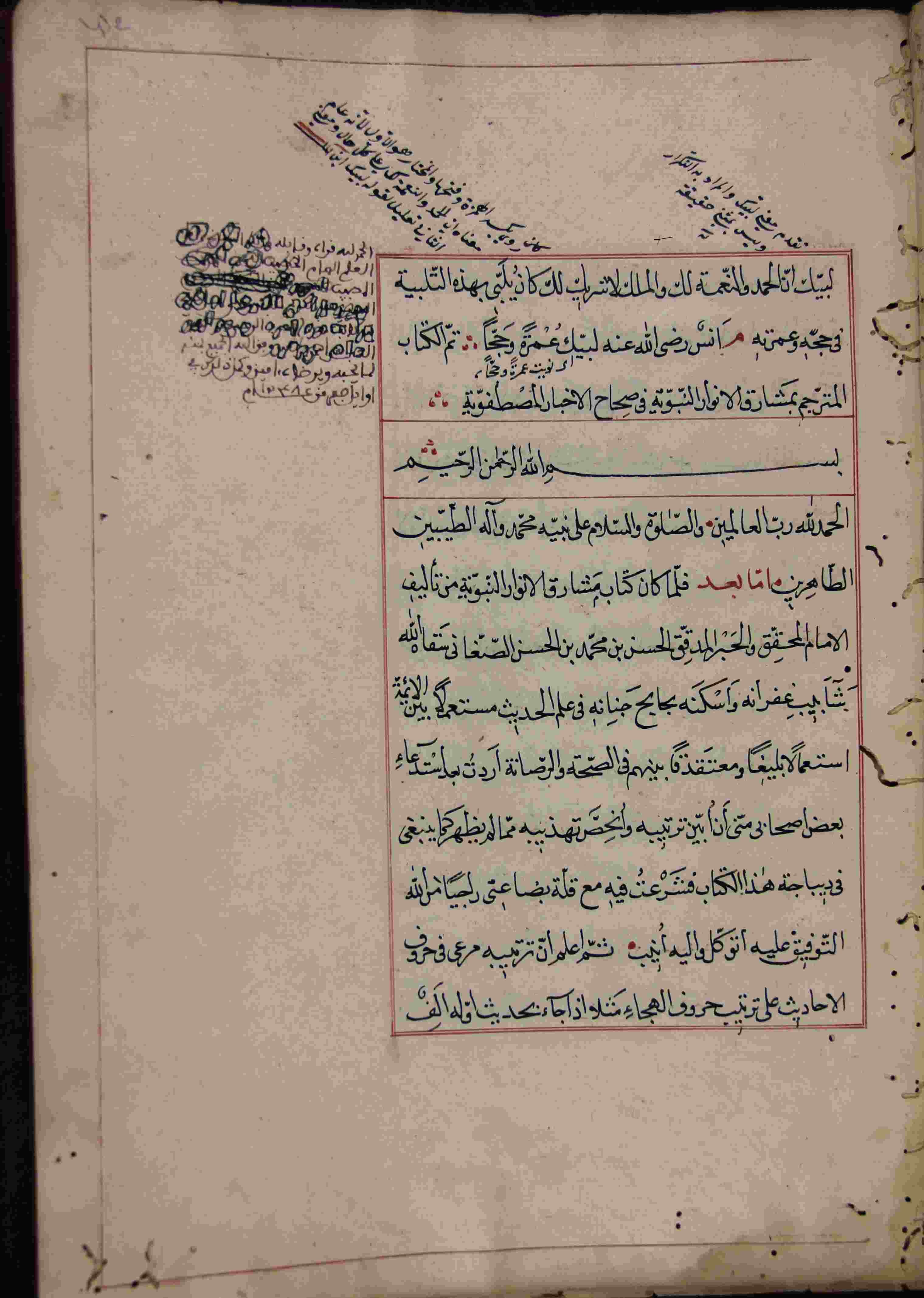 Description: أوله : " الحمد لله محي الدمم وجري القلم وذاريء الأمم وباريء النسم ليعبدوه ولا شركوا به..."/آخره : " كان يلبي بهذه التلبية في حجه وعمرته م أنس رضي الله عنه لبيك عمرة وحجة إني نويت حجة وعمرة "، نوع الخط نسخي مشرقي، التجليد مزخرف، حالة المخطوط جيدة، عليه تمليك عبد الكريم الفكون 1248هـ.، عليه حاشية لصاحبها ابن الملك، معه تذييل في بيان ترتيبه وتبويبه (4 ورقات) ، الكتاب مطبوع، بداية المخطوط في الورقة الأولى، نهاية المخطوط في الورقة 207، المخطوط مرقمن، رقم المخطوط 741 م، مصدر المخطوط : زاوية الشيخ الحسين سيدي خليفة (ميلة) ؛ المراجع والمصادر : الأعلام خير الدين الزركلي (5/ 61).