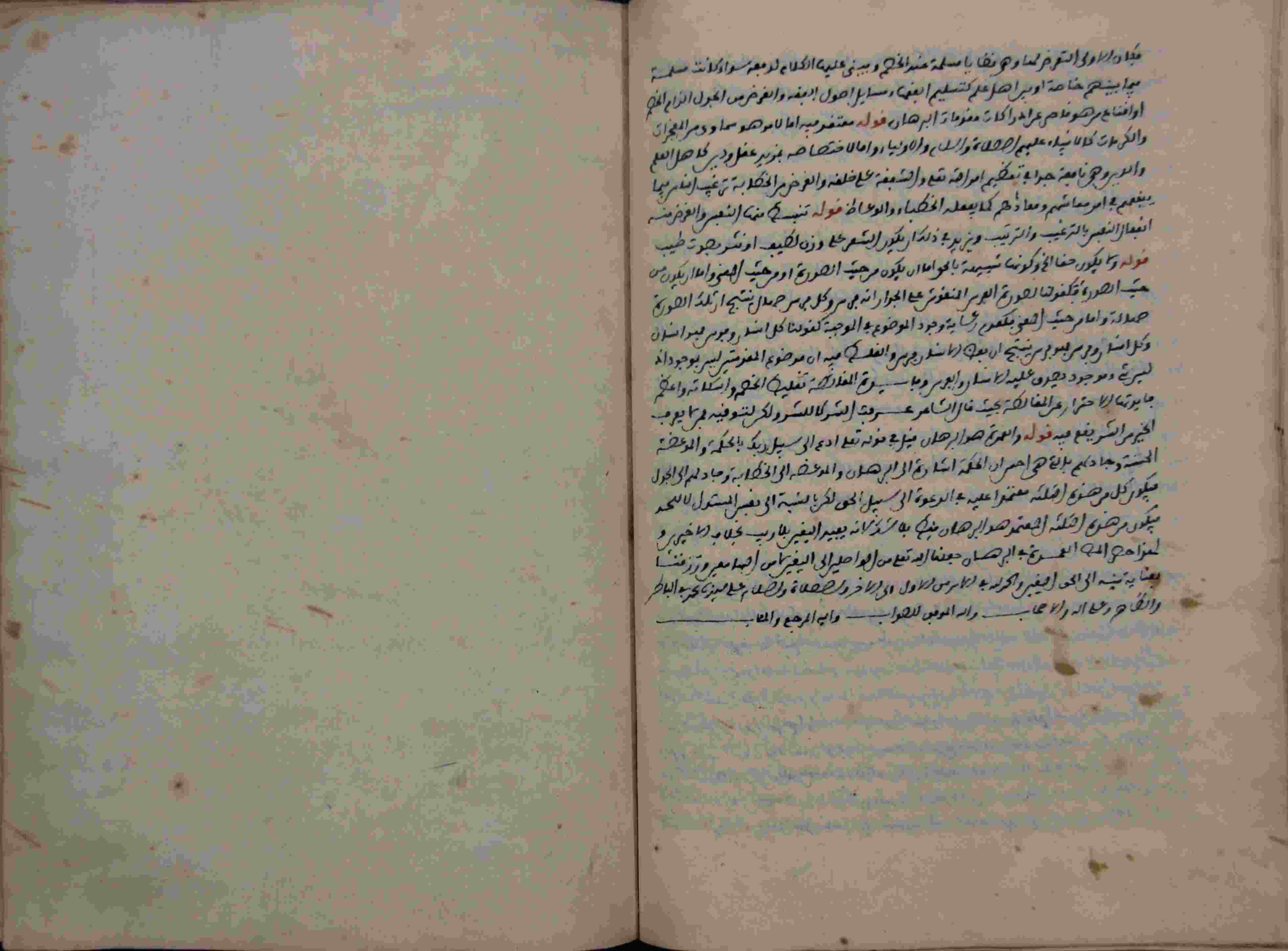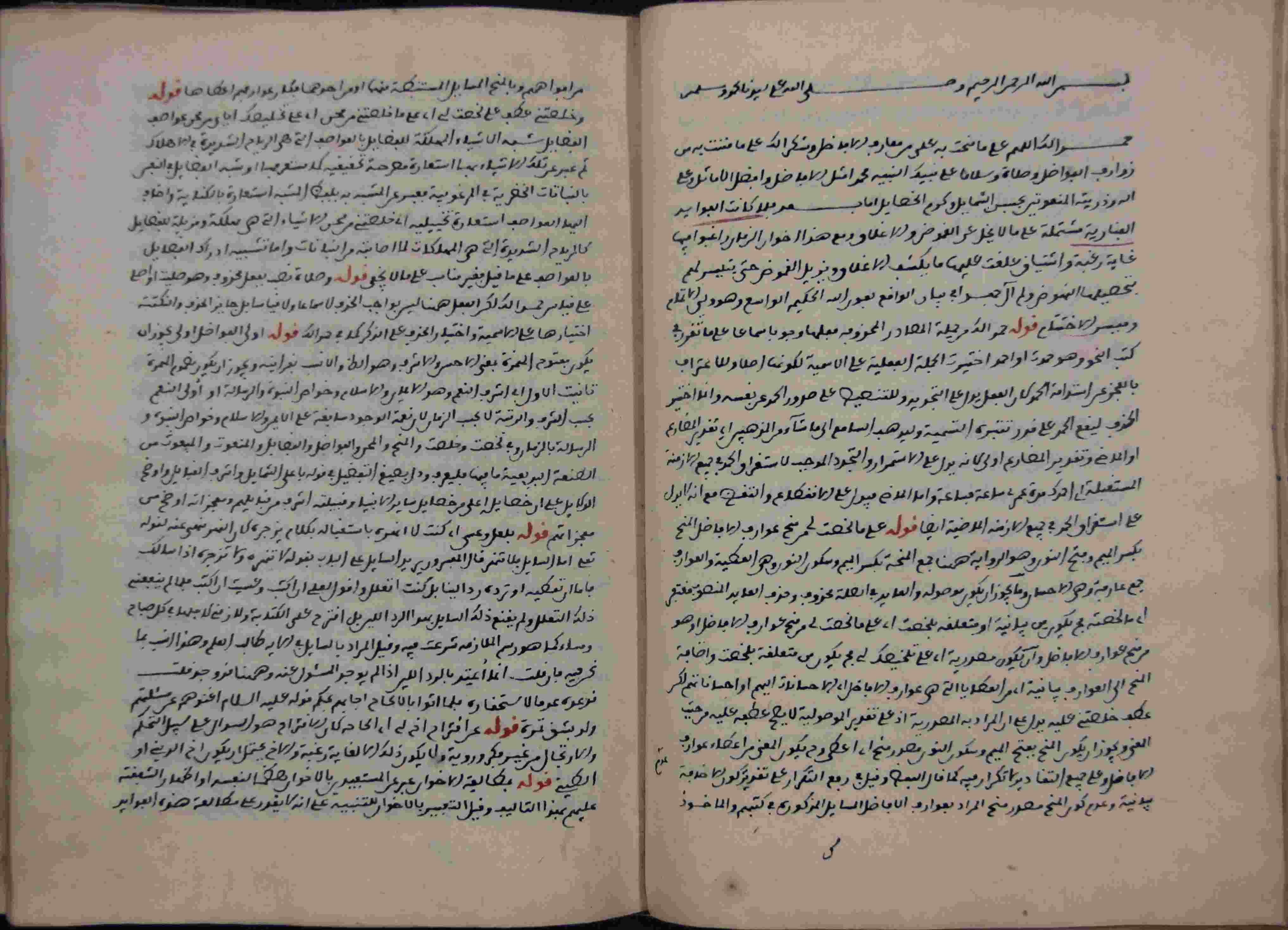 | Description: | أوله : " فلما كانت الفوائد الفنارية مشتملة على ما لا يخل عن الغموض والإغلاق.../آخره : " ورزقنا بعناية نية إلى الحق اليقين والحمد لله في الأمر من الأول إلى الآخر والصلاة والسلام على سيدنا محمد "، نوع الخط مغربي، التجليد عادي، حالة المخطوط حسنة، عليه آثار الرطوبة، به تعليقات بالهامش، اتبع نظام التعقيبة في الترتيب، لعلها حاشية الشيخ أحمد التي أشير إليها على غلاف المجموع، عدد الأوراق الخاصة به 16 ورقة، بداية المخطوط في الورقة 212، نهاية المخطوط في الورقة 227، المخطوط مرقمن، رقم المخطوط 9.13 /17 م، مصدر المخطوط : مكتبة الشيخ نعيم النعيمي ؛ المراجع والمصادر : الأعلام للزركلي (6/ 110). |