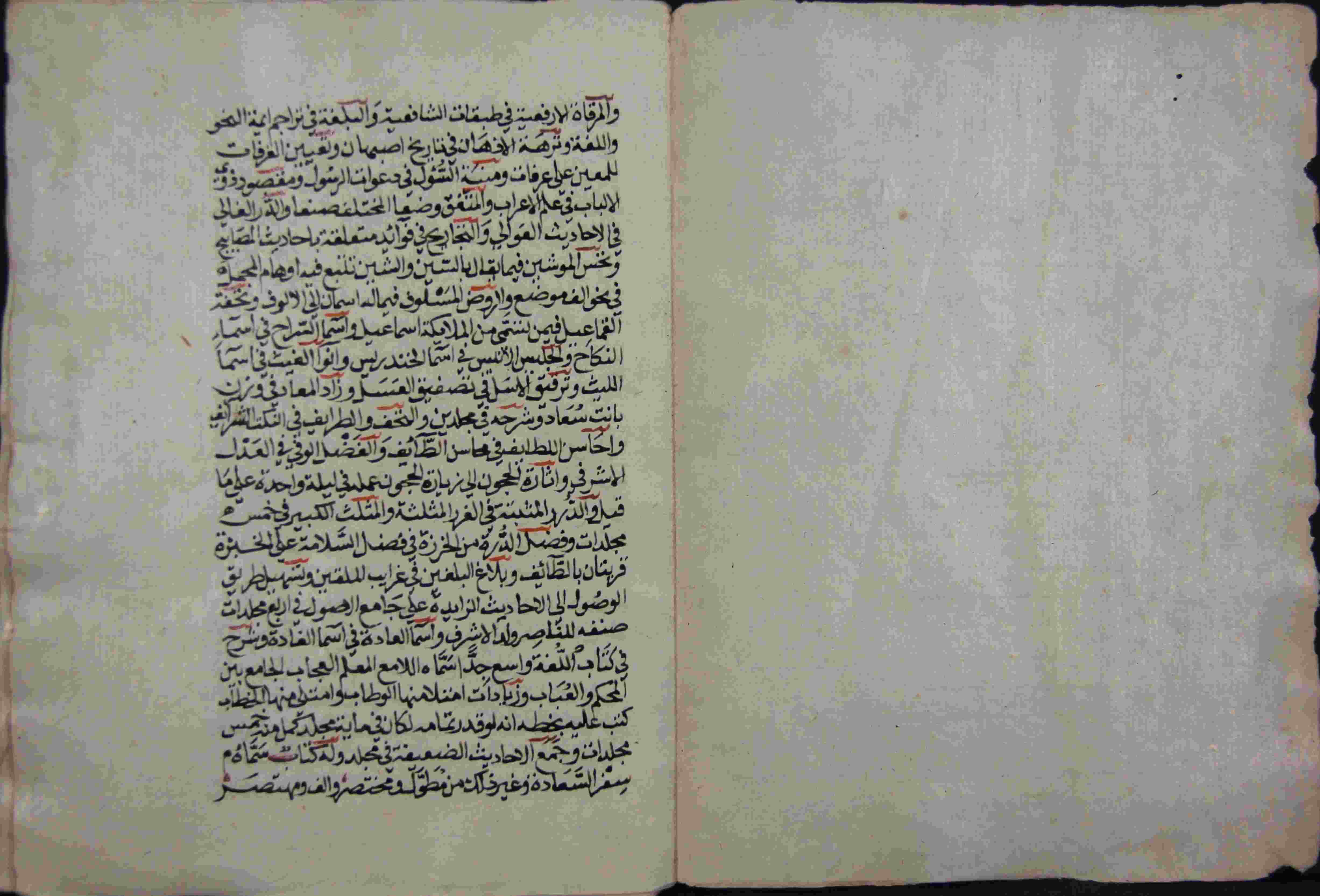 Description: أوله : " مبتور الأول... والمرقاة الأرفعية في طبقات الشافعية والبلغة في تراجم أيمة النحو واللغة..."/آخره : " انتهى باب الجيم والحمد لله وحده ويليه باب الحاء المهملة والله الموفق للصواب وإليه المرجع انتي والمآب "، نوع الخط مشرقي، التجليد مزخرف، حالة المخطوط جيدة، بداية المخطوط في الورقة الثانية، نهاية المخطوط في الورقة 720، المخطوط مرقمن، رقم المخطوط 13 م، مصدر المخطوط : مكتبة الشيوخ.