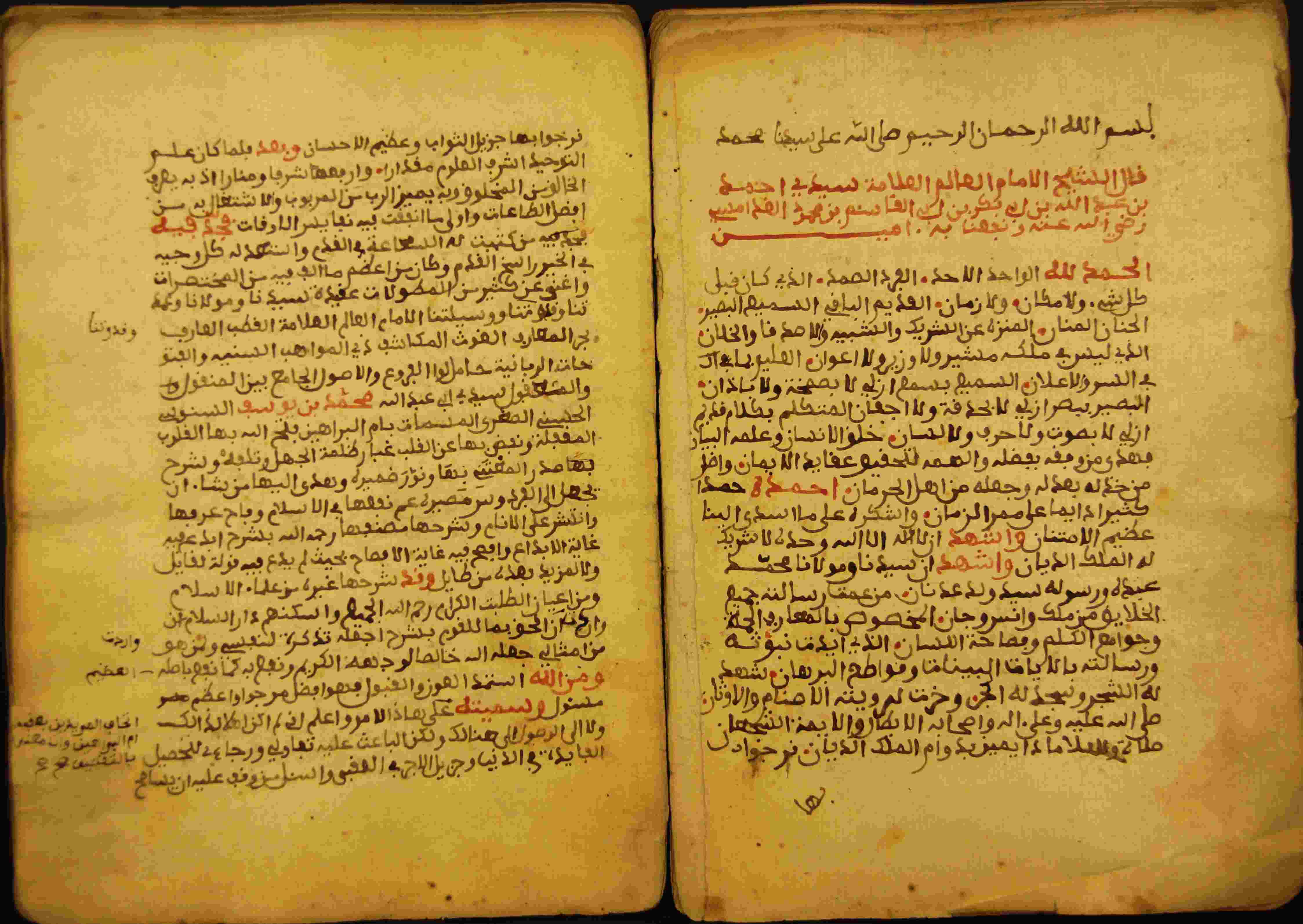 Description: أوله : " بسم الله الرحمن الرحيم...الحمد لله الواحد الأحد وسميته على هذا الأمر وأعلم أني لم أكن "/آخره : " وهذا آخر ما قصدته من هذا التعليق المبارك "، نوع الخط مغربي، التجليد مزخرف، حالة المخطوط حسنة، بهامشه بعض التعليقات، أثرت عليه الرطوبة، ثلاثة كتب في مجلد واحد، سنة التأليف 1074 هـ. الموافق لـ [1663 م.] بداية المخطوط في الورقة 112، نهاية المخطوط في الورقة 193، المخطوط مرقمن، رقم المخطوط 3.3 /191 م، مصدر المخطوط : مكتبة الشيخ نعيم النعيمي.