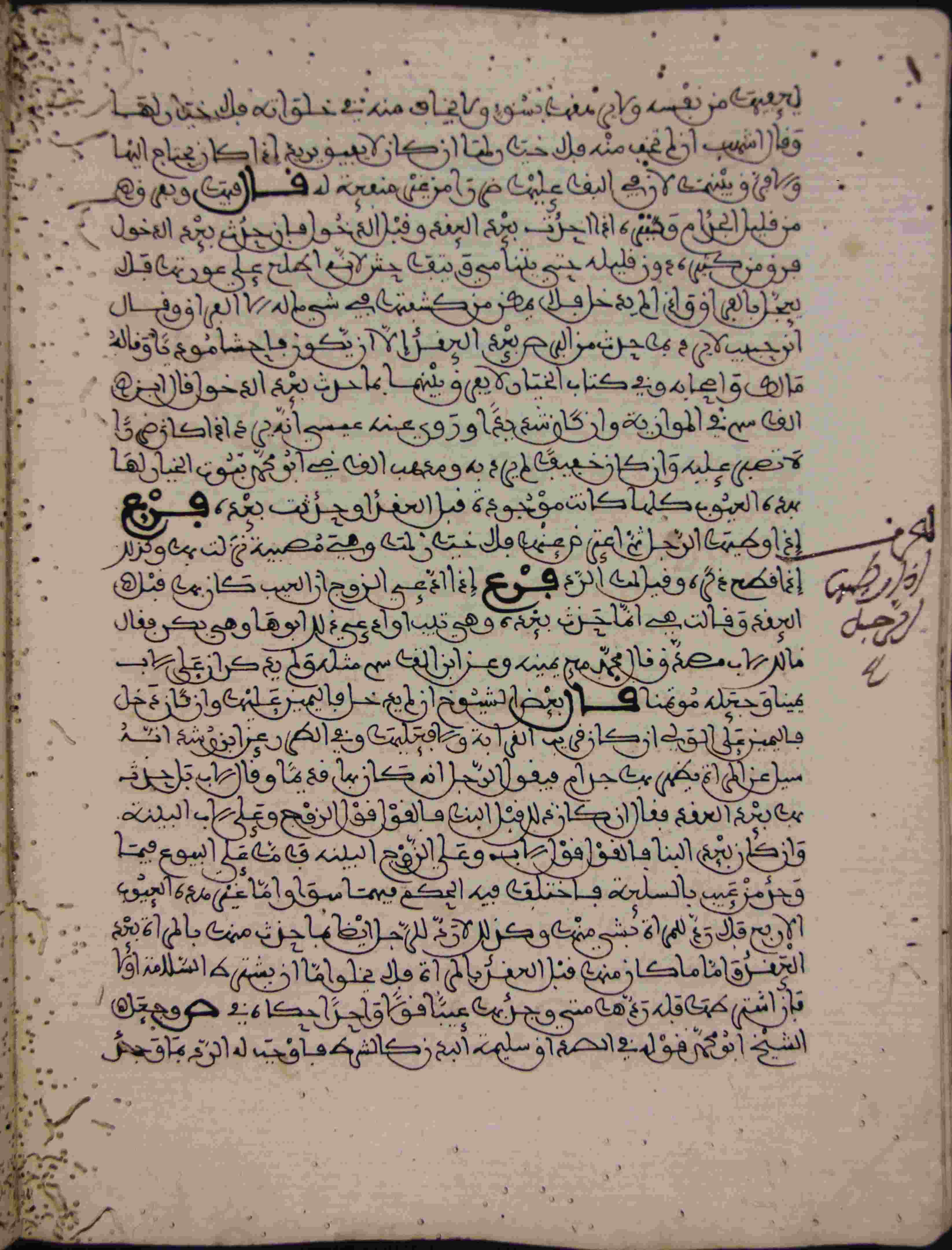 Description: أوله : " الحمد لله المتعال ذي العزة والجلال والعظمة والكمال جل عن النظير والمثال..."/آخره : " إذا مضى قدر العدة على النهار رأت الاقراء وبانت...تم السفر الأول من الفائق في معرفة الأحكام والوثائق "، نوع الخط مغربي، التجليد عادي، حالة المخطوط حسنة، فيه تآكل، بداية المخطوط في الورقة الثانية، نهاية المخطوط في الورقة 224، المخطوط مرقمن، رقم المخطوط 668 م، مصدر المخطوط : مكتبة الشيخ نعيم النعيمي ؛ المراجع والمصادر : معجم المؤلفين، الأعلام خير الدين الزركلي (14/ 93).