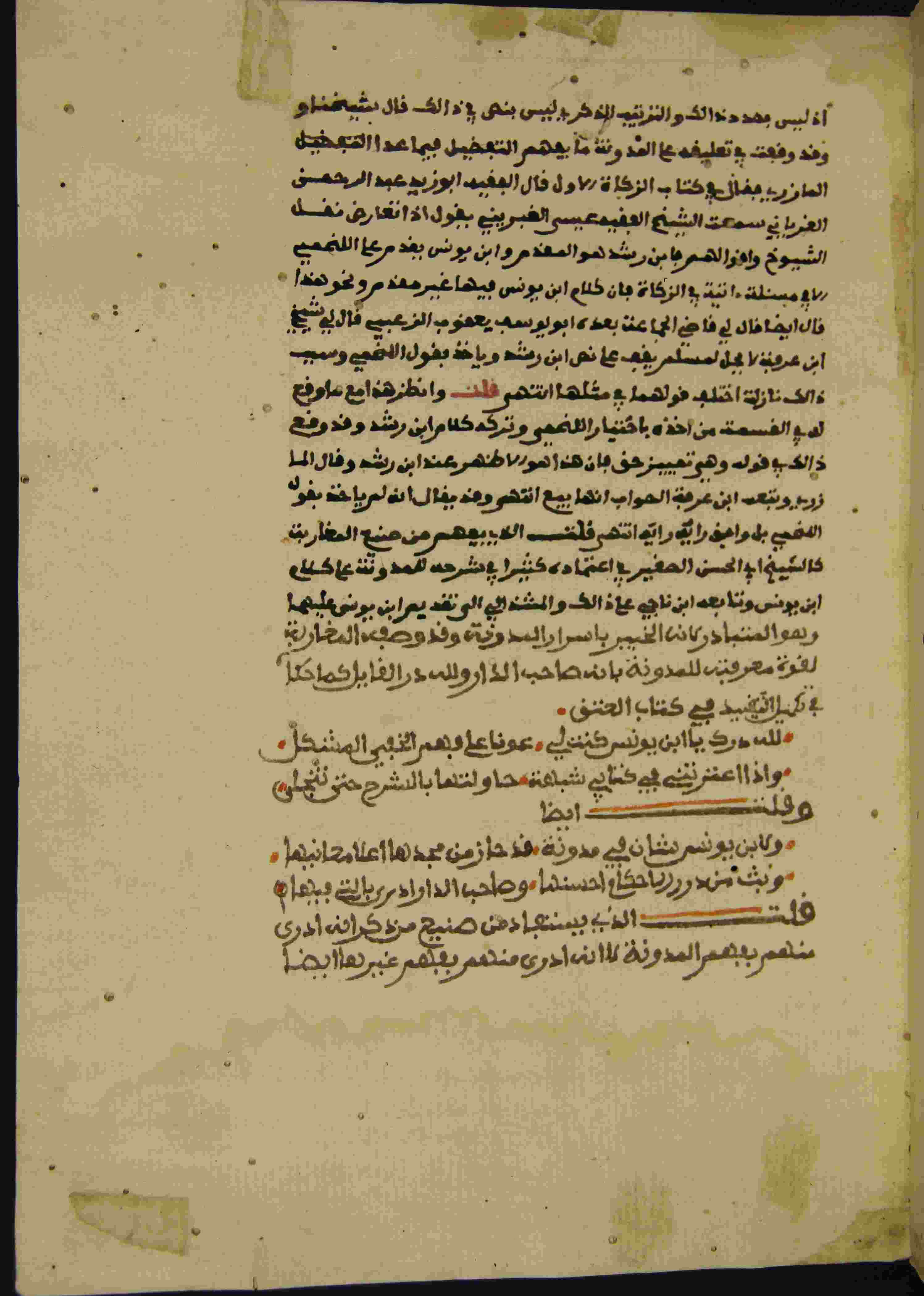 | Description: | أوله : " بسم الله الرحمان الرحيم وصلى الله على سيدنا محمد وعلى آله وصحبه وسلم كلما ذكرك الذاكرون وغفل عن ذكرك الغافلون قال الناصر اللقاني لما كان تأليف هذا الكتاب..."/آخره : " فقلت الذي يستفاد من صنيع من ذكر أنه أدرى منهم بفهم المدونة كأنه أدرى منهم بفهم غيرها أيضا "، نوع الخط مغربي، التجليد عادي، حالة المخطوط جيدة، عليه تعليقات في الحواشي، عليه تمليكات الونيسي رجب سنة 1288هـ.، بداية المخطوط في الورقة الثانية، نهاية المخطوط في الورقة 178، المخطوط مرقمن، رقم المخطوط 730 م، مصدر المخطوط : زاوية الشيخ الحسين سيدي خليفة (ميلة) ؛ المراجع والمصادر : معجم المؤلفين (11/ 167)، كشف الظنون (2/ 1628). |