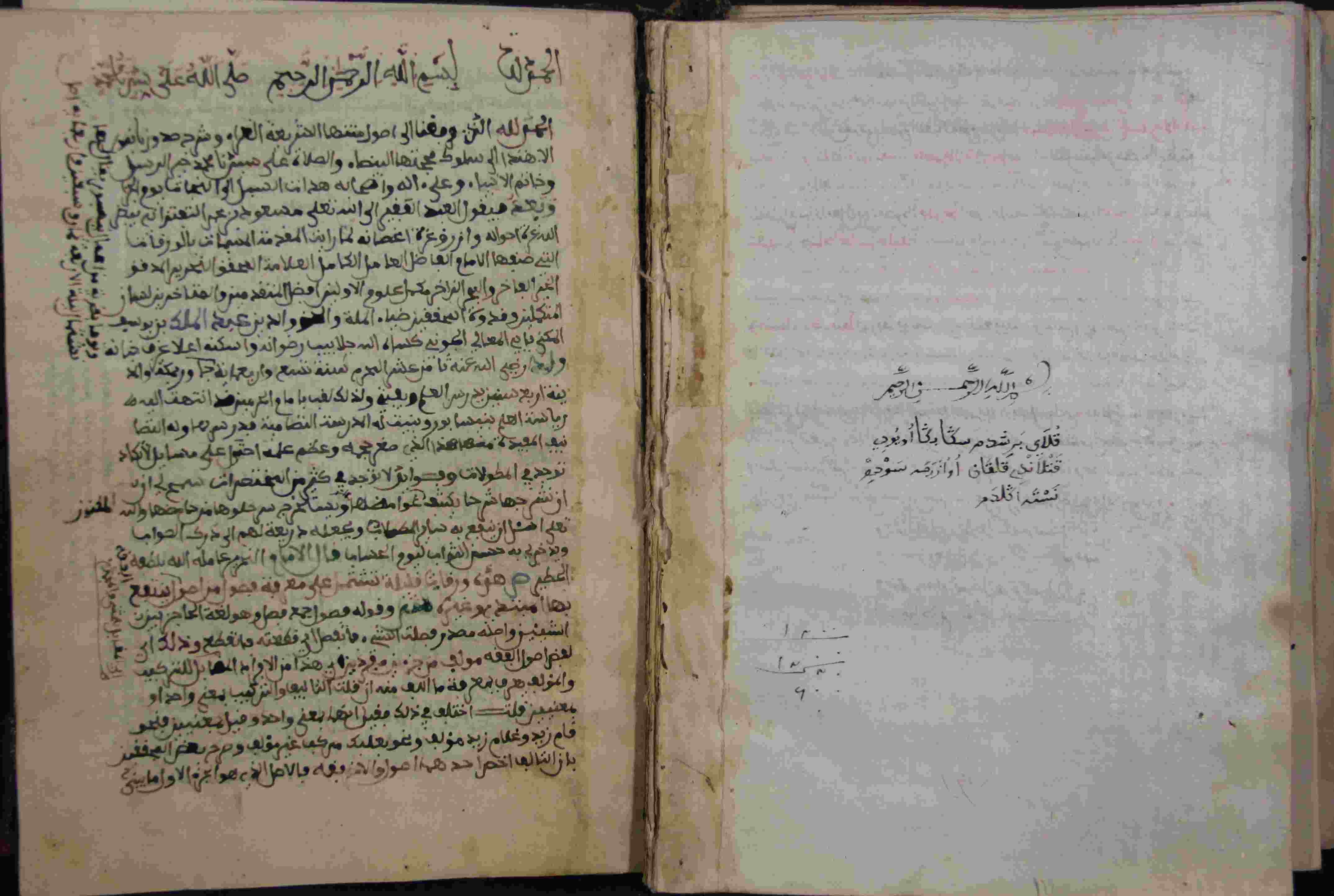| Description: | أوله : " الحمد لله بسم الله الرحمان الرحيم صلى الله على سيدنا محمد الحمد لله الذي وفقنا إلى أصول متنها الشريعة..."/آخره : " من اجتهد وأصاب فله أجران وأن أجتهد وأخطي فله أجر واحد ووجه الدليل أن النبي صلى الله عليه وسلم خطا المجتهدين تارة وصوبهم تارة رواه الشيخان "، نسخ يوم الجمعة ثاني ذي الحجة عام 1108هـ.، الورقتان الأخيرتان موضوعهما شرح الإسم والمسمى، بهامشه حواشي، نوع الخط مغربي، التجليد مزخرف، حالة المخطوط متوسطة، بهامشه حواشي، خضع لعملية صيانة، بداية المخطوط في الورقة 96، نهاية المخطوط في الورقة 112، المخطوط مرقمن، رقم المخطوط 2.2 /219 م، مصدر المخطوط : مكتبة الشيوخ. |