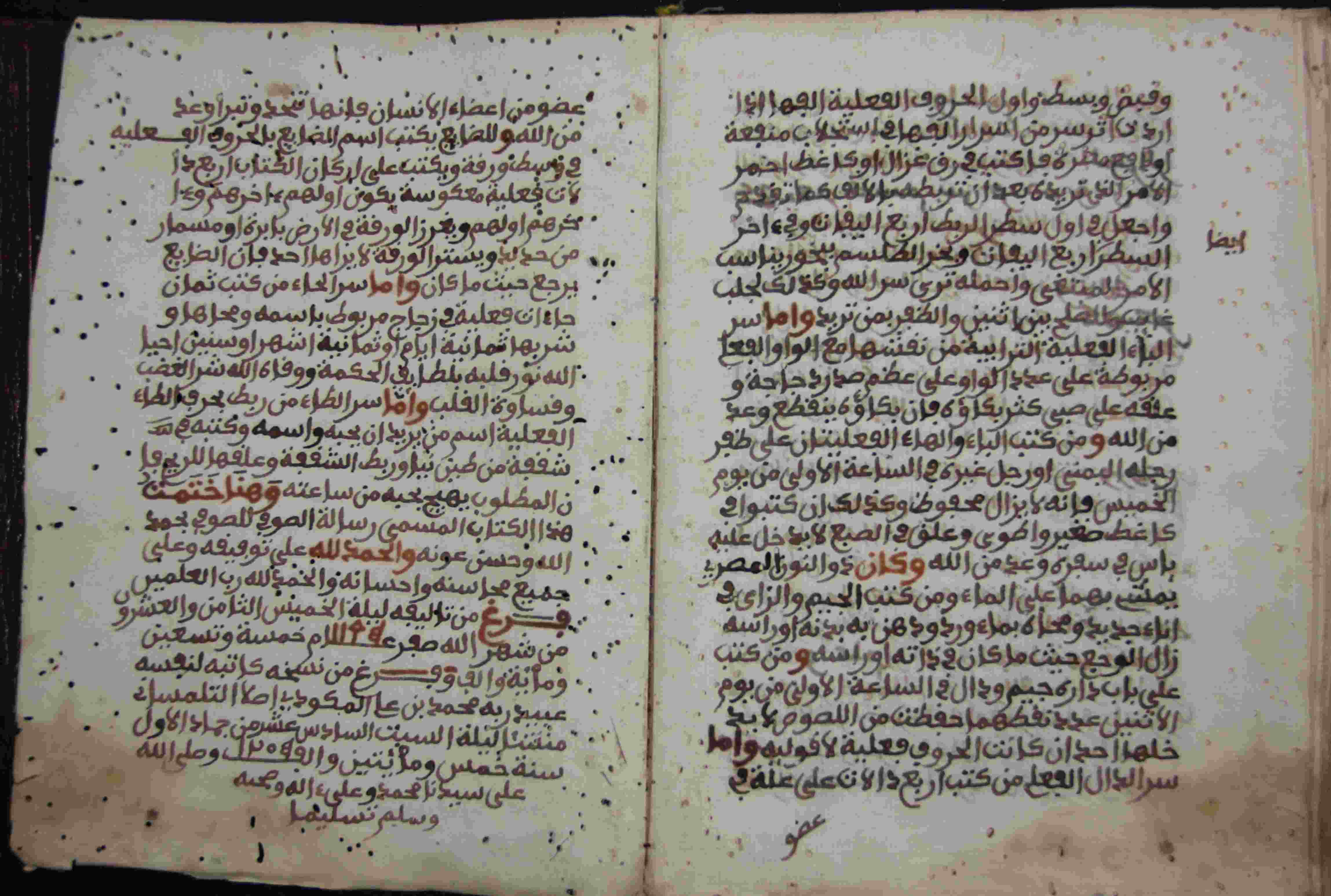 | Description: | أوله : " الحمد لله الذي نور نبور اسمه الأعظم عرشه العظيم وما فيه..."/آخره : " سر الطاء من ربط بحرف الطاء "، نوع الخط مغربي، التجليد مزخرف، حالة المخطوط حسنة، به ثقوب سببها الأرضة، فرغ من تأليفه ليلة الخميس الثامن والعشرون من شهر الله صفر 1195هـ.، فرغ من نسخه ليلة السبت السادس عشر من جمادى الأول سنة 1205هـ.، بداية المخطوط في الورقة الثانية، نهاية المخطوط في الورقة 142، المخطوط مرقمن، رقم المخطوط 876 م، مصدر المخطوط : زاوية الشيخ الحسين سيدي خليفة (ميلة). |