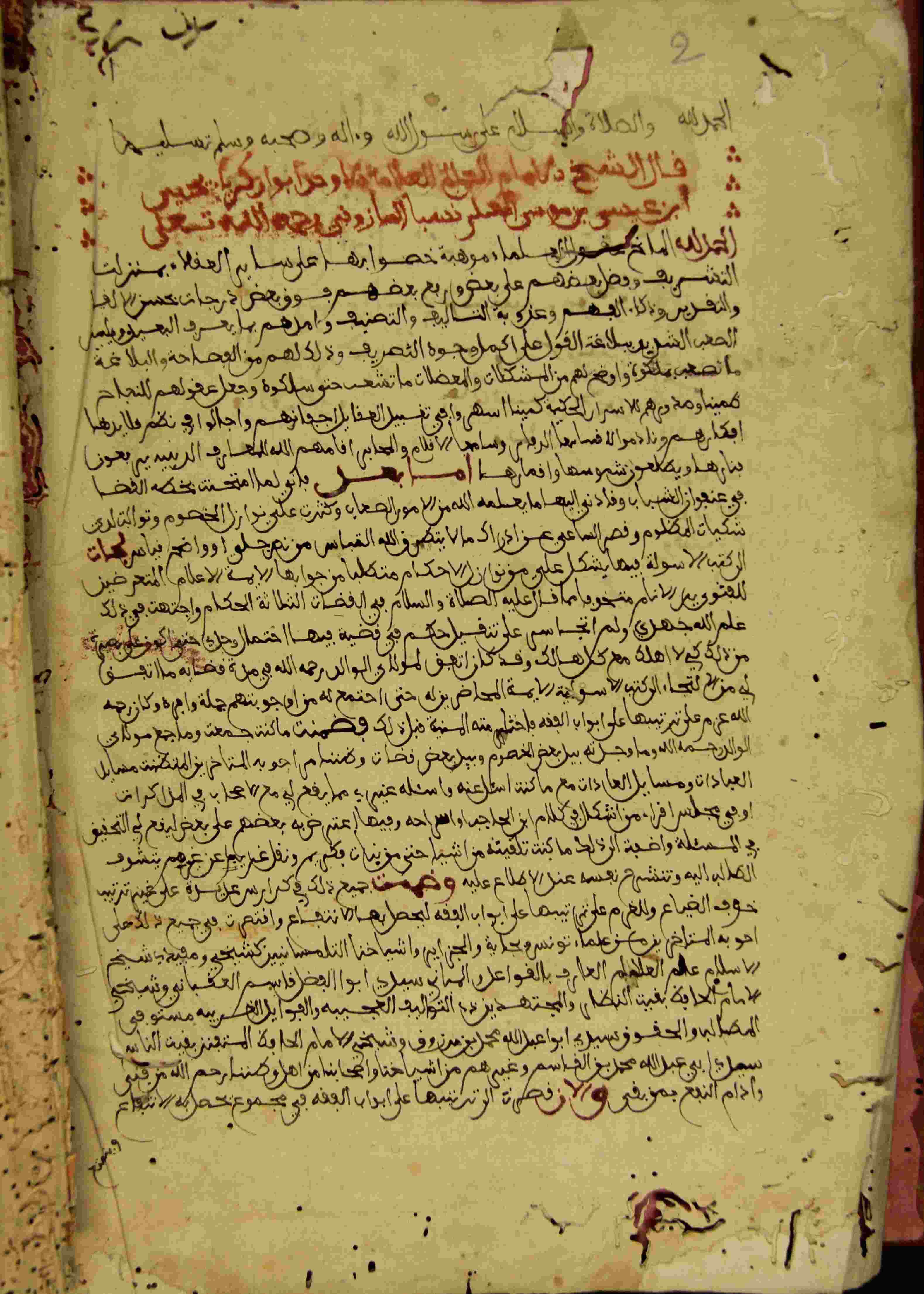 | Description: | أوله : " الحمد لله المانع عقول العلماء موهبة خصوا بها على سائر العقلاء بمنزلة التشريف..."/آخره : " ومن النبوة وأعظم الرسالة ولا عزو وحرمة عضوة الكرامة "، نوع الخط مغربي، التجليد مزخرف، حالة المخطوط حسنة، في الورقة الثانية تملكات للمخطوط، به ثقوب سببها الأرضة، بداية المخطوط في الورقة الأولى، نهاية المخطوط في الورقة 324، المخطوط مرقمن، رقم المخطوط 827 م، مصدر المخطوط : زاوية الشيخ الحسين سيدي خليفة (ميلة). |