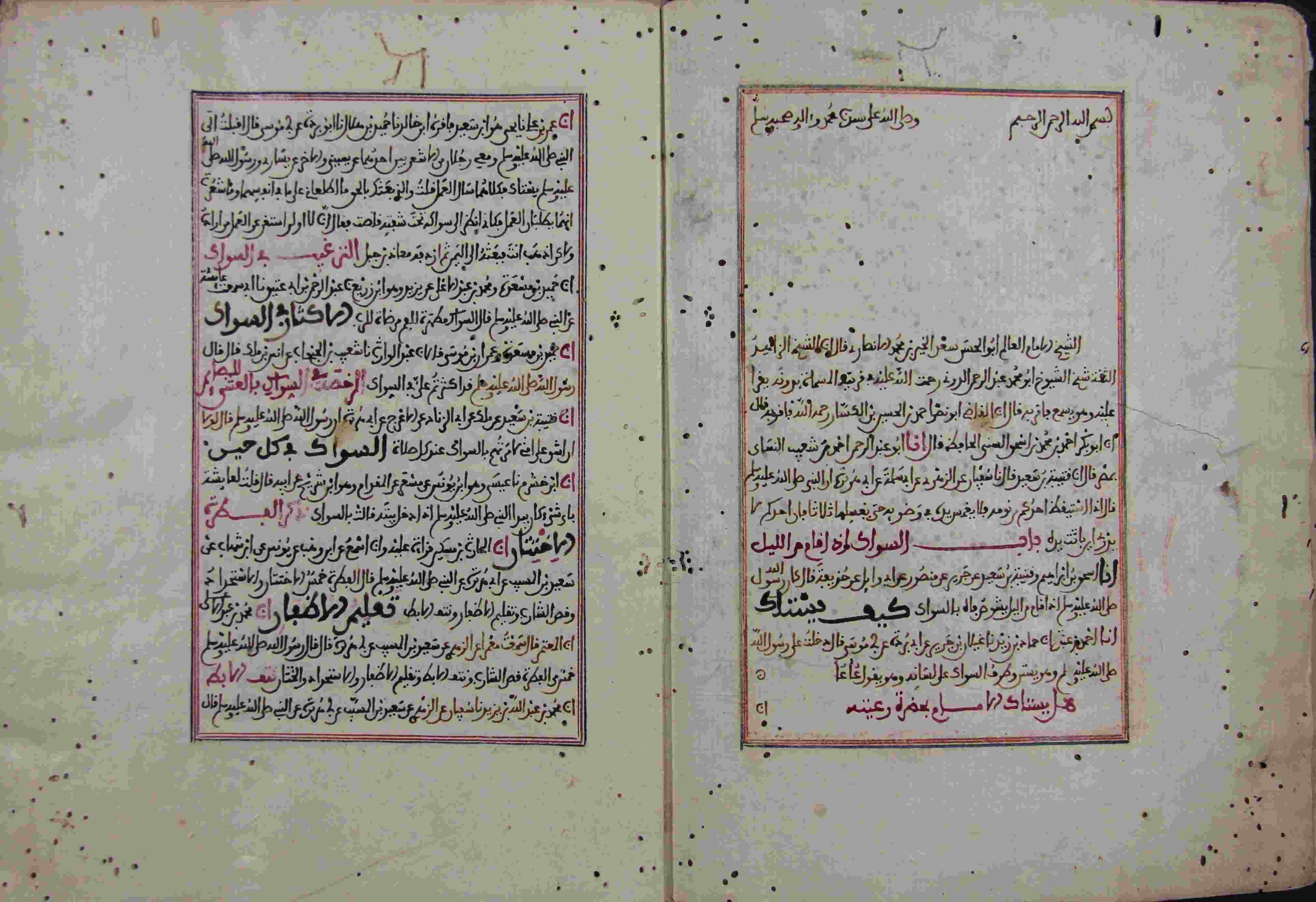 Description: أوله : " باب السواك إذا قام من الليل..."/آخره : " إنشاء الشعر في الحرم والمشي بين يدي الإمام، حرمة مكة "، نوع الخط مغربي، التجليد مزخرف، حالة المخطوط جيدة، بهامشه تعاليق، بداية المخطوط في الورقة الثالثة، نهاية المخطوط في الورقة 231، المخطوط مرقمن، رقم المخطوط 845 م، مصدر المخطوط : زاوية الشيخ الحسين سيدي خليفة (ميلة).