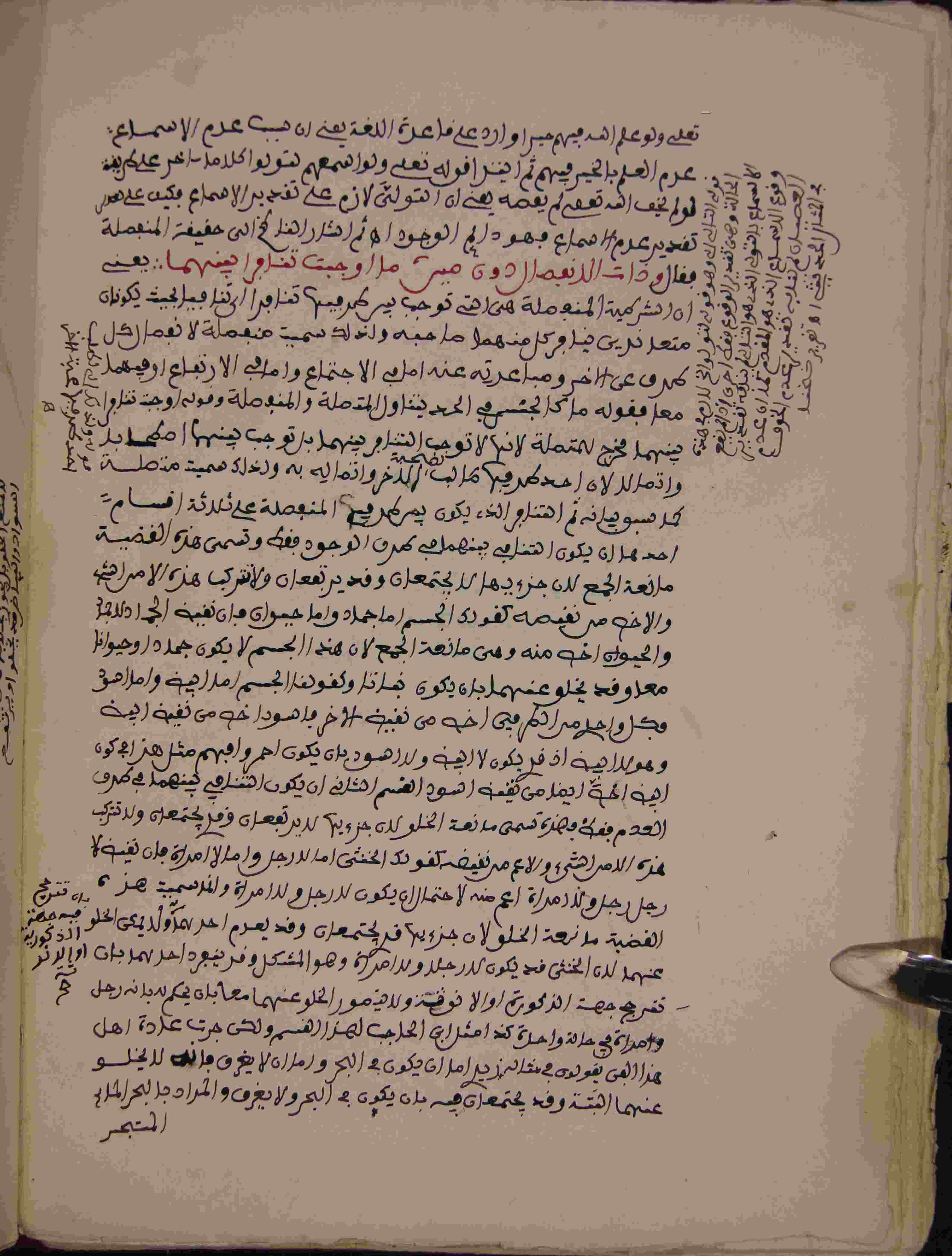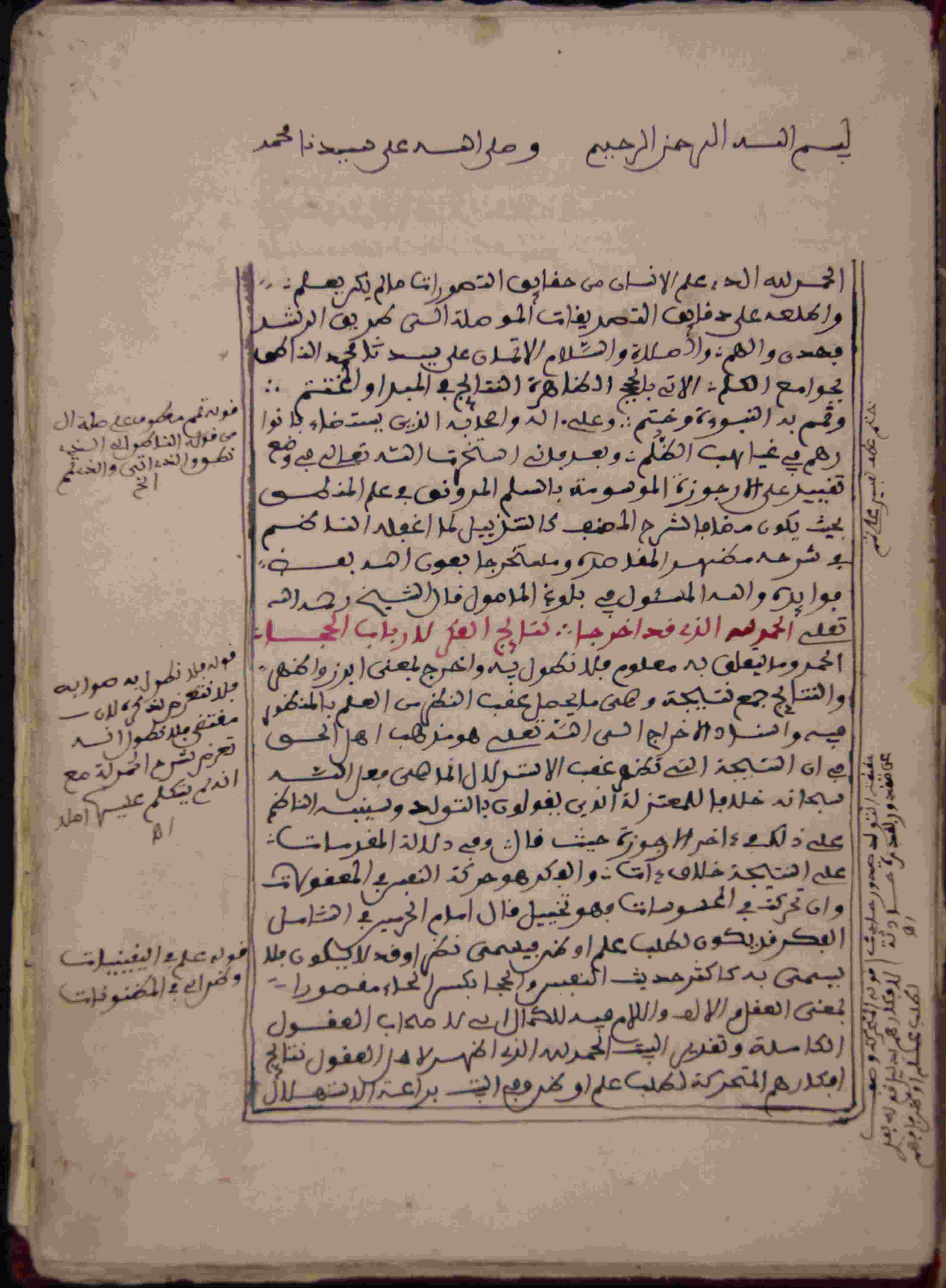 Description: أوله : " الحمد لله الذي علم الإنسان من حقائق التصورات مالم يكن يعلم وأطلعه على دقائق التصريفات الموصلة إلى طريق الرشد فهدى وألهم..."/آخره : " يجعل بتمامه موضوعا للكبرى نبه عليه بعض الفضال، من شرح إيساغوجي والله أعلم "، نوع الخط مغربي، غير مجلد، حالة المخطوط جيدة، عليه تعليقات في الحواشي، في آخره لامية ابن الوردي في الحكم، كان الفراغ منه في شهر شوال يوم الجمعة سنة 1320 هـ.، بداية المخطوط في الورقة الأولى، نهاية الحطوط في الورقة 51، المخطوط مرقمن، رقم المخطوط 717 م، مصدر المخطوط : زاوية الشيخ الحسين سيدي خليفة (ميلة).