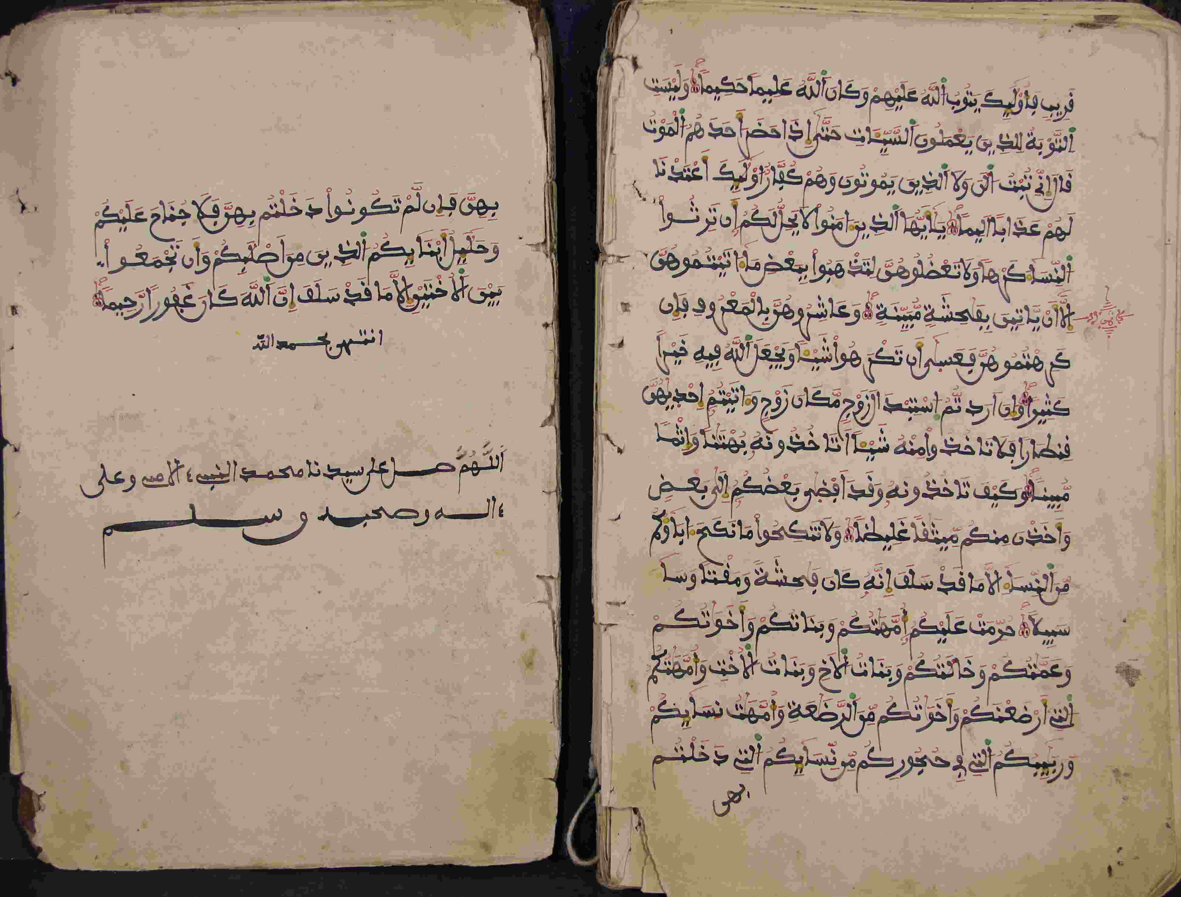 Description: أوله : " سورة الفاتحة..."/آخره : " الآية 23 من سورة النساء"، نوع الخط مغربي، التجليد مزخرف، حالة المخطوط حسنة، بداية المخطوط في الورقة الثانية، نهاية المخطوط في الورقة 35، المخطوط مرقمن، رقم المخطوط 712 م، مصدر المخطوط : زاوية الشيخ الحسين سيدي خليفة (ميلة).