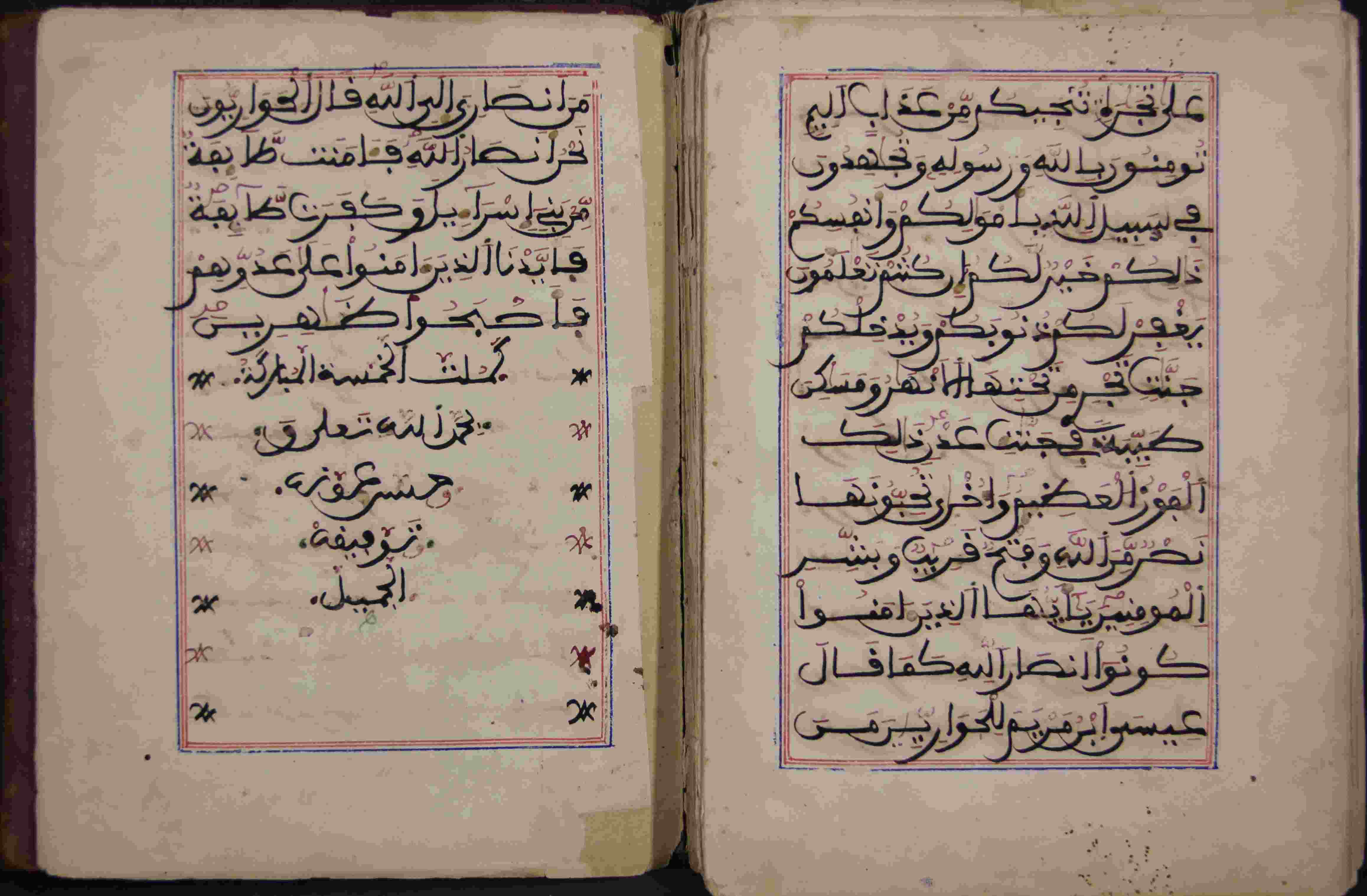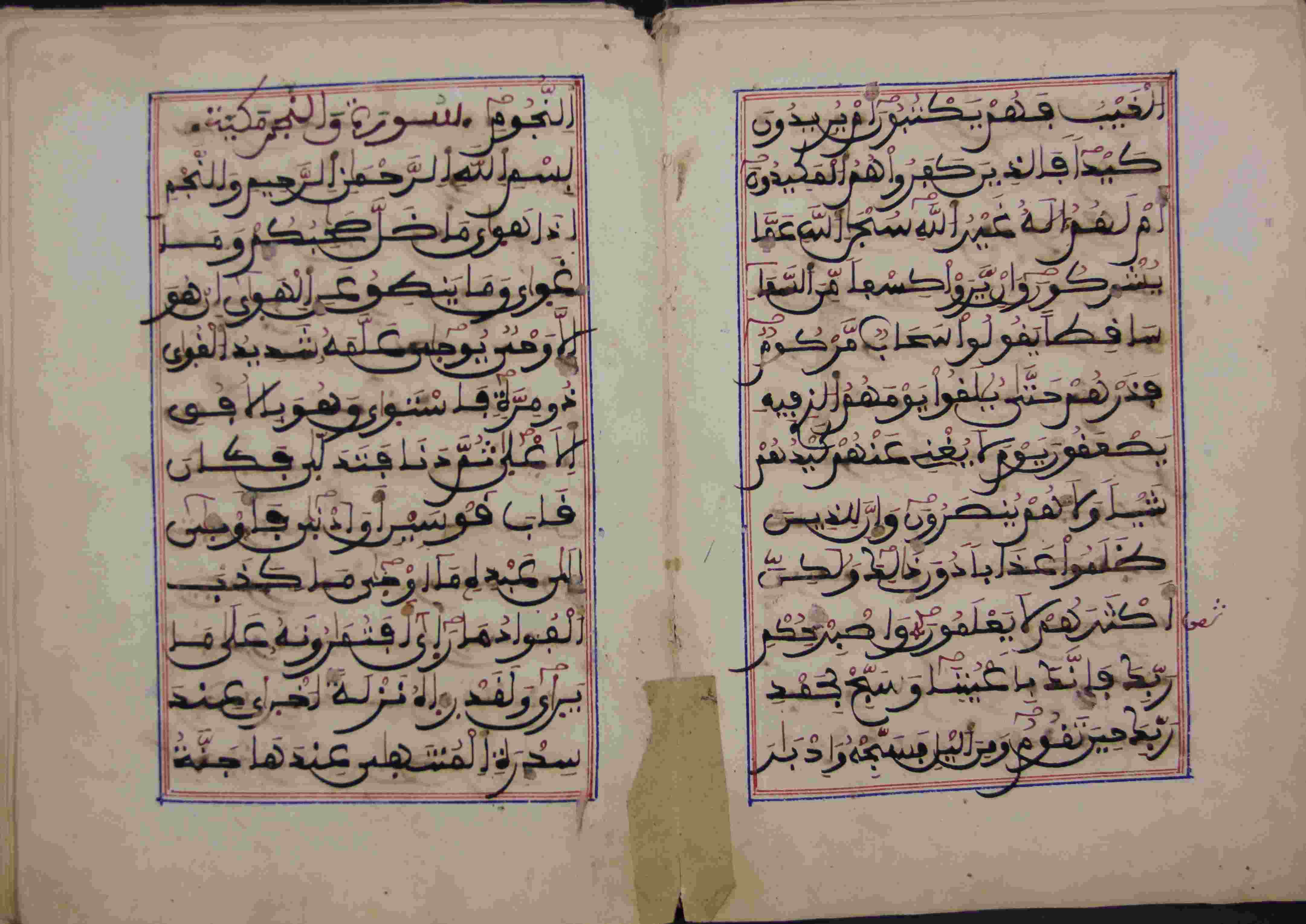 | Description: | أوله : " سورة الأحقاف..."/آخره : " سورة الصف "، نوع الخط مغربي، التجليد مزخرف، حالة المخطوط جيدة، بداية المخطوط في الورقة الثالثة، نهاية المخطوط في الورقة 55، المخطوط مرقمن، رقم المخطوط 714 م، مصدر المخطوط : زاوية الشيخ الحسين سيدي خليفة (ميلة). |