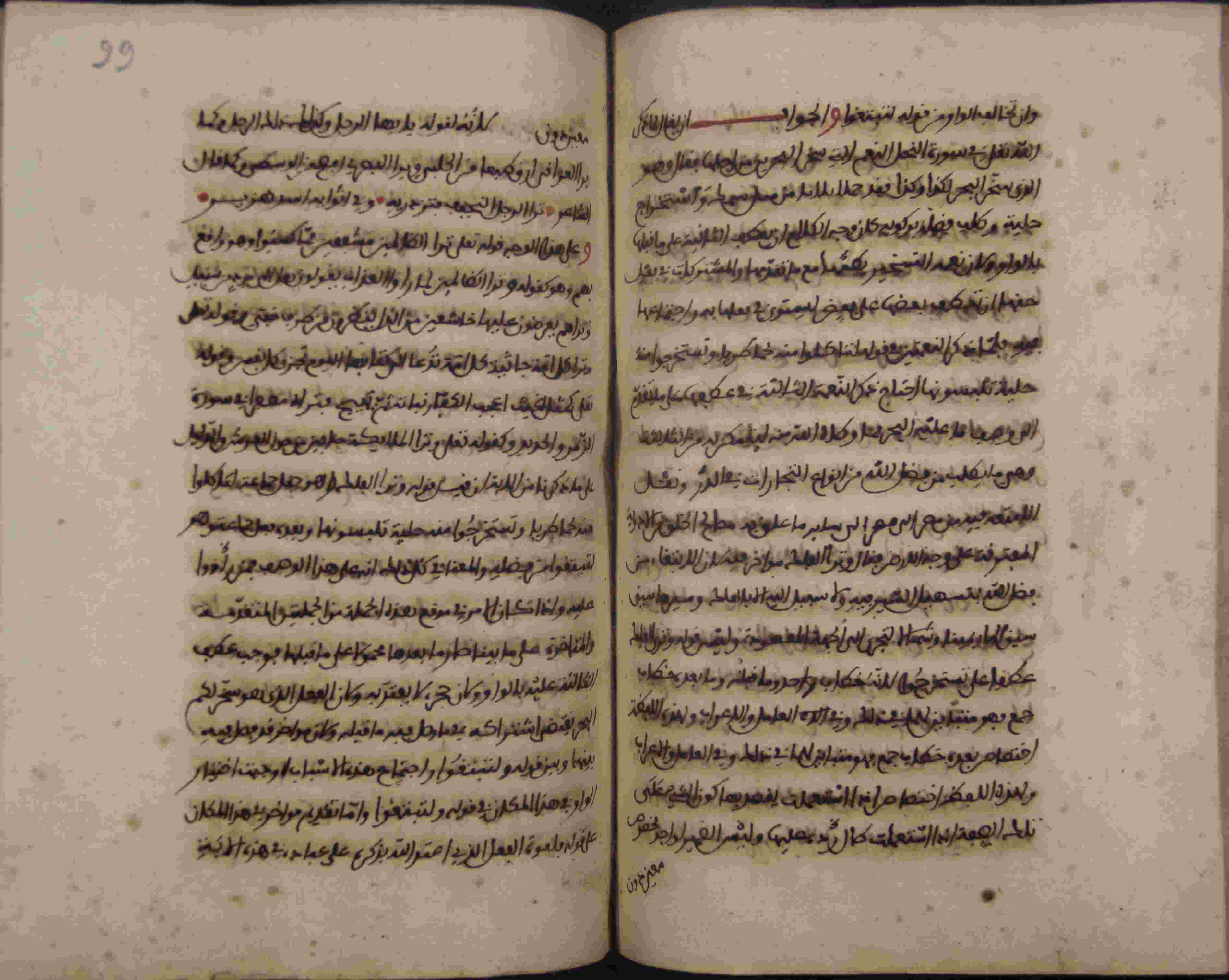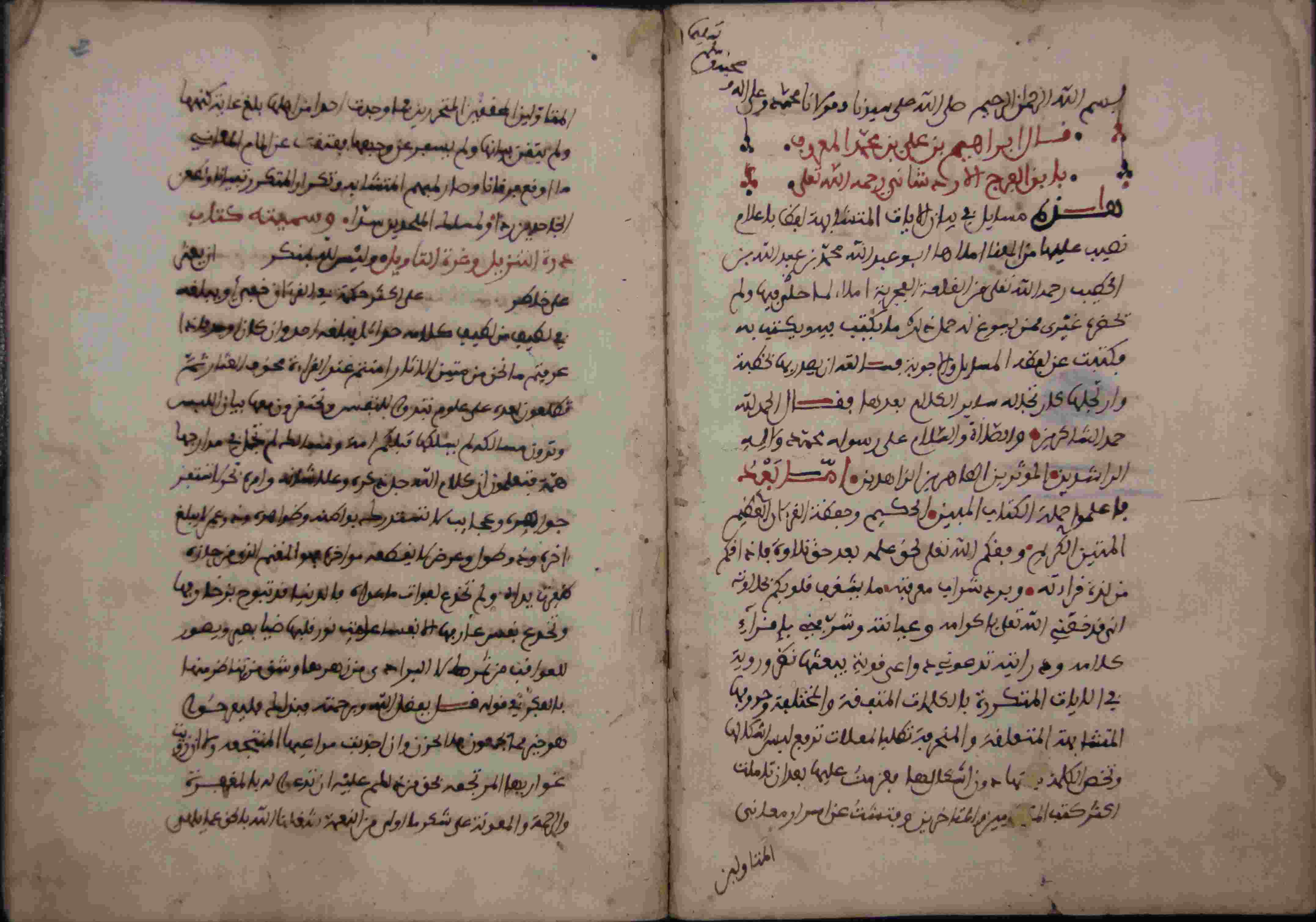 Description: أوله : " بسم الله الرحمان الرحيم صلى الله على سيدنا محمد وآله وصحبه وسلم تسليما هذه مسائل في بيان الآيات المتشابهة لفظ بإعلام..."/ آخره : " إلا الذين آمنوا وعملوا الصالحات أن خلقناهم في أحسن صورة "، نوع الخط مغربي، التجليد مزخرف، حالة المخطوط حسنة، مبتور في آخره، بداية المخطوط في الورقة الثالثة، نهاية المخطوط في الورقة 200، المخطوط مرقمن، رقم المخطوط 48 م، مصدر المخطوط : مكتبة الشيخ نعيم النعيمي ؛ المراجع والمصادر : معجم المطبوعات (1/ 424) الأعلام خير الدين الزركلي (14/ 75).