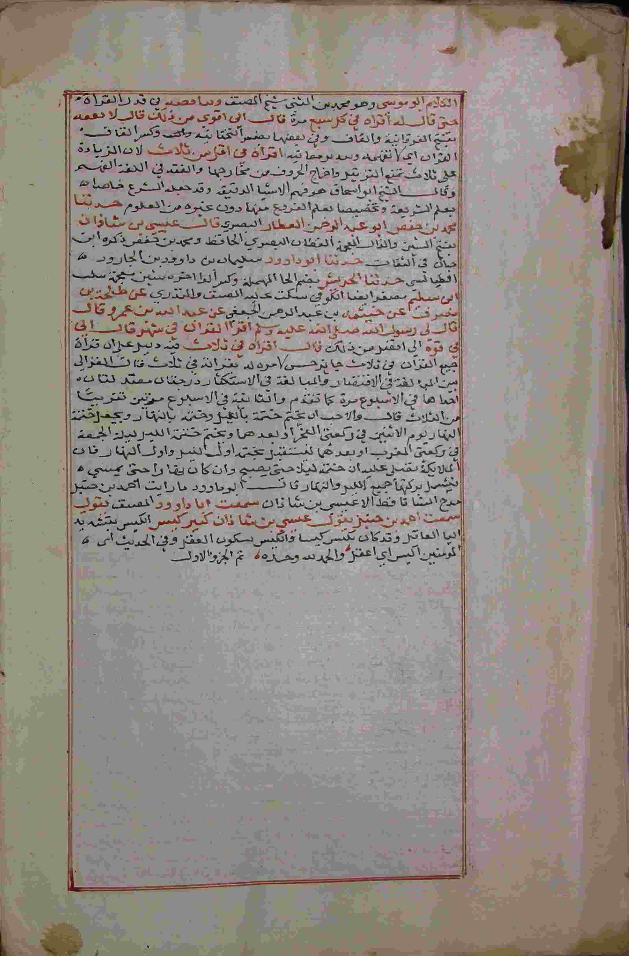 Description: أوله : " أما بعد فهذه نبذة مهمة في شرح سنن أبي داود رحمه الله اقتصر فيها على عيون الكلام..."/آخره : " والكيس سكون العقل وفي الحديث أن المؤمنين أكيس أي أعقل"، نوع الخط مشرقي، التجليد مزخرف، حالة المخطوط جيدة، عليه آثار الرطوبة، فيه تعليقات في الحواشي، مكتوب في إطار ملون، بداية المخطوط في الورقة الثانية، نهاية المخطوط في الورقة 366، المخطوط مرقمن، رقم المخطوط 119 م، مصدر المخطوط : مكتبة الشيخ نعيم النعيمي.