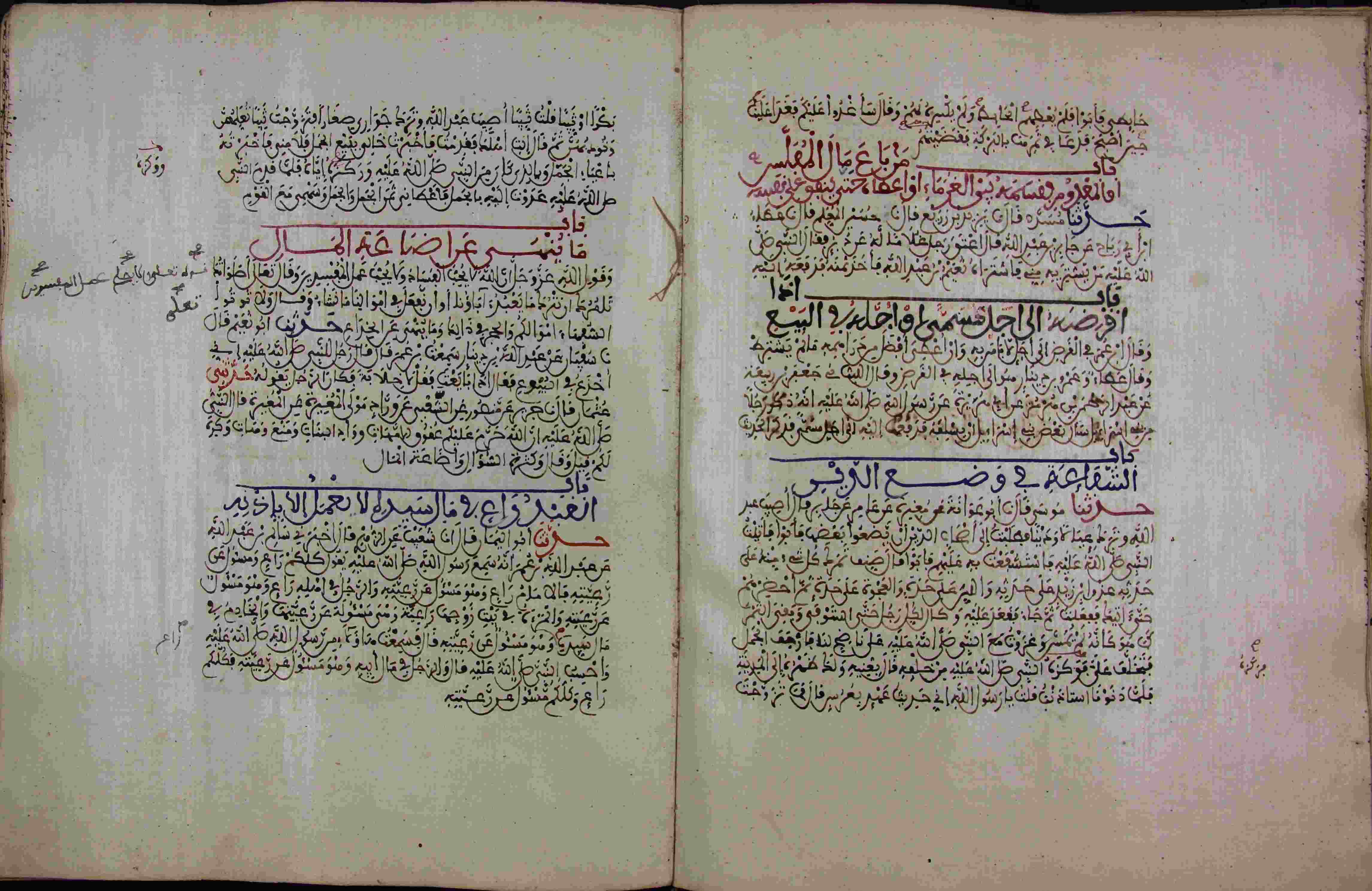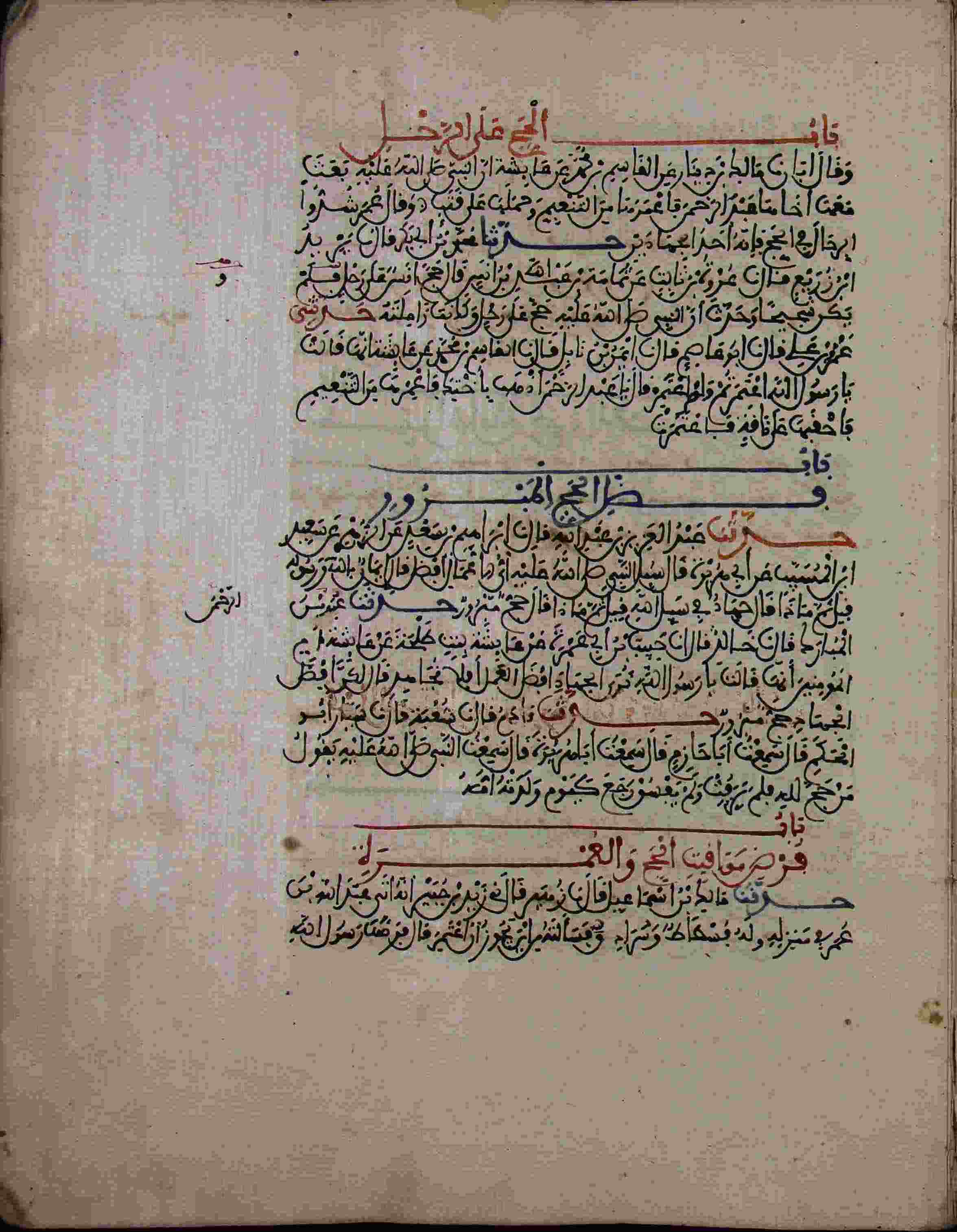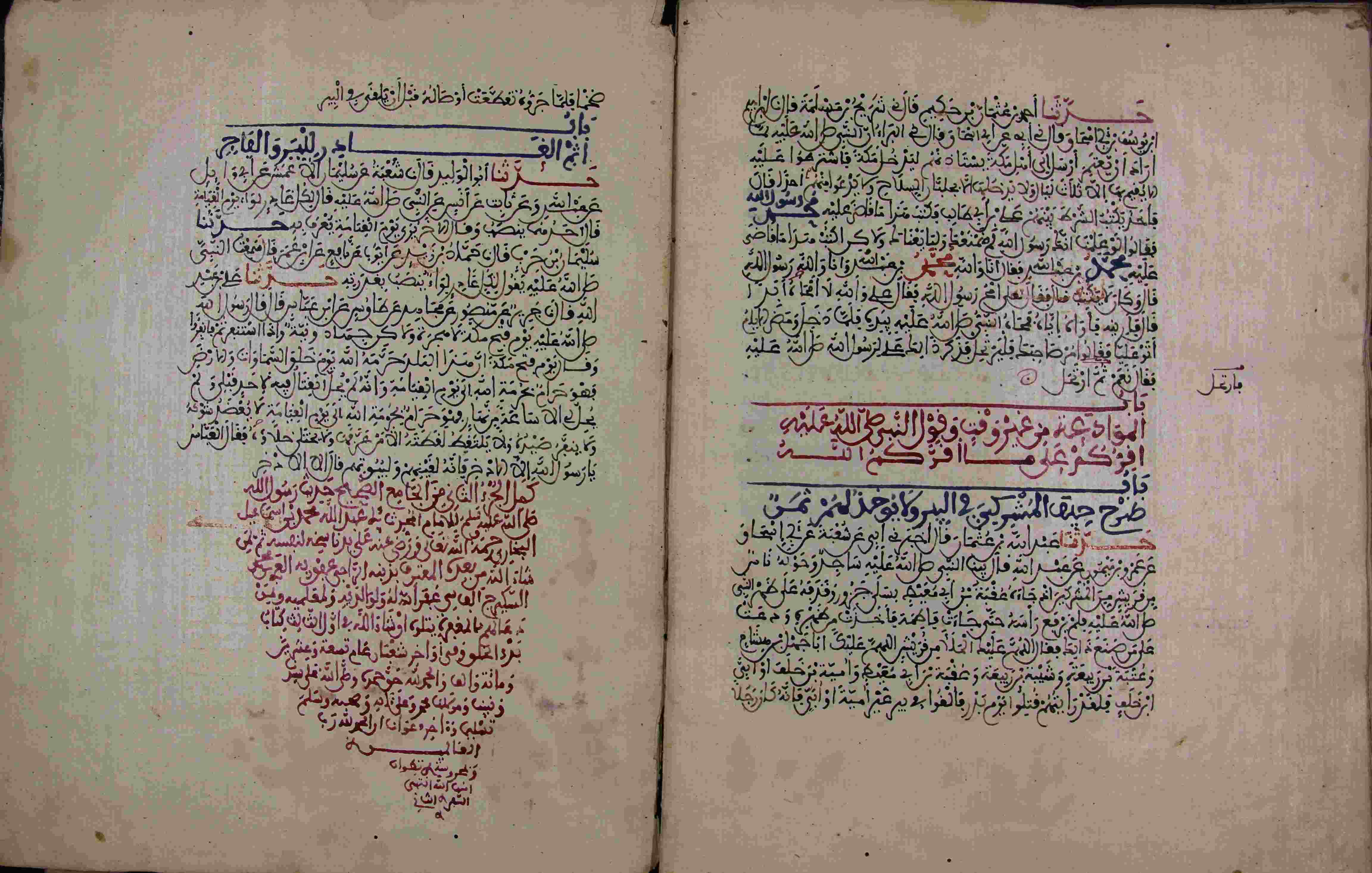 | Description: | أوله : " وقال أبان مالك بن دينار عن القاسم بن محمد عن عائشة أن النبي صلى الله عليه وسلم..."/آخره : " فقال العباس يا رسول الله إلا الآخر فإنه لقيناهم ولبيوتهم قال إلا الآخر "، نوع الخط مغربي، التجليد مزخرف، حالة المخطوط حسنة، به تعليقات في الحواشي، بداية المخطوط في الورقة الثامنة، نهاية المخطوط في الورقة 229، المخطوط مرقمن، رقم المخطوط 136 م، مصدر المخطوط : مكتبة الشيخ نعيم النعيمي. |