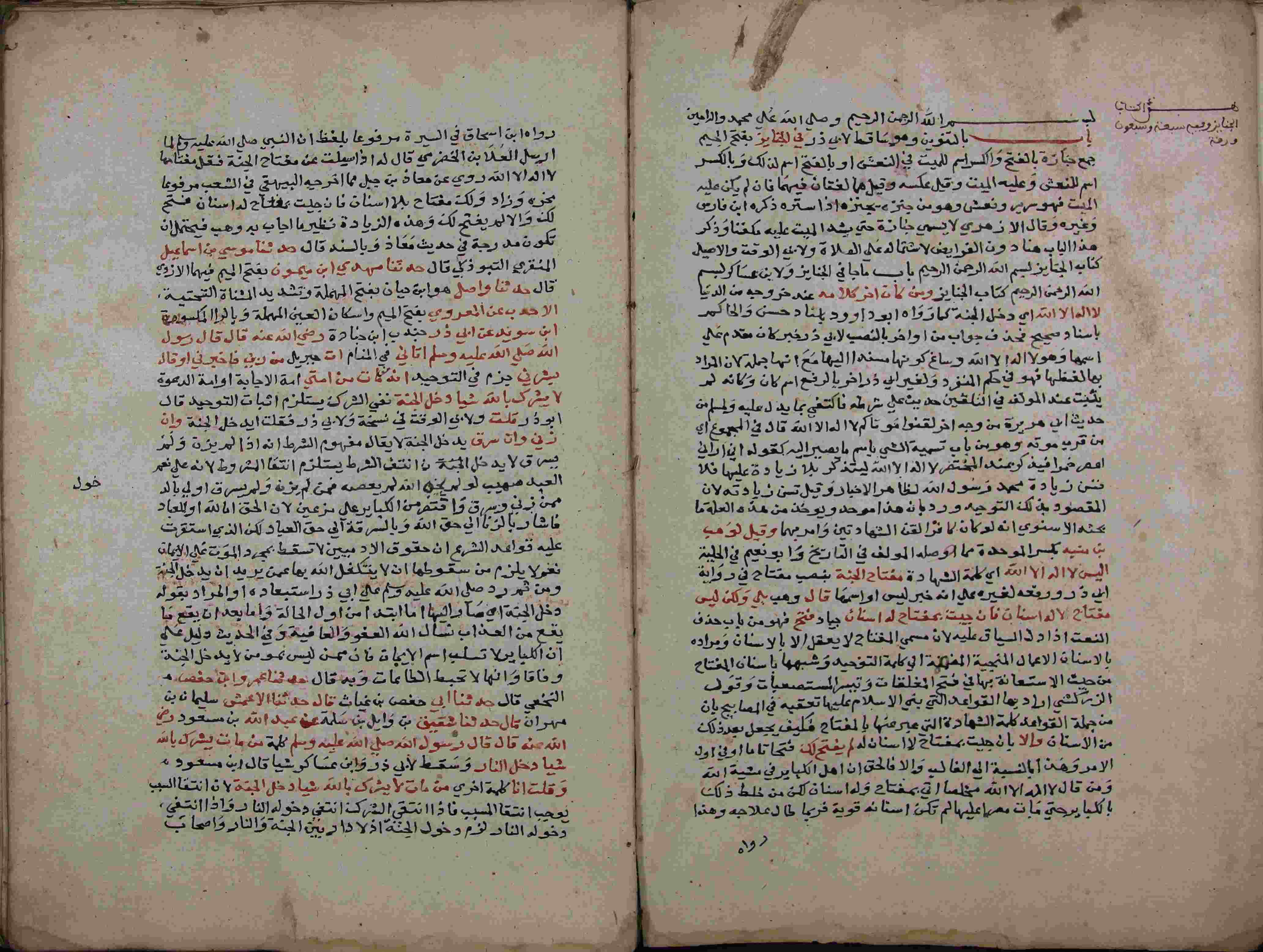 Description: أوله : " باب بالتنوين وهو ساقط لأبي ذر في الجنائز بفتح الجيم جمع جنازة..."/آخره : " فيه توكيد والإضافة فيه "، نوع الخط مشرقي، التجليد مزخرف، حالة المخطوط حسنة، عليه آثار الرطوبة، عليه تعليقات بالهامش، بداية المخطوط في الورقة 9، نهاية المخطوط في الورقة 294، المخطوط مرقمن، رقم المخطوط 140 م، مصدر المخطوط : مكتبة الشيخ نعيم النعيمي ؛ المراجع والمصادر : الأعلام خير الدين الزركلي (2/ 65).