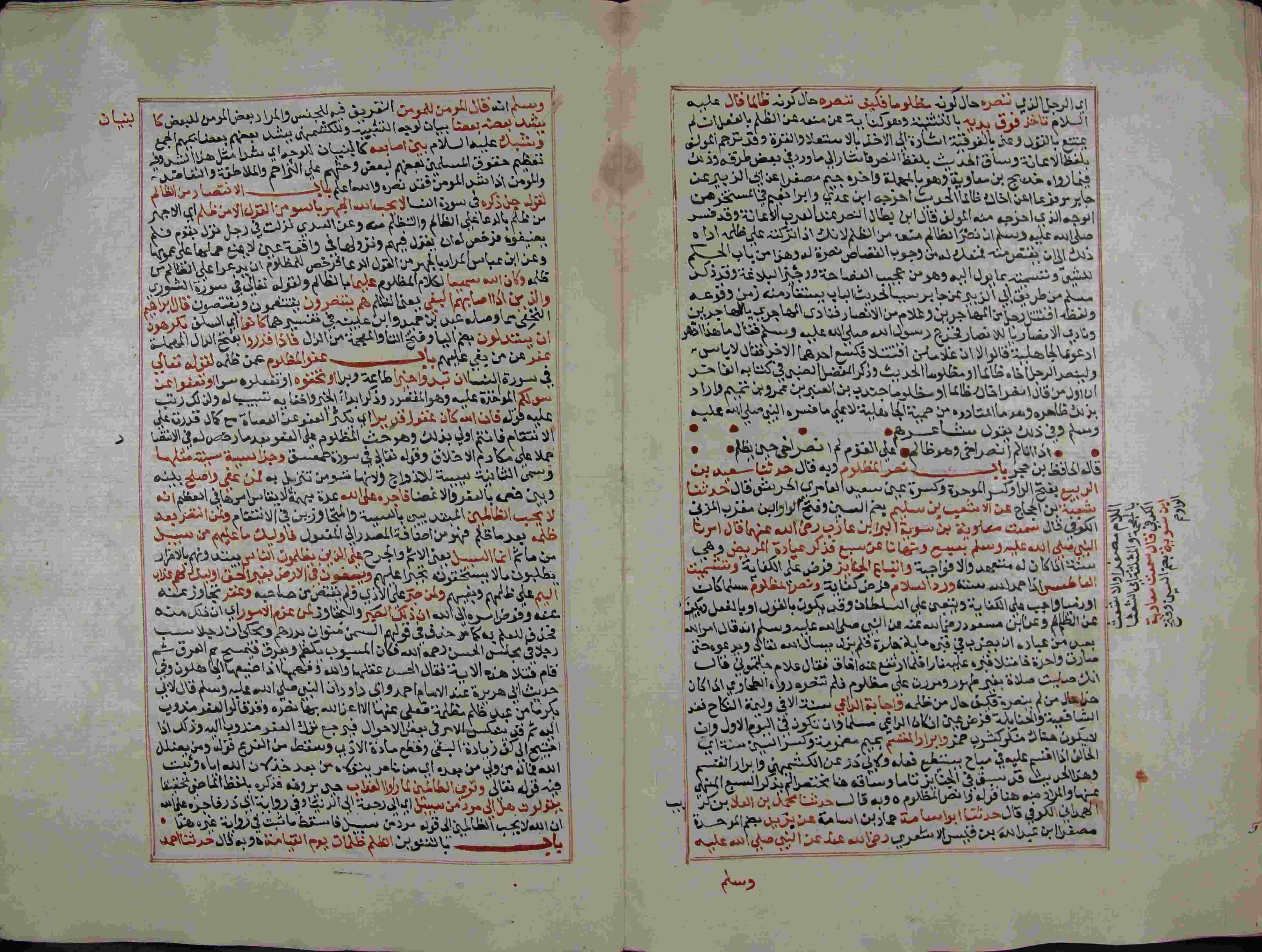 | Description: | أوله : " وبه ثقتي سقطت البسملة لأبي ذر وثبتت لغيره باب العمرة بضم العين مع ضم الميم واسكانها بفتح العين..."/آخره : " هذا آخر الجزء الثاني من تجزية خمسة "، نوع الخط مشرقي، التجليد مزخرف، حالة المخطوط متوسطة، عليه آثار الرطوبة، عليه تعليقات بالهامش، مكتوب في إطار ملون، بداية المخطوط في الورقة الرابعة، نهاية المخطوط في الورقة 298، المخطوط مرقمن، رقم المخطوط 148 م، مصدر المخطوط : مكتبة الشيخ نعيم النعيمي ؛ المراجع والمصادر : الأعلام خير الدين الزركلي (2/ 65). |