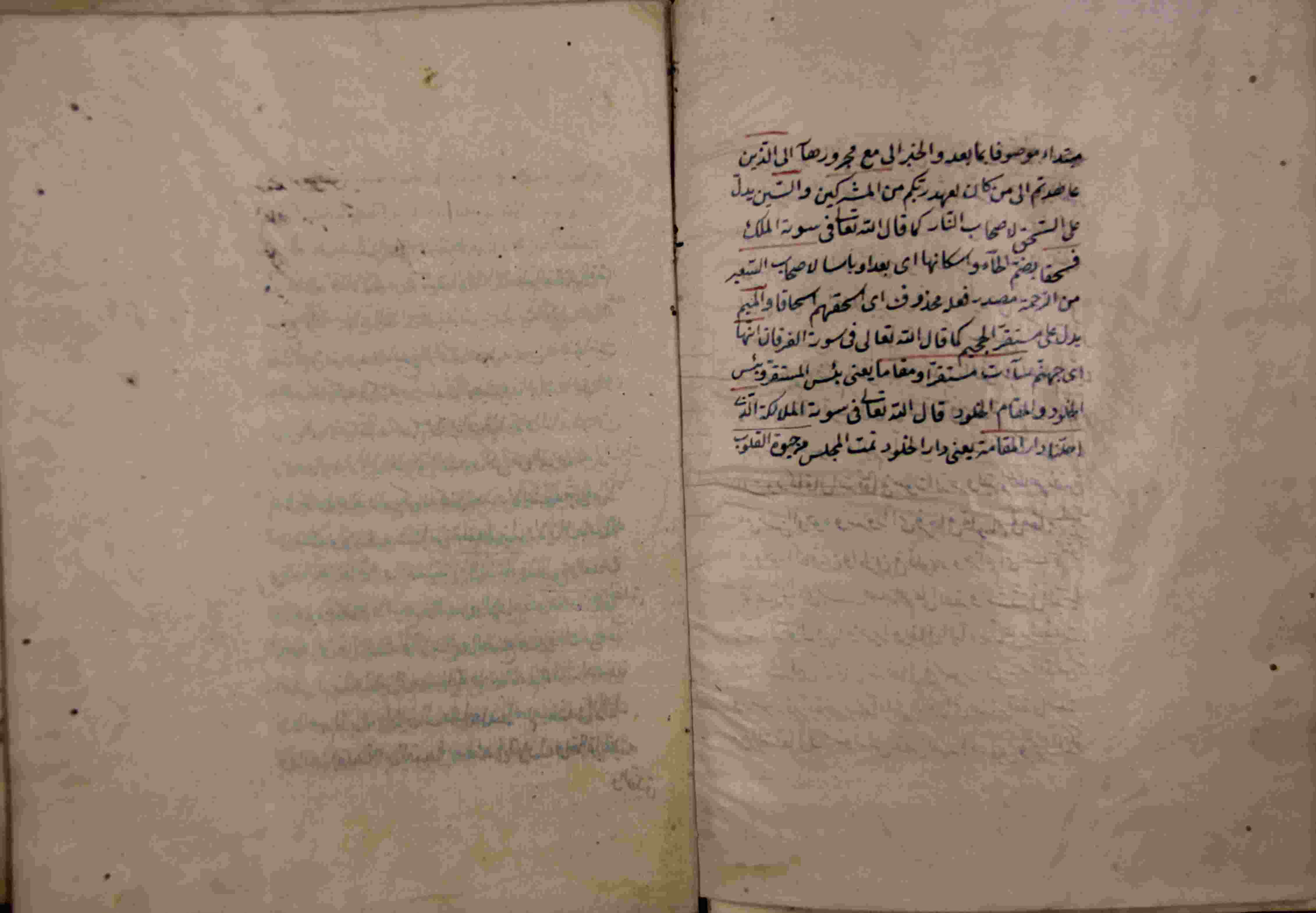 Description: أوله : " قال الله تعالى في سورة النمل قال سننظر أصدقت فيما أخبرتنا به..."/آخره : " يعني دار الخلود تمت المجلس من حياة القلوب "، نوع الخط مشرقي، التجليد عادي، حالة المخطوط متوسطة، عدد الأوراق الخاصة به 7 أوراق، بداية المخطوط في الورقة 221، نهاية المخطوط في الورقة 227، المخطوط مرقمن، رقم المخطوط 5.7 / 164 م، مصدر المخطوط : مكتبة الشيخ نعيم النعيمي.