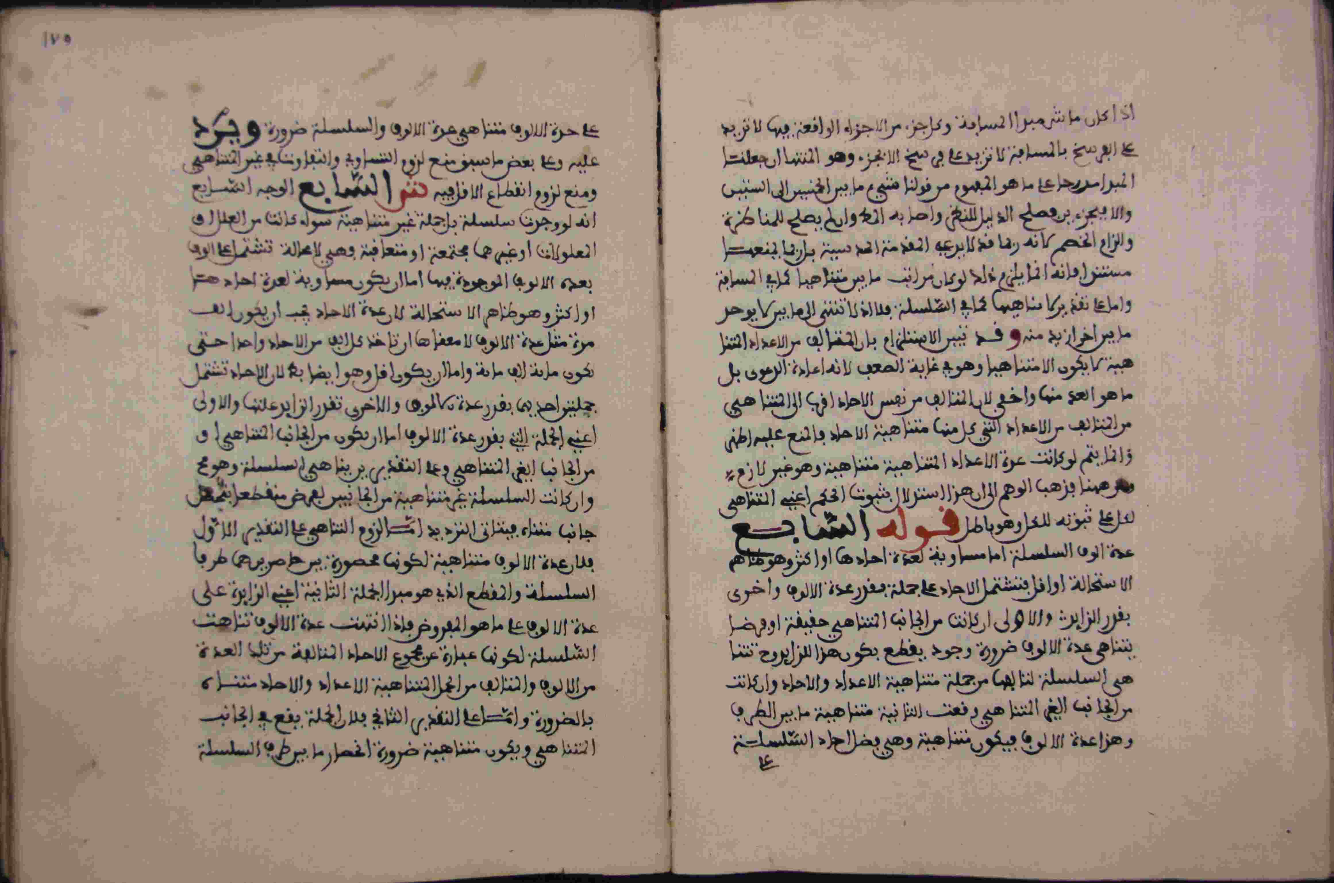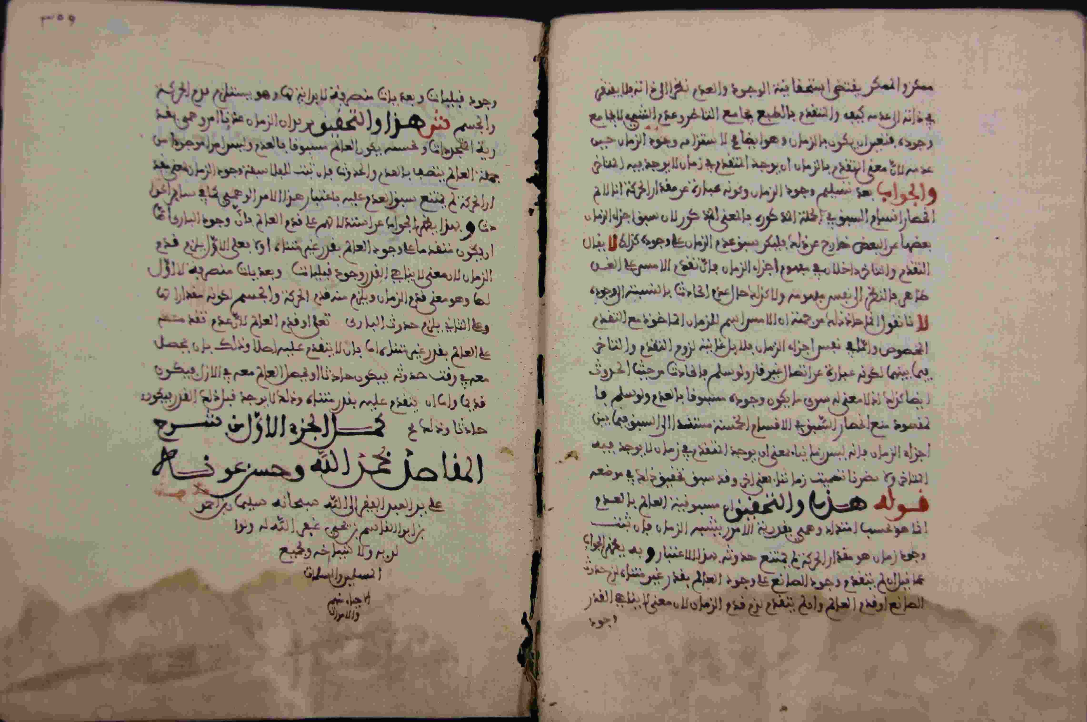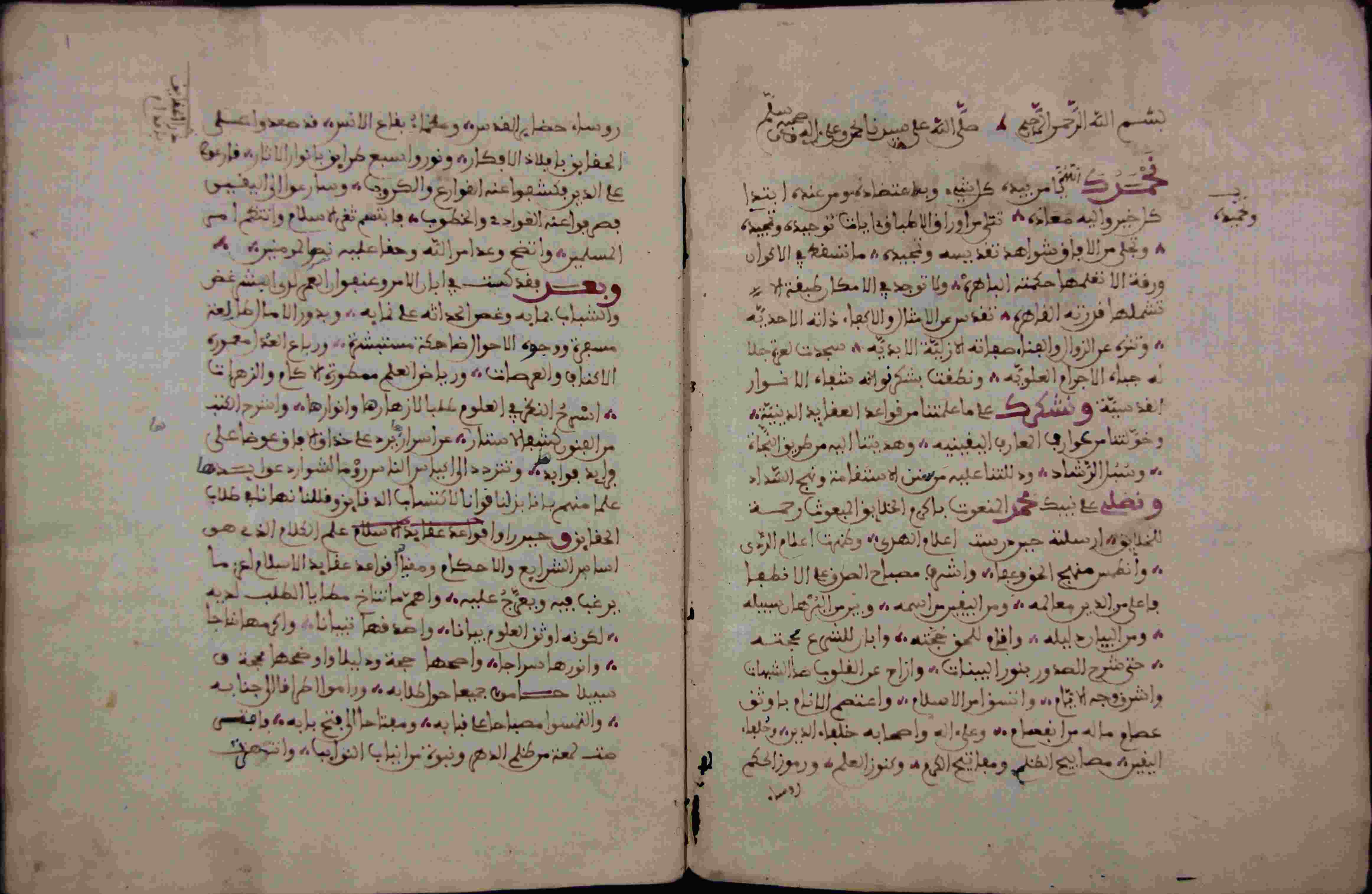 | Description: | أوله : " نحمدك الله يا من بيده كل شيء وباعتضاده ومن غبده ابتدا كل خير وإليه معاده تتلى من أوراق الأطباق أيات توحيده وتمجيده..."/آخره : " كمل الجزء الأول من شرح المقاصد بحمد الله وحسن عونه على يد العبد الفقير إلى الله سبحانه سليمان بن أحمد بن أبي القاسم بن يحي غفر الله له ولوالديه ولأشياخه ولجميع المسلمين والمسلمات الأحياء منهم والأموات "، نوع الخط مغربي مقروء، التجليد عادي، حالة المخطوط حسنة، في أوله فهرس موضوعات، الأصل والشرح للمؤلف نفسه، نسخ يوم الخميس عند الزوال 28 جمادى 1149هـ.، المخطوط مرقمن، رقم المخطوط 180 م، مصدر المخطوط : مكتبة الشيوخ ؛ المراجع والمصادر : الأعلام خير الدين الزركلي (16/ 45). |