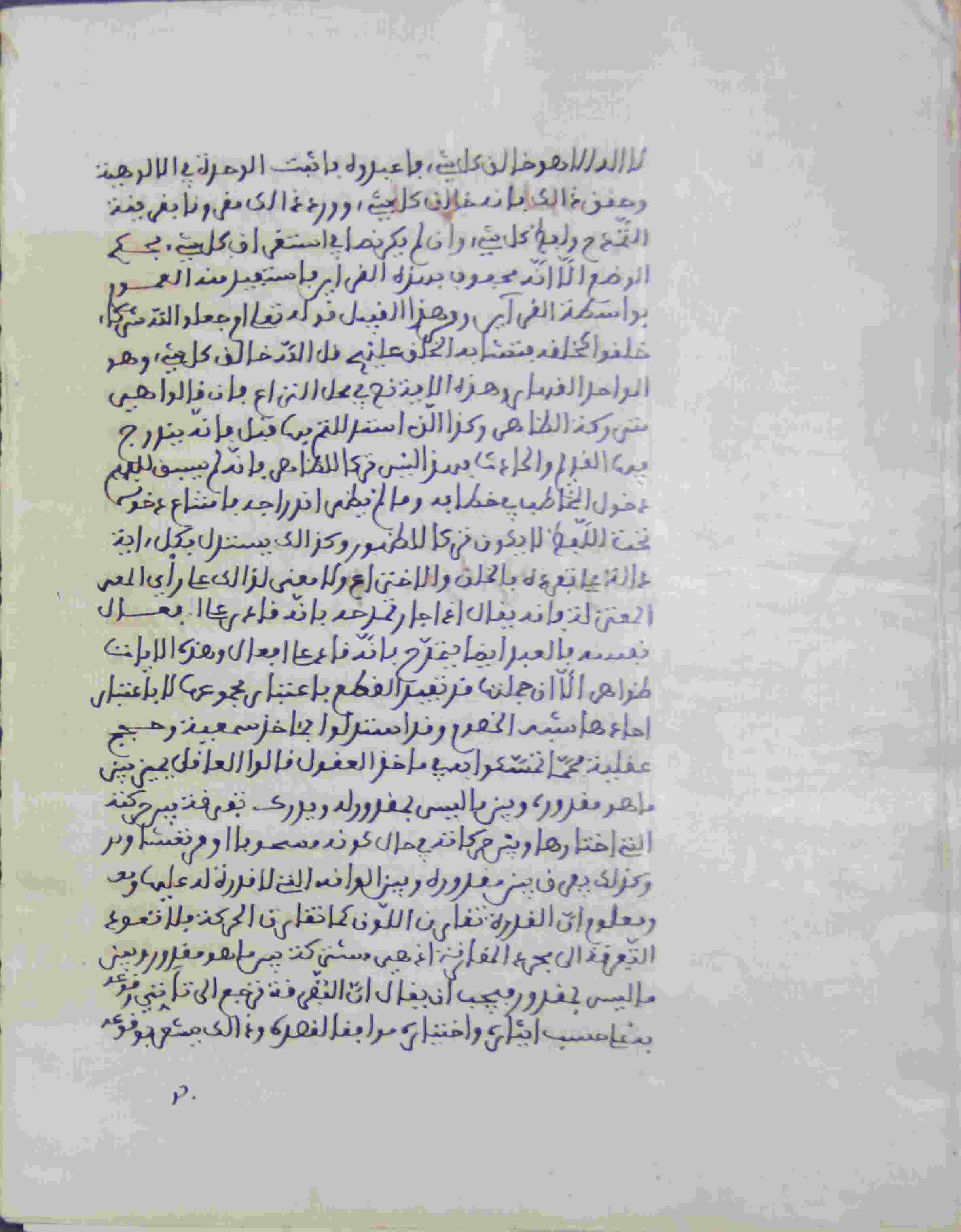 | Description: | أوله : " الحمد لله المبدىء المعيد الفعال لما يريد هادي من يشاء من العبيد..."/آخره : " فيجب أن يقال أن التفرقة ترجع إلى تأتي وقوعه على حسب إثار واختيار مواقفا لقصره وذلك يشعر بوقوعه "، نوع الخط مغربي، التجليد غير مجلد، حالة المخطوط جيدة، يقابل على النسخ الناقصة في الموضوع لعله يستكمل مع إحداها، به تعليقات في الهوامش، عليه آثار الرطوبة، به سقط في آخره، بداية المخطوط في الورقة الرابعة، نهاية المخطوط في الورقة 103، المخطوط مرقمن، رقم المخطوط 195 م، مصدر المخطوط : مكتبة الشيخ نعيم النعيمي ؛ المراجع والمصادر : الأعلام خير الدين الزركلي (15/ 426). |