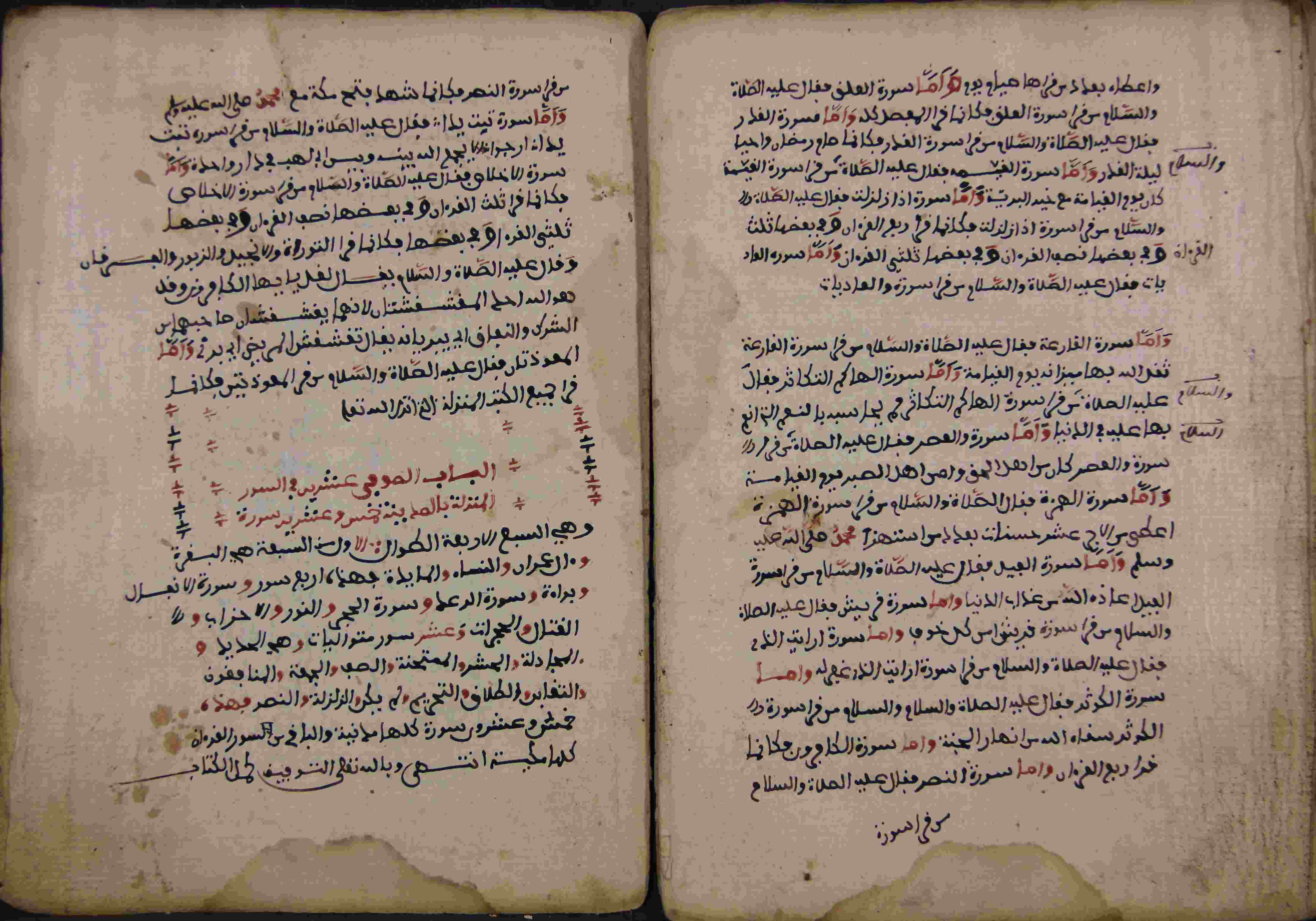 Description: أوله : " فقال الكلام في القرآن في عشرين باب الباب الأول فيما يتعلق بنزوله..."/آخره : " فهذه خمس وعشرون سورة كلها مدنية والباقي من سور القرآن كلها مكية "، نوع الخط مغربي، منزوع الغلاف، حالة المخطوط متوسطة، بعض التعاليق والشروح على الهامش، مكتوب في إطار ملون، الأوراق غير مثبتة جميعا، عليه آثار الرطوبة، بداية المخطوط في الورقة 40، نهاية المخطوط في الورقة 118، المخطوط مرقمن، رقم المخطوط 2.2 / 201 م، مصدر المخطوط : مكتبة الشيخ نعيم النعيمي.