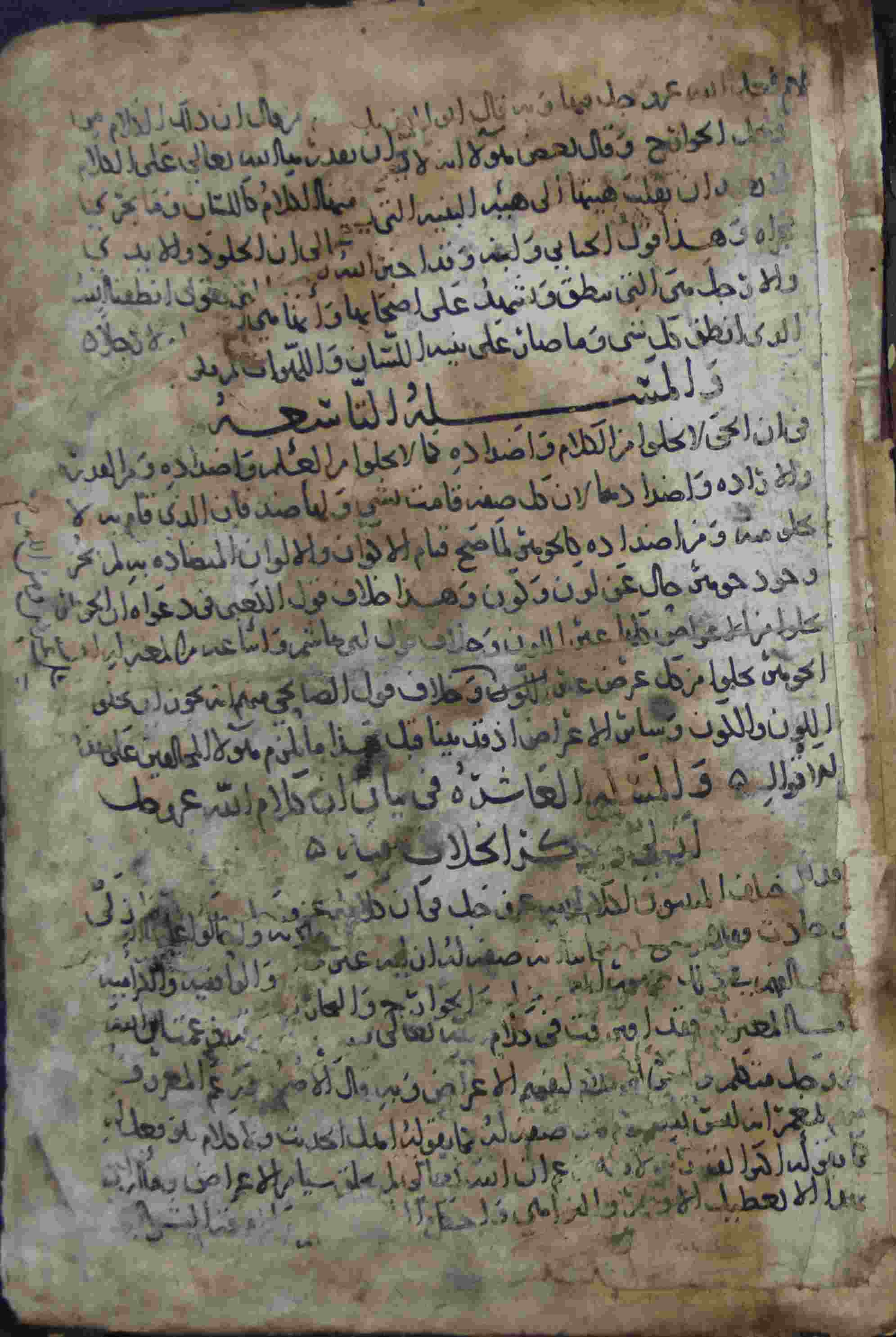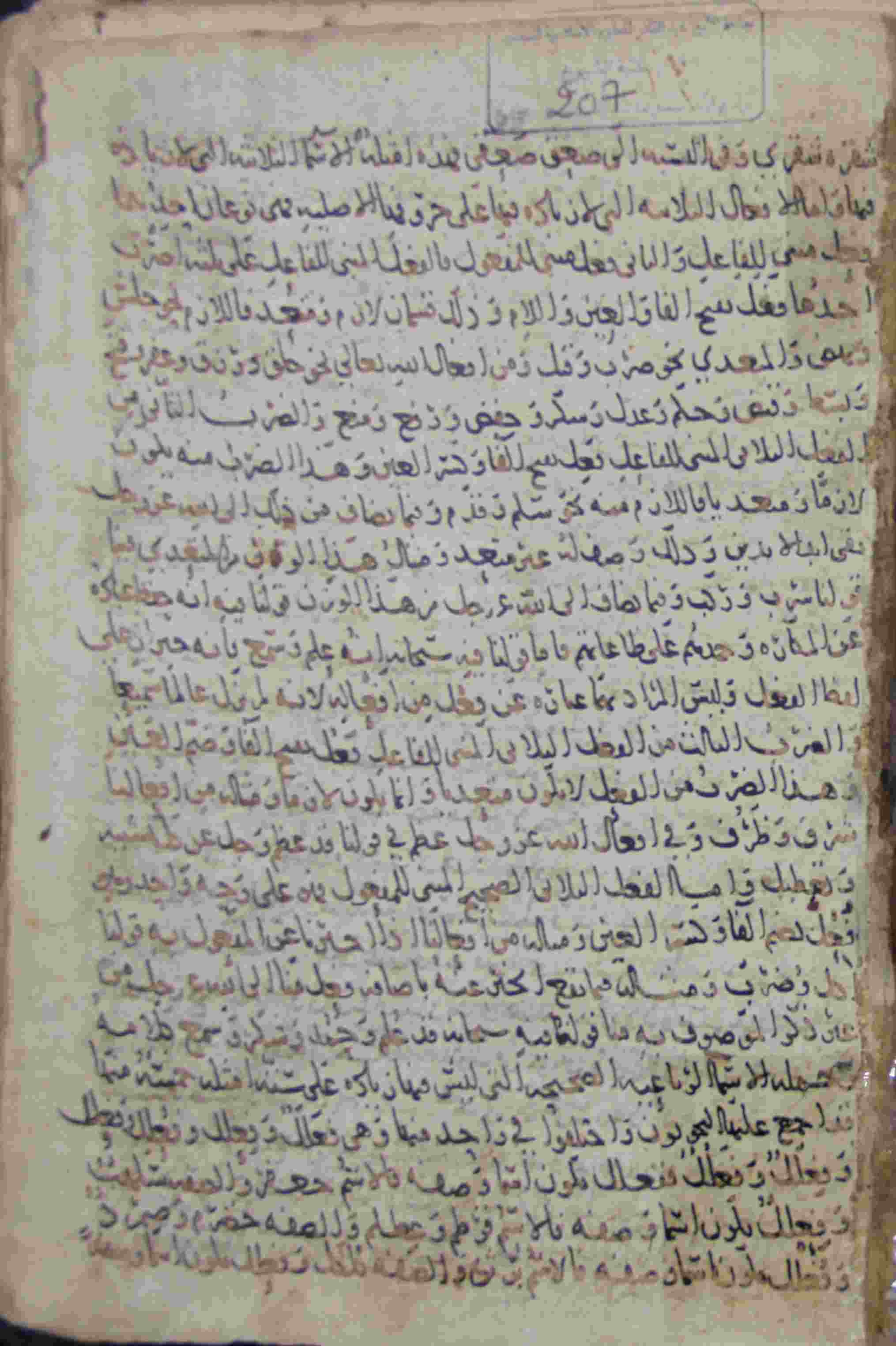Description: أوله : " شقره شقري وفي الشبه إلى صعق صعقي فهذه أمثلة الأسماء الثلاثية..."/آخره : " والمسئلة التاسعة في أن الحي لا يخلوامن الكلام وأضداده... "، نوع الخط مغربي، التجليد عادي، حالة المخطوط متوسطة، مبتور الأول والآخر، عليه آثار الرطوبة، بداية المخطوط في الورقة الأولى، نهاية المخطوط في الورقة 276، المخطوط مرقمن، رقم المخطوط 207 م، مصدر المخطوط : مكتبة الشيخ نعيم النعيمي.