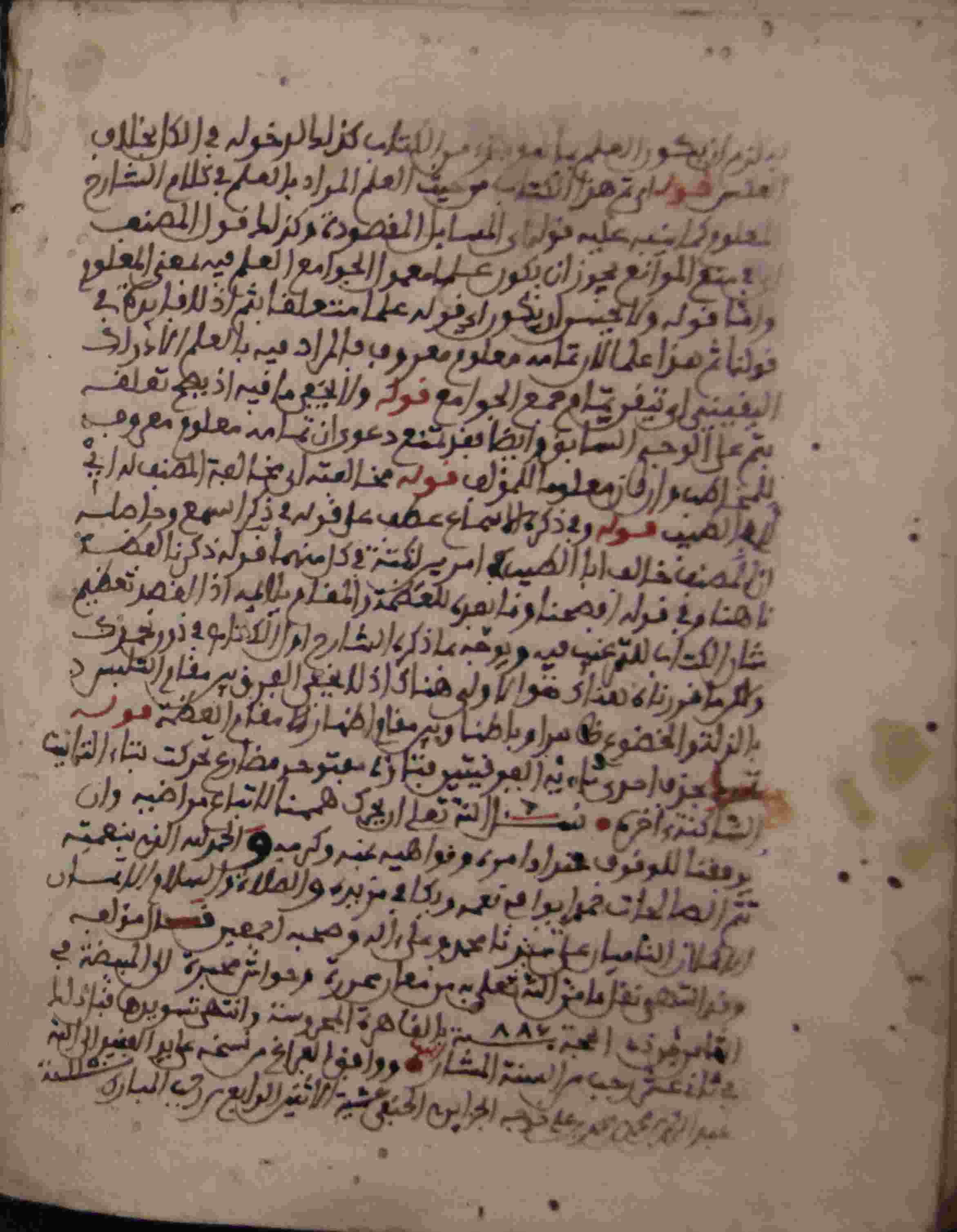 Description: أوله : " الحمد لله على ما منح من الإهتمام لأصول الشريعة وفتح من اجتلاء أسرار قواعدها البديعة..."/آخره : " قال مؤلفه وقد انتهى نقل ما من الله تعالى به "، نوع الخط مغربي، التجليد عادي، حالة المخطوط حسنة، عليه آثار الرطوبة، بعض التعاليق والشروح على الهامش، سنة التأليف 886 هـ.، بداية المخطوط في الورقة الثانية، نهاية المخطوط في الورقة 276، رقم المخطوط 222 م، مصدر المخطوط : مكتبة الشيخ نعيم النعيمي ؛ المراجع والمصادر : معجم المؤلفين (8/ 311).