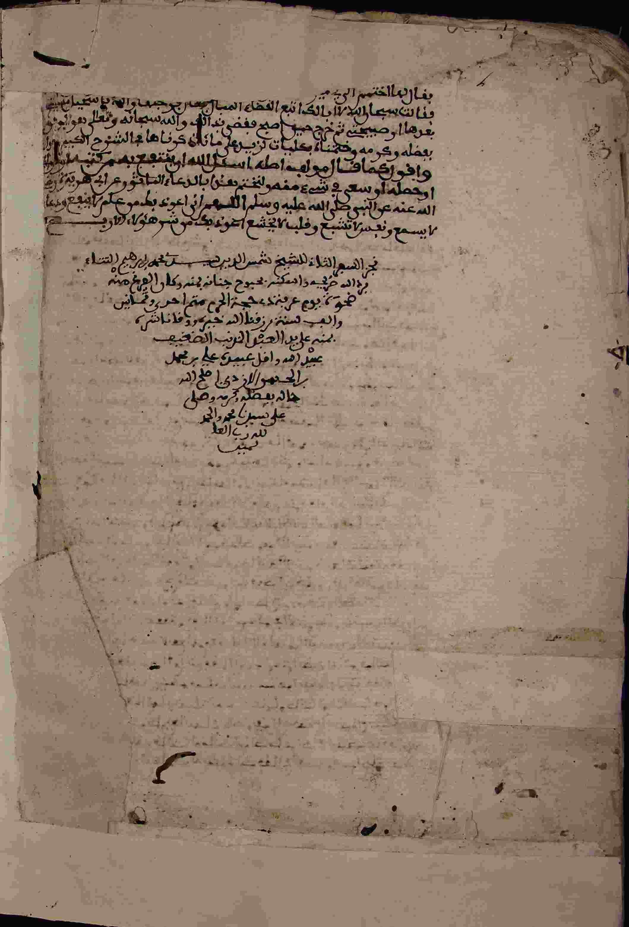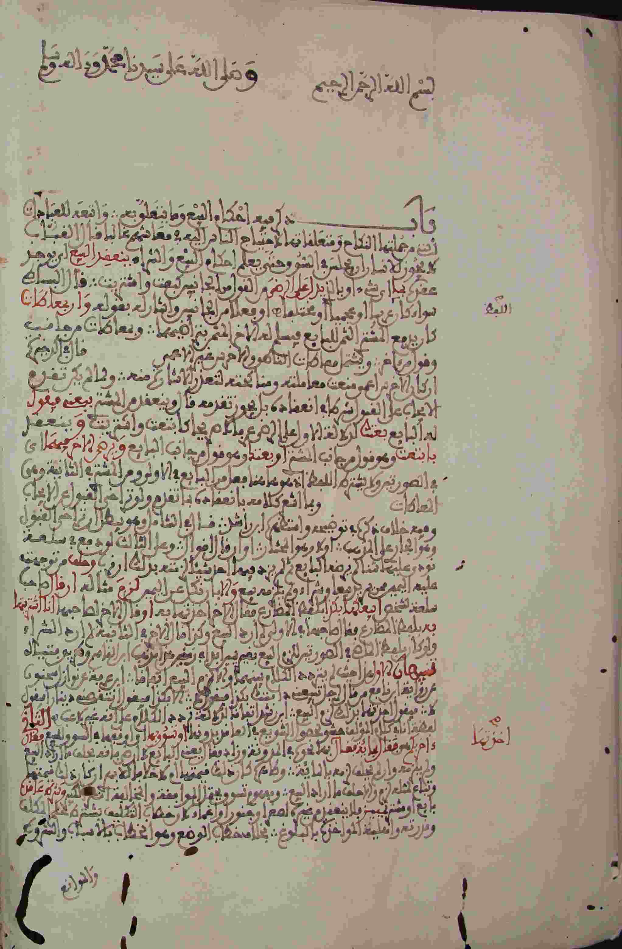 Description: أوله : " باب ذكر فيه أحكام البيع وما يتعلق به وأتباعه بالعبادات التي من جملتها النكاح ومتعلقاته لإحتياج الناس إليه في معاشهم غالبا ..."/آخره : " وكان الفراغ منه ضحوة يوم عرفة ذي الحجة الحرم متمم إحدى وثمانين وألف سنة رزقنا الله خيره ووقانا شره بمنه على يد العبد المذنب الضعيف "، نوع الخط نسخي، التجليد مزخرف ومذهب، حالة المخطوط سيئة، شروح كثيرة على الحواشي، بعض الكلمات مكتوبة بالمداد الأحمر والبني، أثرت فيه الرطوبة وتوجد في بعض المواضع خروم، أثرت فيه الأرضة، المخطوط مرقمن، رقم المخطوط 302 م، مصدر المخطوط : مكتبة الشيوخ ؛ المراجع والمصادر : الأعلام 6/192، سركيس 1625.