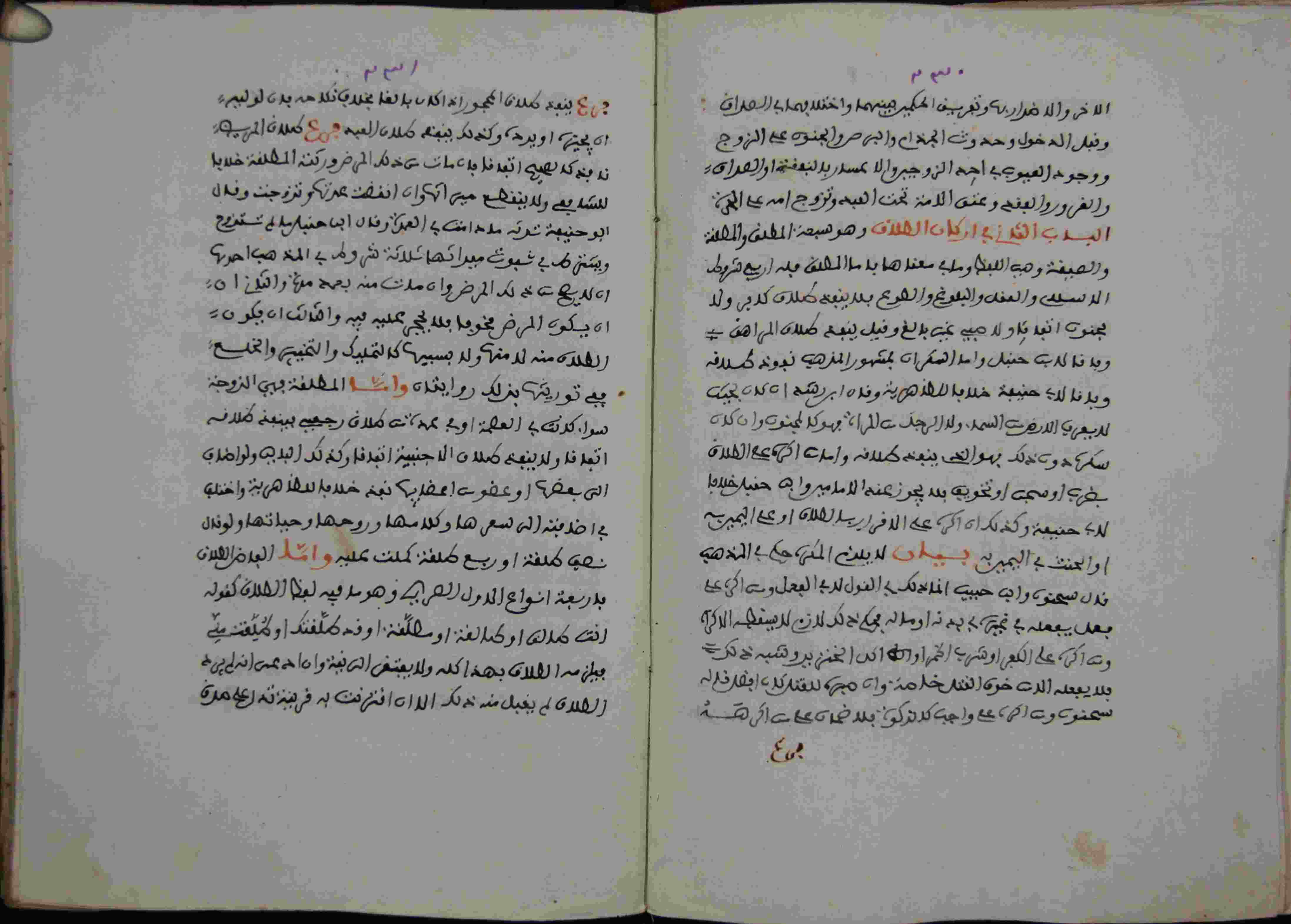 | Description: | أوله : " الحمد لله ذي الجلال الذي عجزت عن إدراك [] عقول العارفين والكمال الذي قصدت عن إحصاء..."/آخره : "...انتهى كتاب الجامع وبتمامه تم جميع الجموع وكان الفراغ من تقييده في يوم الخامس عشر من سفر ثمانية وسبعين وتسعمائة...كمل بحمد الله تعالى وحسن عونه "، نوع الخط مغربي، التجليد مزخرف، حالة المخطوط حسنة، المخطوط مرقمن، رقم المخطوط 312 م، مصدر المخطوط : مكتبة الشيوخ ؛ المراجع والمصادر : معجم المؤلفين (9/ 11). |