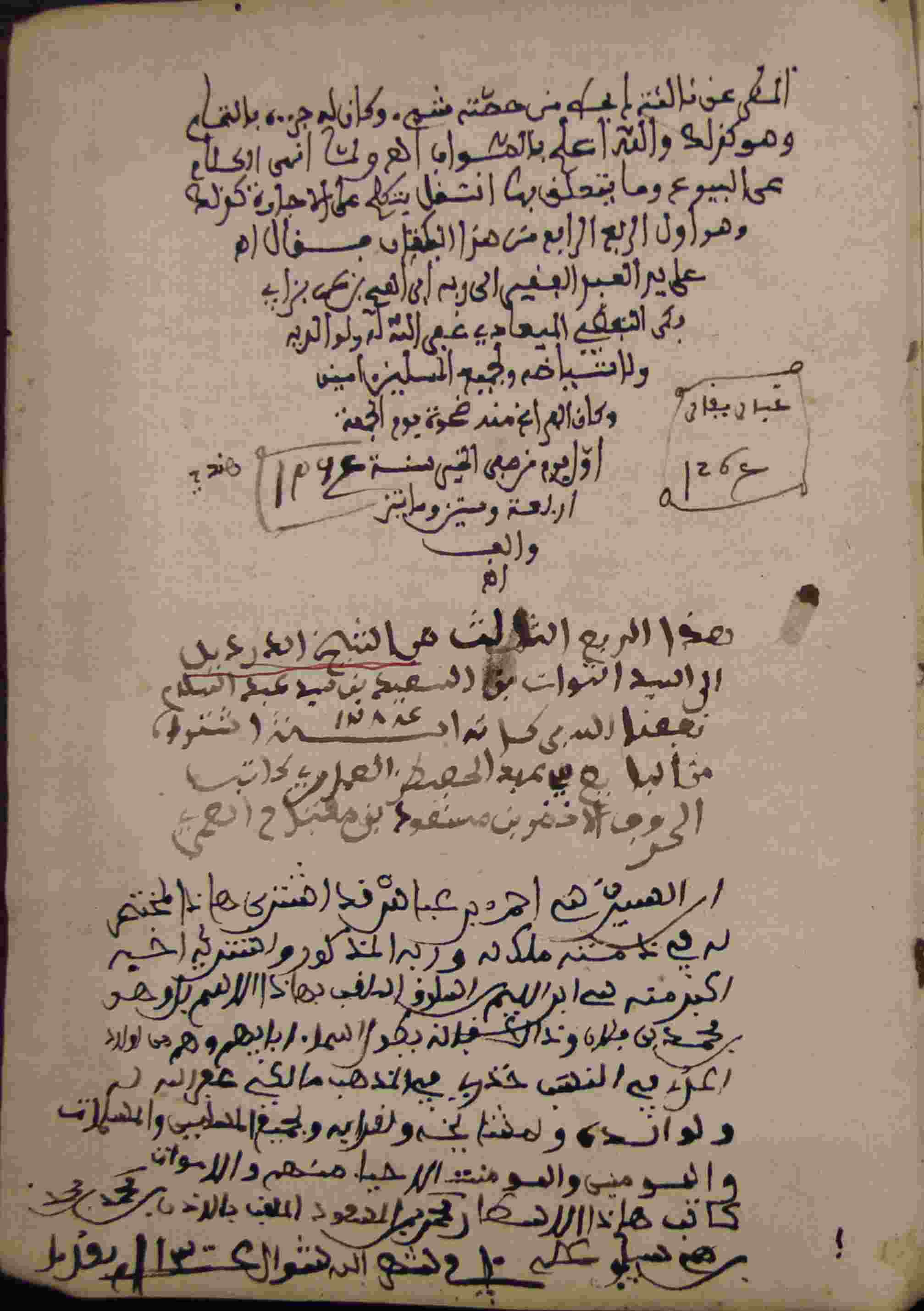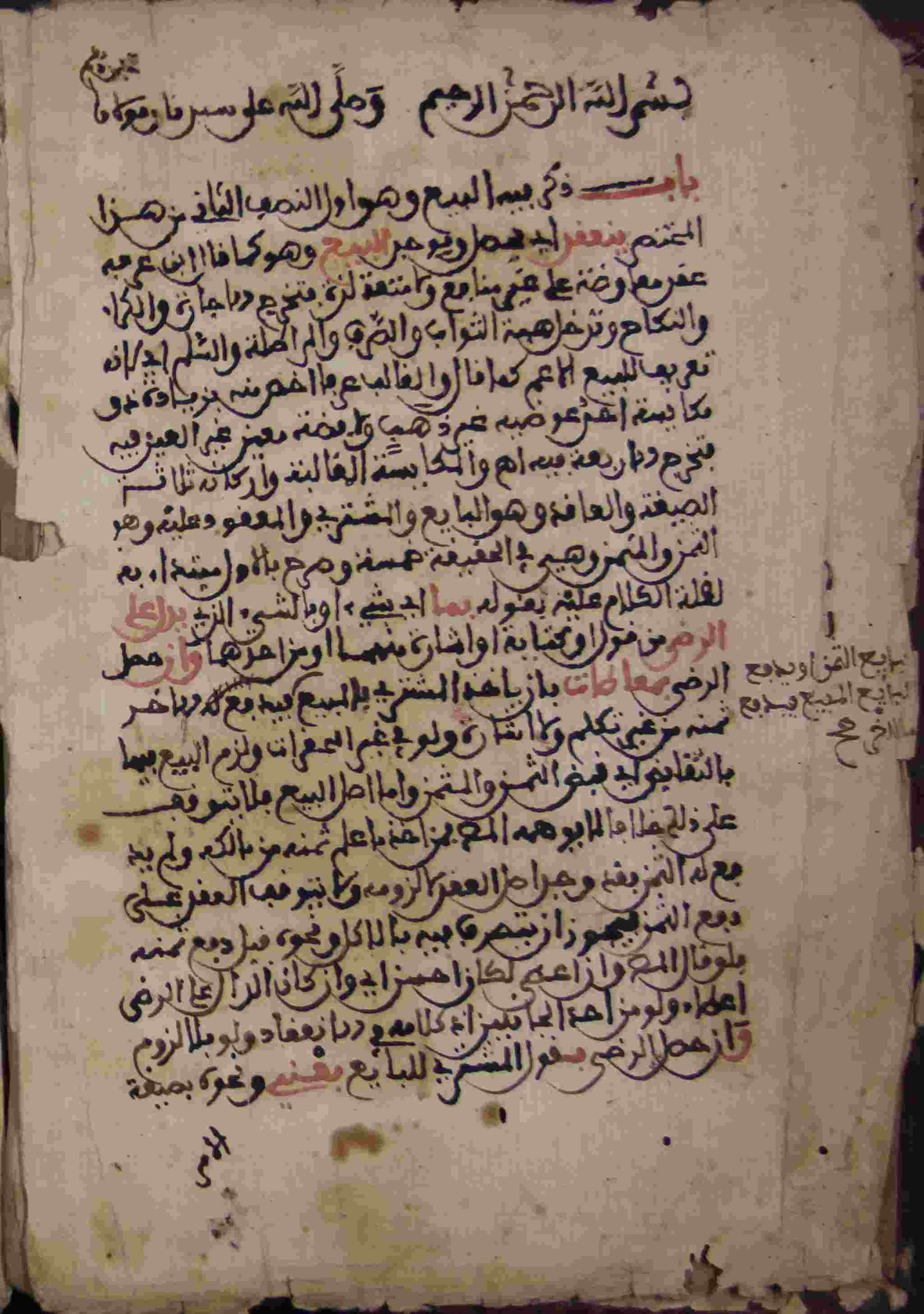 | Description: | أوله : " باب ذكر فيه البيع وهو أول النصف الثاني من هذا المختصر..."/آخره : ولما أنهى الكلام على البيوع وما يتعلق بها انتقل يتكلم على الإجارة كذلك وهو أول الربع الرابع من هذا الكتاب "، نوع الخط مغربي، التجليد عادي، حالة المخطوط حسنة، تعليقات على الهامش، بداية المخطوط في الورقة الثانية، نهاية المخطوط في الورقة 216، المخطوط مرقمن، رقم المخطوط 330 م، مصدر المخطوط : مكتبة الشيخ نعيم النعيمي ؛ المراجع والمصادر : الأعلام خير الدين الزركلي (2/ 266). |