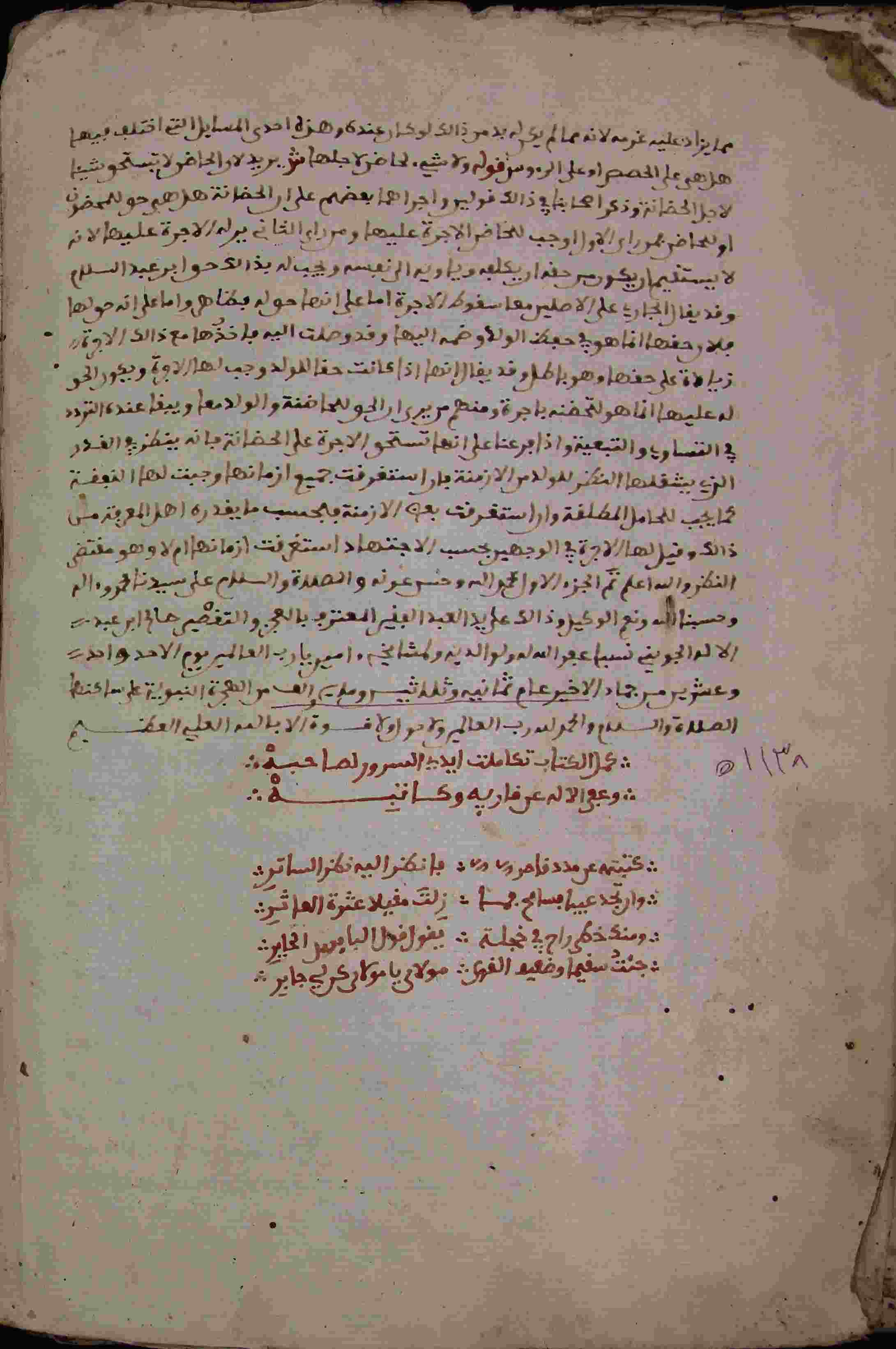 | Description: | أوله : " قوله باب يرفع الحدث شر أي المنع المترتب على أعضاء الوضوء..."/آخره : " كمل الكتاب تكاملت أيدي السرور لصاحبه "، نوع الخط مغربي، التجليد عادي، حالة المخطوط جيدة، بهامشه تعليقات وبآخره فتويان، عليه آثار الرطوبة، بداية المخطوط في الورقة الثانية، نهاية المخطوط في الورقة 248، المخطوط مرقمن، رقم المخطوط 345 م، مصدر المخطوط : مكتبة الشيخ نعيم النعيمي). |