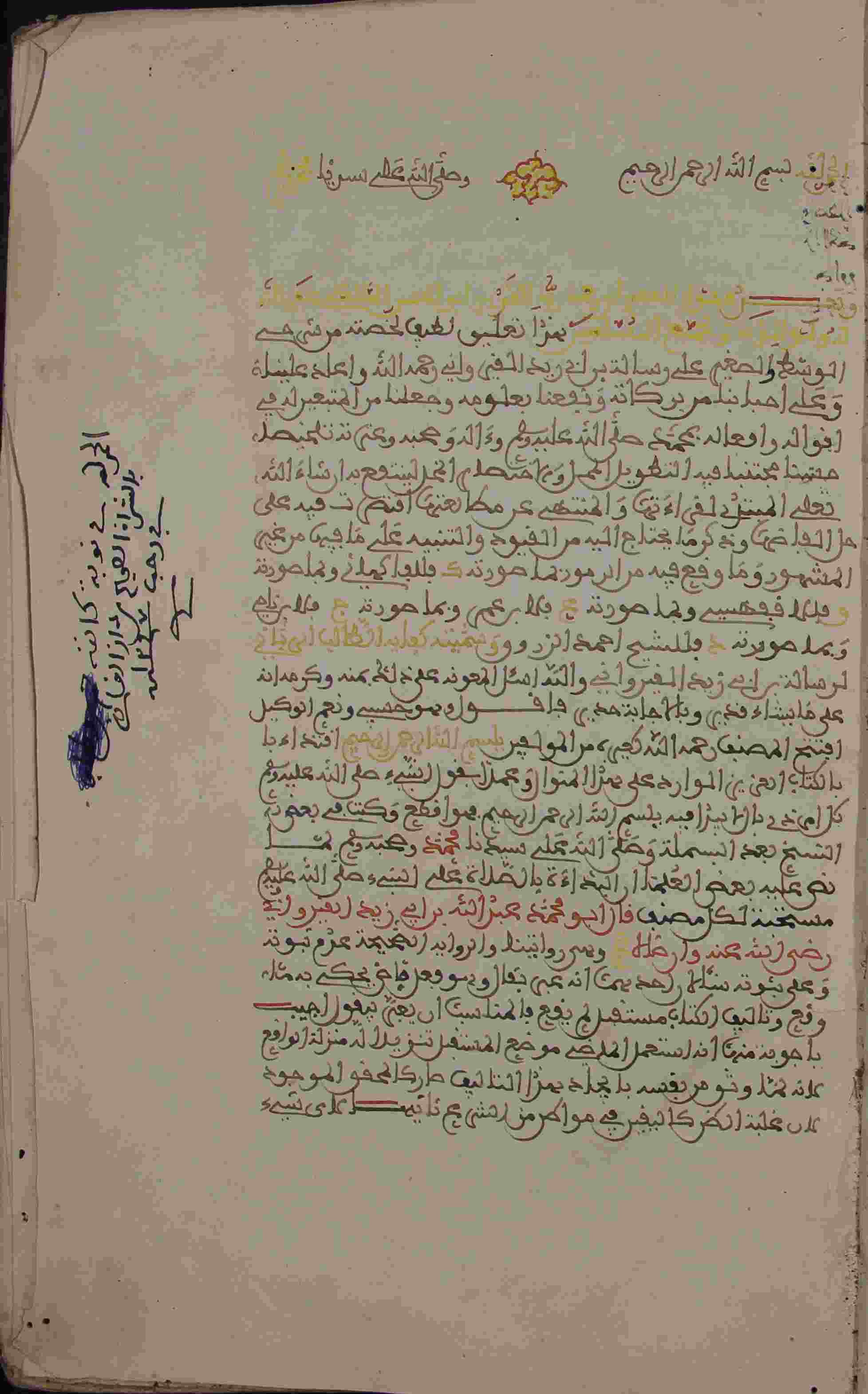 | Description: | أوله : " فهذا تعليق لطيف لخصته من شرح الوسطى والصغير على رسالة بن أبي زيد القيرواني رحمه الله..."/آخره : " انتهى ولله الحمد والمنة ولا حول ولا قوة إلا بالله العلي العظيم "، نوع الخط مغربي، التجليد عادي، حالة المخطوط حسنة، بداية المخطوط في الورقة الخامسة، نهاية المخطوط في الورقة 187، المخطوط مرقمن، رقم المخطوط 349 م، مصدر المخطوط : مكتبة الشيخ نعيم النعيمي ؛ المراجع والمصادر : الأعلام خير الدين الزركلي (10/ 29). |