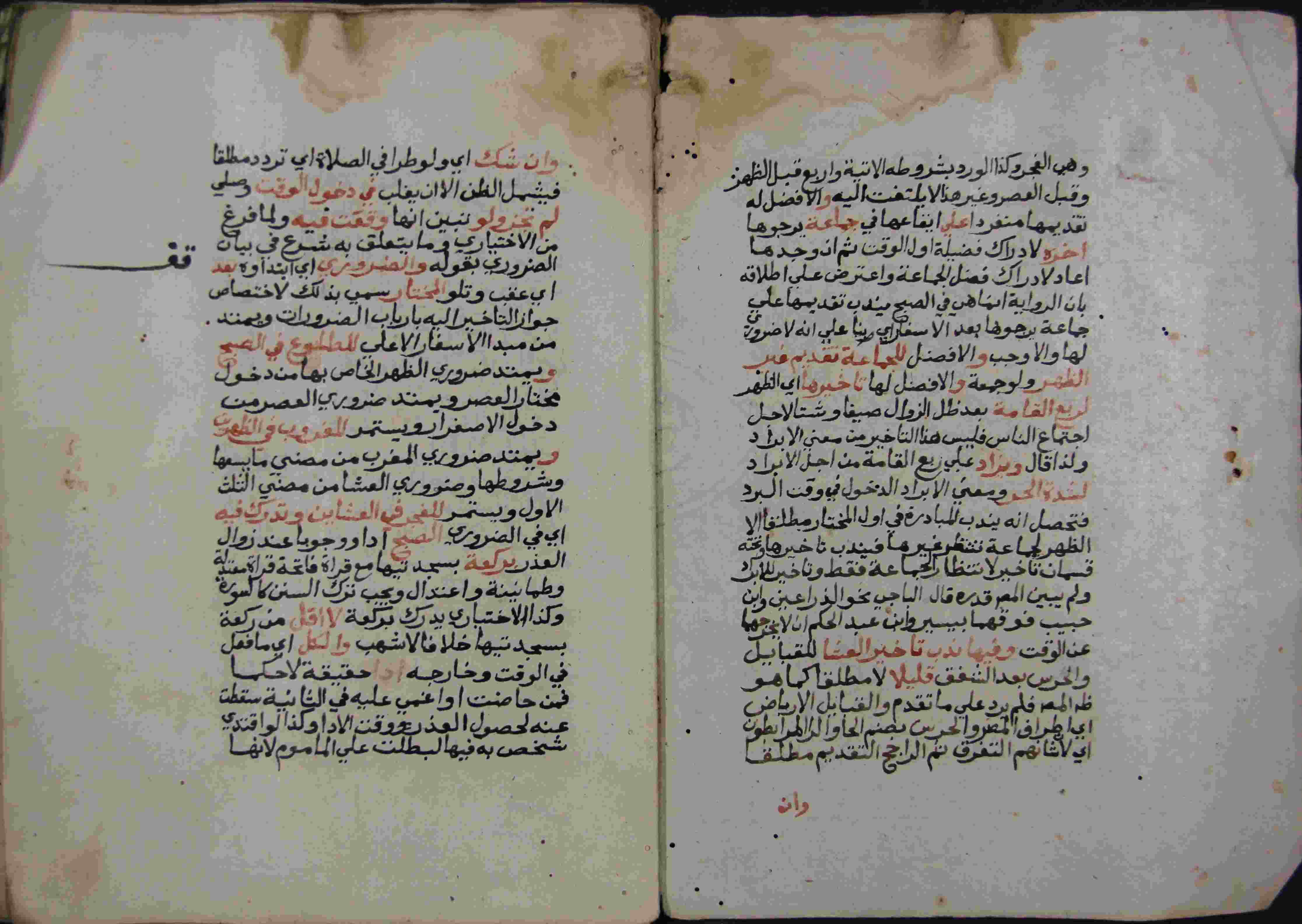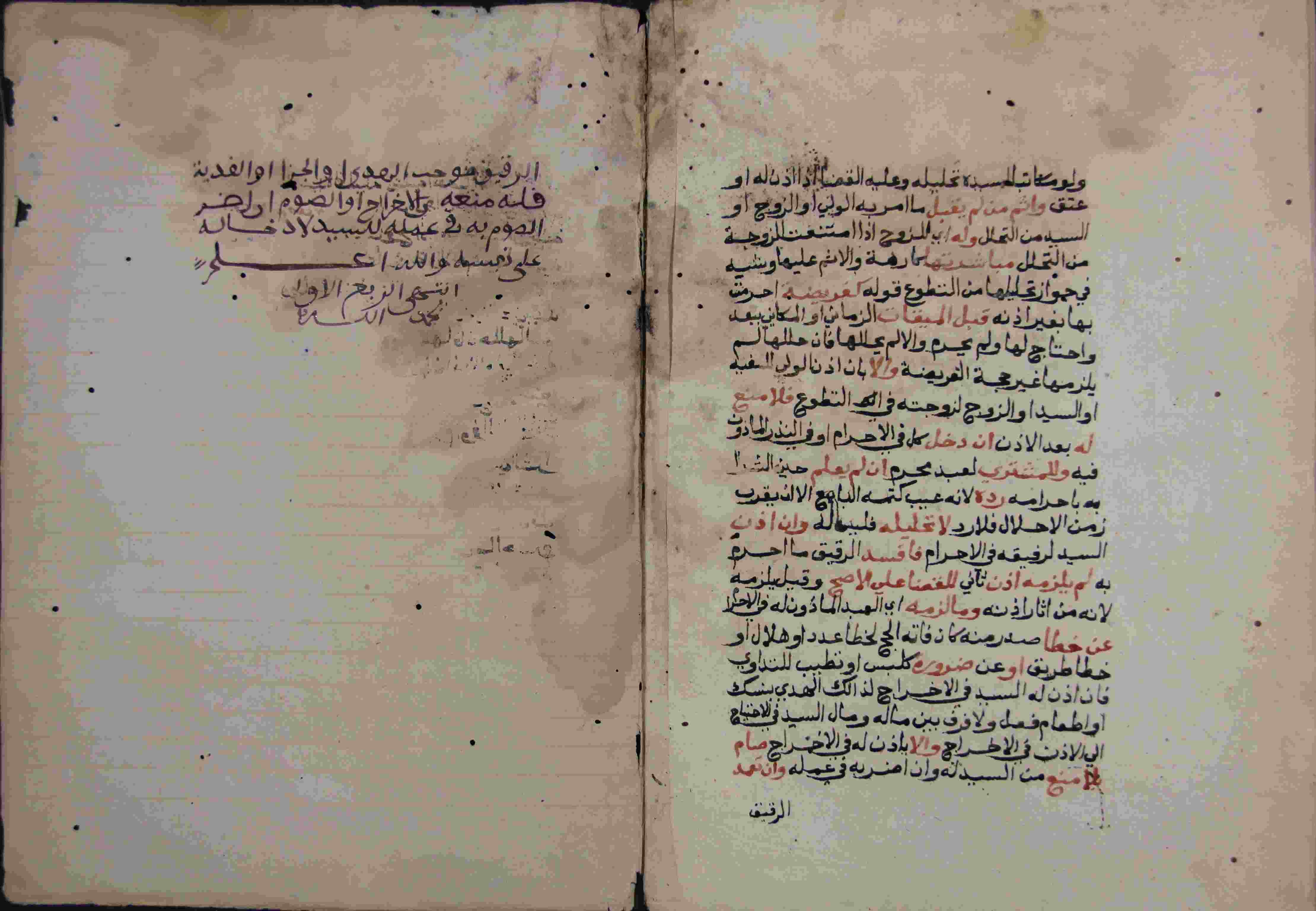 | Description: | أوله : " من الفجر أي ظهور الضو الصادق وهو المستدير أي المنتشر ضياؤة..."/آخره : " وإن تعمد الرقيق موجب الهدى أو الجزاء أو الفدية فله منعه من الإخراج أو الصوم "، نوع الخط مغربي، التجليد مزخرف، حالة المخطوط حسنة، مبتور الأول والآخر، أوله مواقيت الصلاة وآخره الحج، عليه آثار الرطوبة، بداية المخطوط في الورقة الأولى، نهاية المخطوط في الورقة 183، المخطوط مرقمن، رقم المخطوط 355 م، مصدر المخطوط : مكتبة الشيخ نعيم النعيمي ؛ المراجع والمصادر : الأعلام خير الدين الزركلي (14/ 108). |