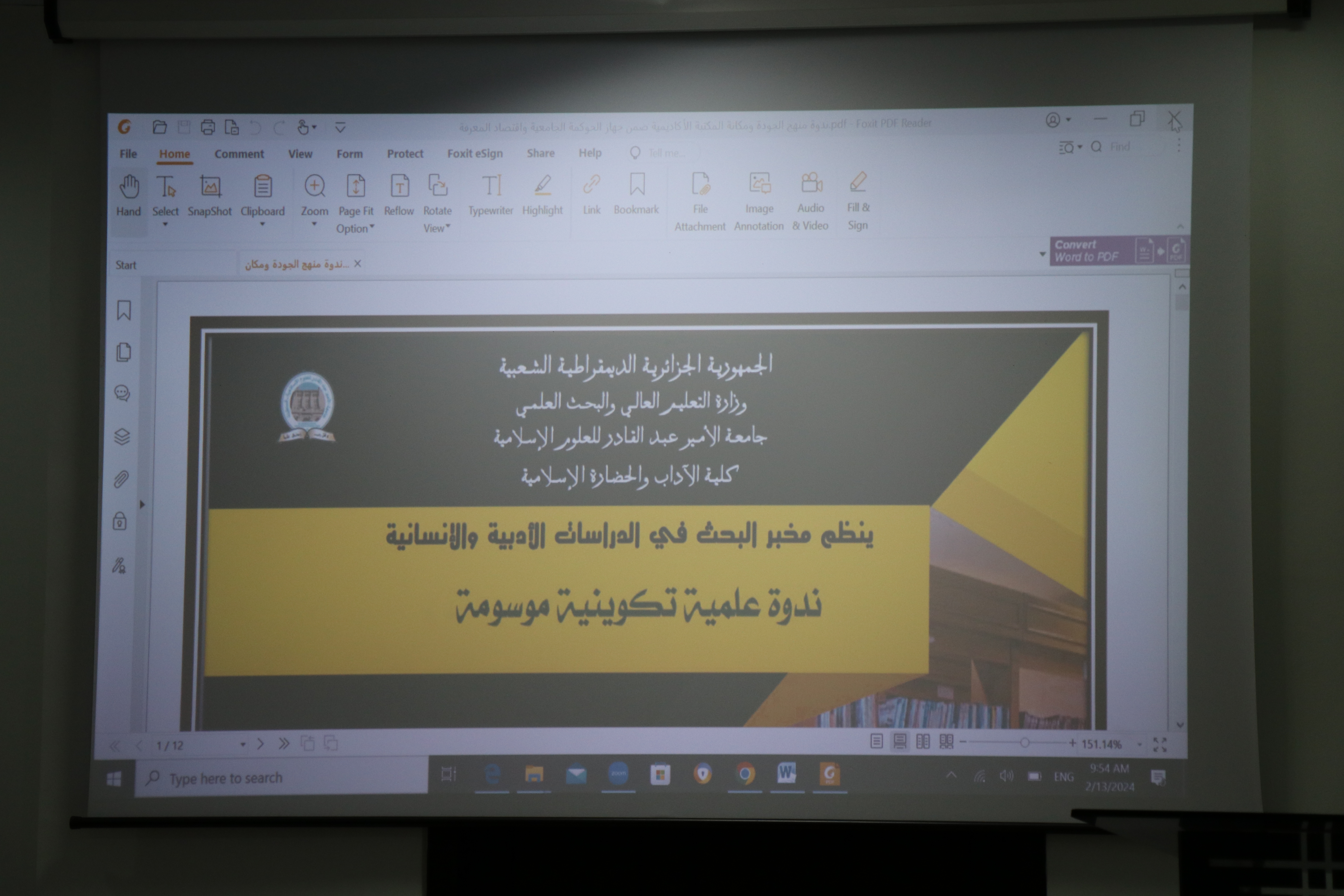 http://dspace.univ-emir-constantine.edu.dz/jspui/handle/123456789/967| Title: | ندوة علمية حول نهج الجودة و مكانة المكتبة اللأكاديمية ضمن جهاز الحوكمة الجامعية و اقتصاد المعرفة |